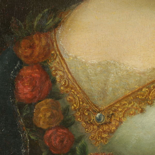 Öl auf leinwand. Die dame dargestellt ist, der durch die hübschen umgeben von einem floral, wieder vom rosenkranz auf dem kopf. Restauriert und ritelato, wird in frame-stil.