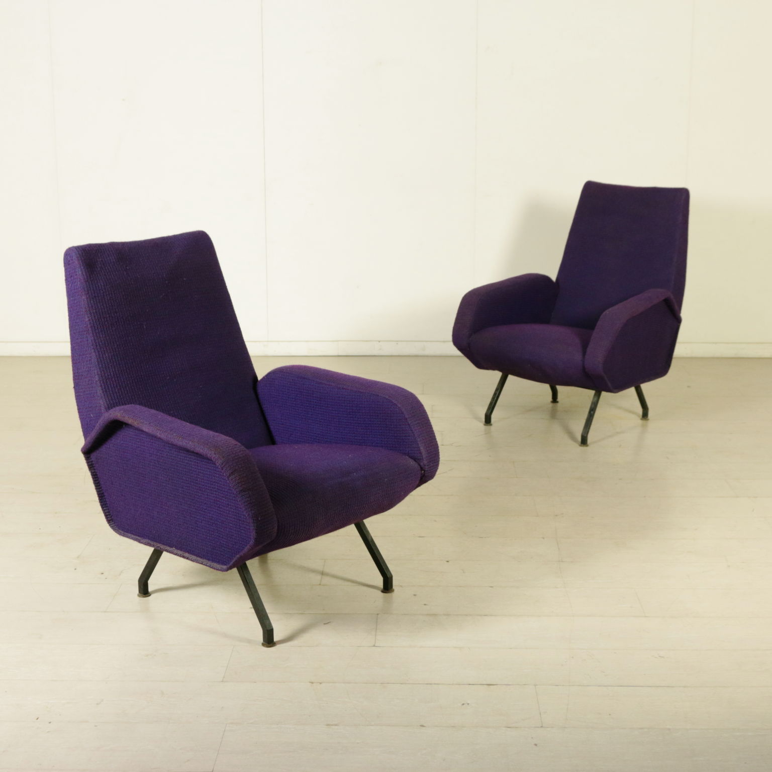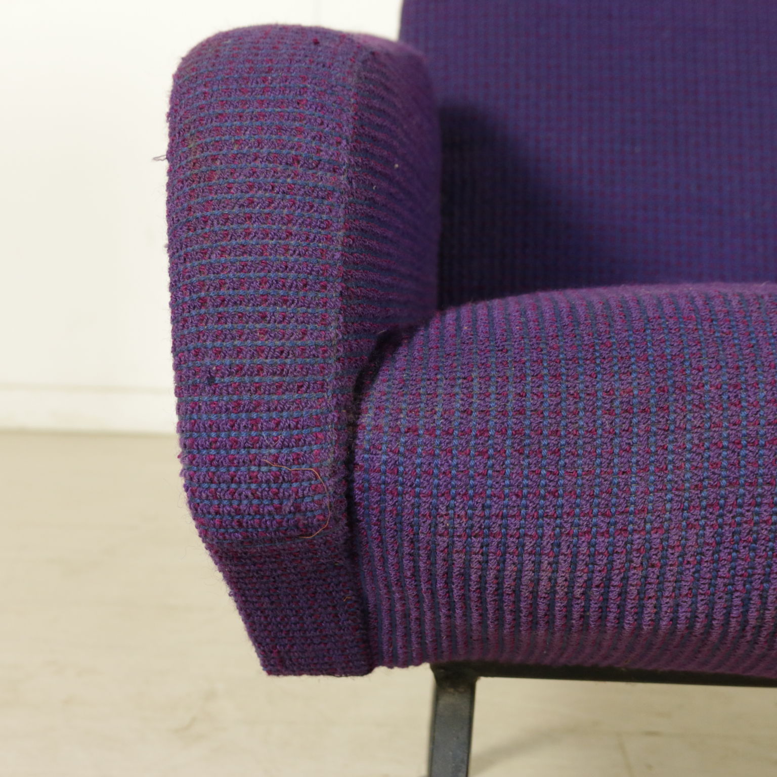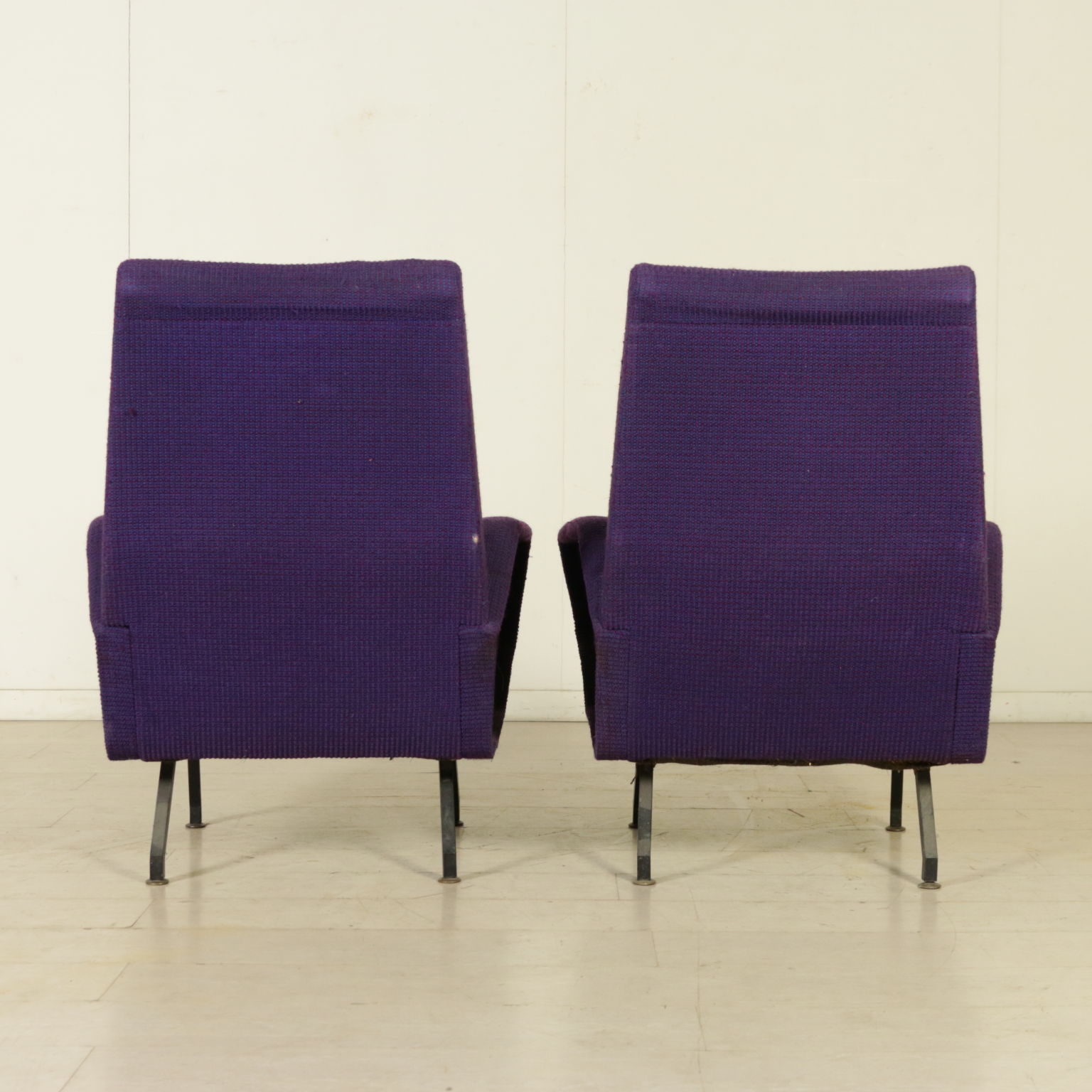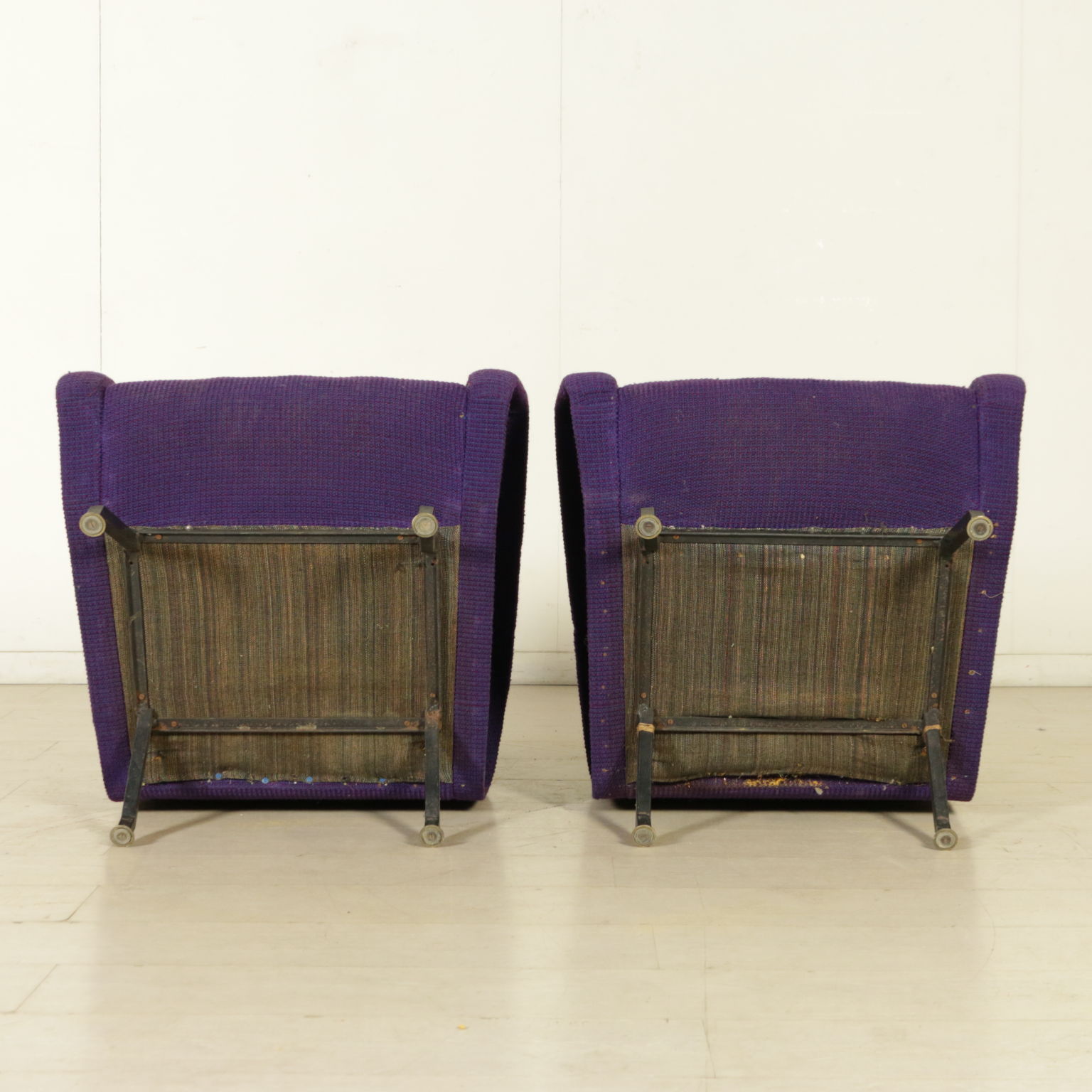 Paar sessel; polsterung: schaumstoff-verkleidung, stoff und beinen aus metall. Polsterung zu ersetzen.
