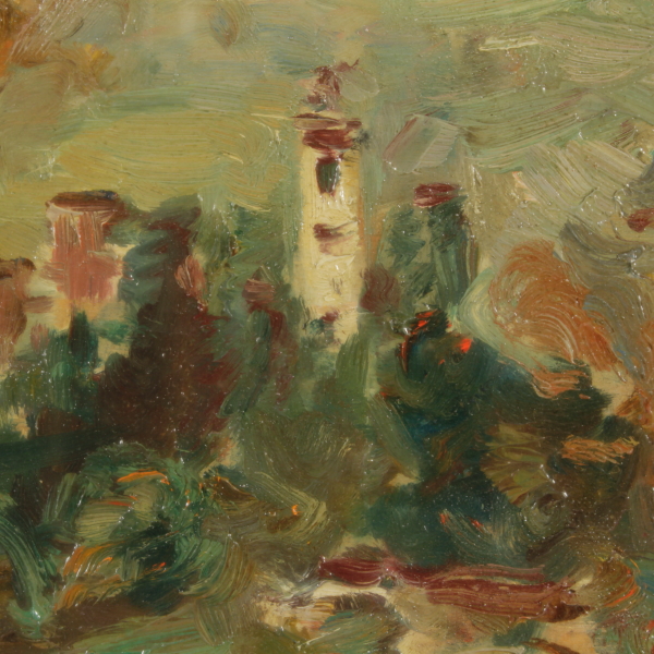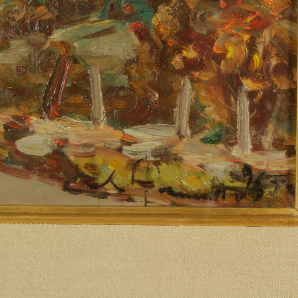 Öl auf sperrholz. Signiert unten rechts. Auf der rückseite signatur, titel, erstellungsdatum 1957 und datum der ausstellung 1959. In den rahmen.