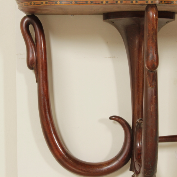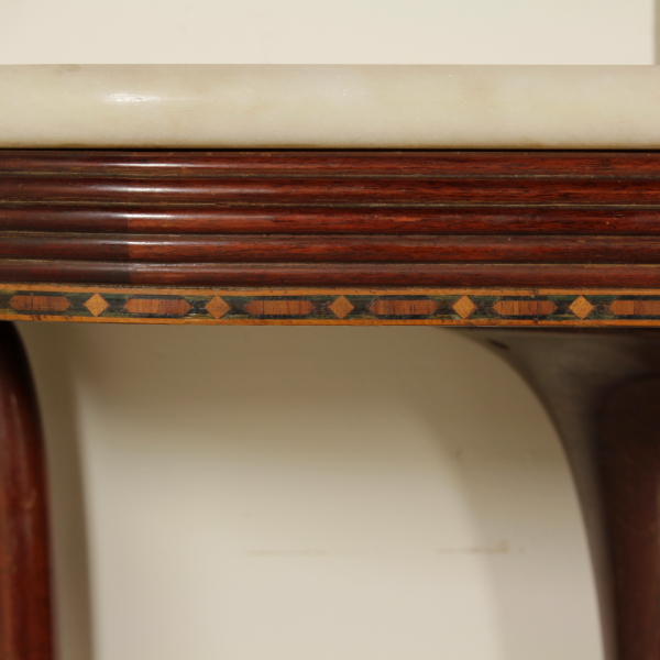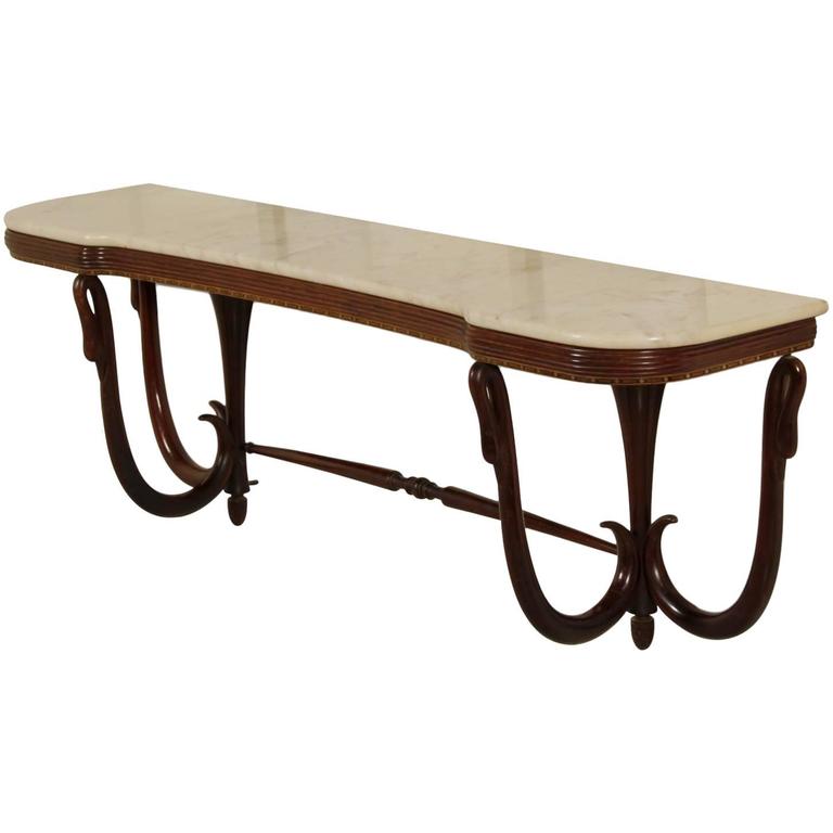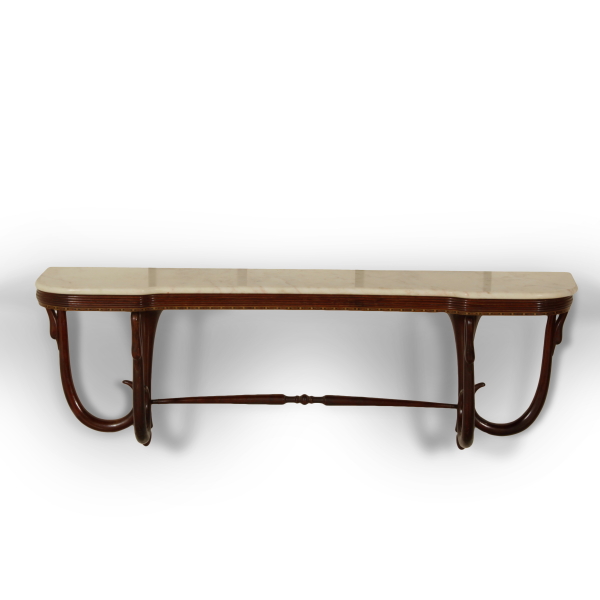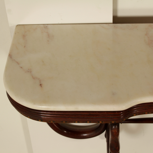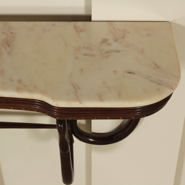 Konsole 50 jahre an der wand; holz, mahagoni, marmorplatte.