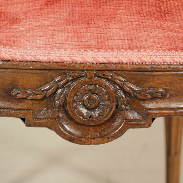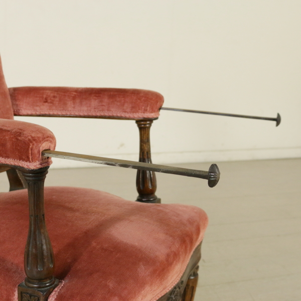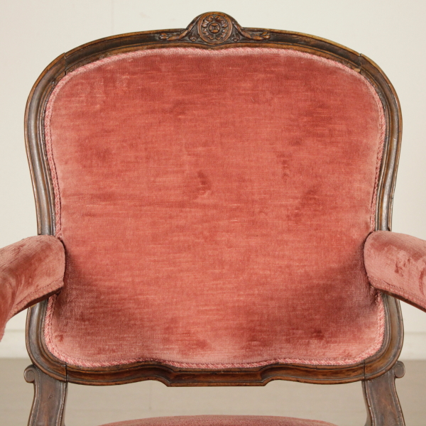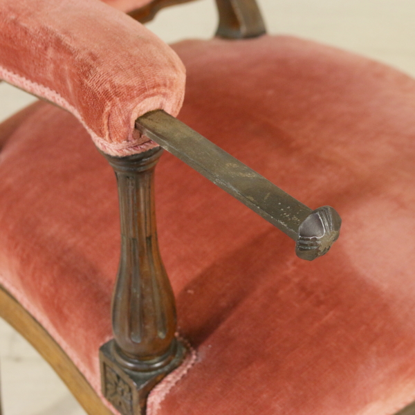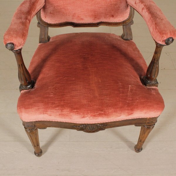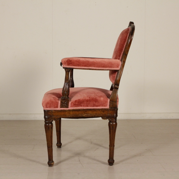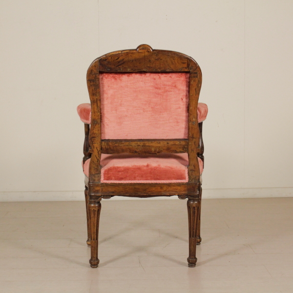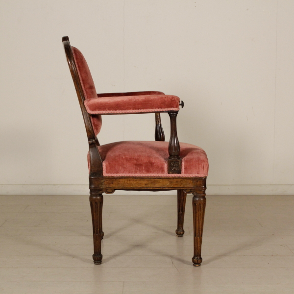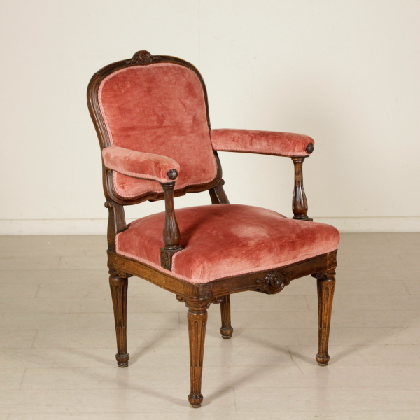 Geraden beinen und pfosten stamm-konische rudentati, legt die stirn leicht bewegt und fein geschnitzt. Geformte rückenlehne mit bewältigung geschnitzt. Sitz und rückenlehne gepolstert. Stollen der armlehnen, herausnehmbar und werden passend unterstützung für fach.