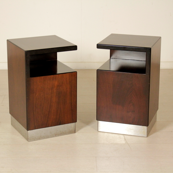 Paar möbel; holz, furniert, rosenholz, band aus metall, verchromt.