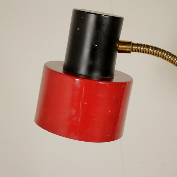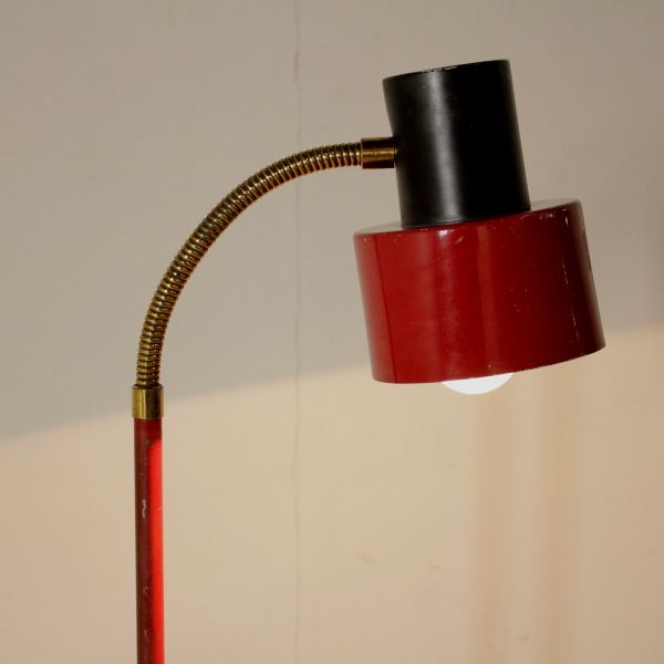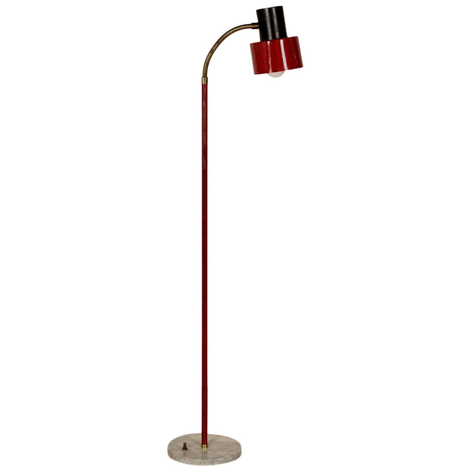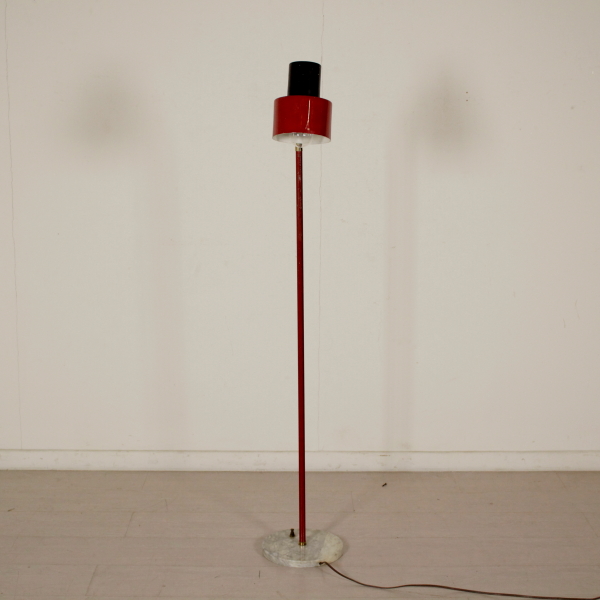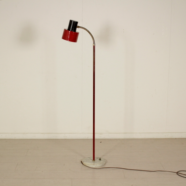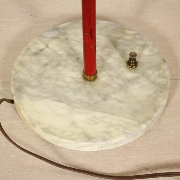 Lampada anni 50-60 da terra con parte flessibile; metallo, ottone, alluminio e marmo.