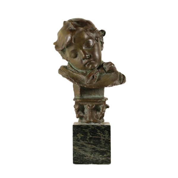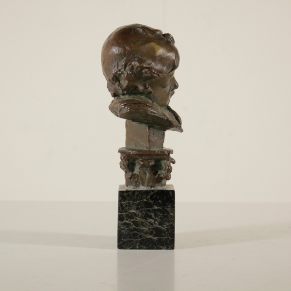 Büste eines knaben in bronze auf der basis in marmor. Autor anonym.