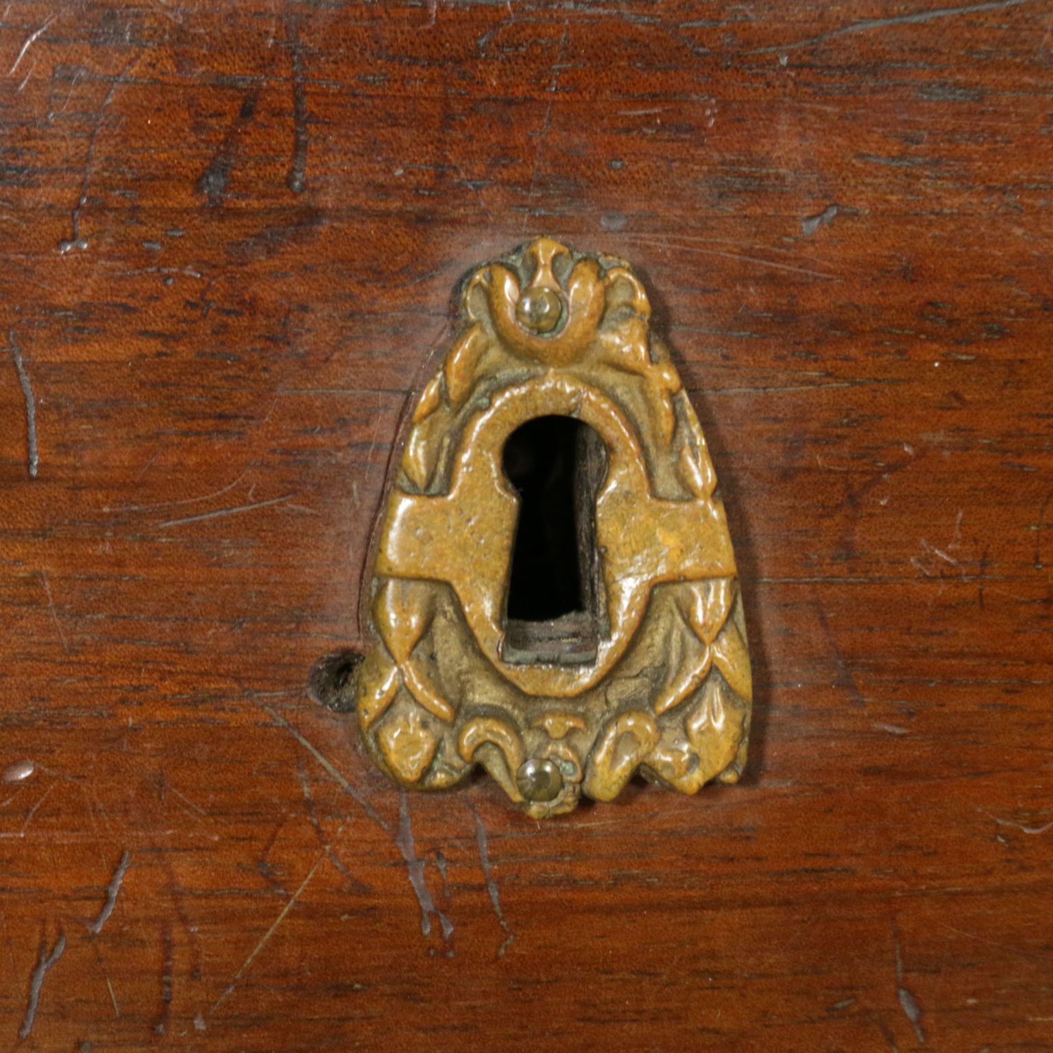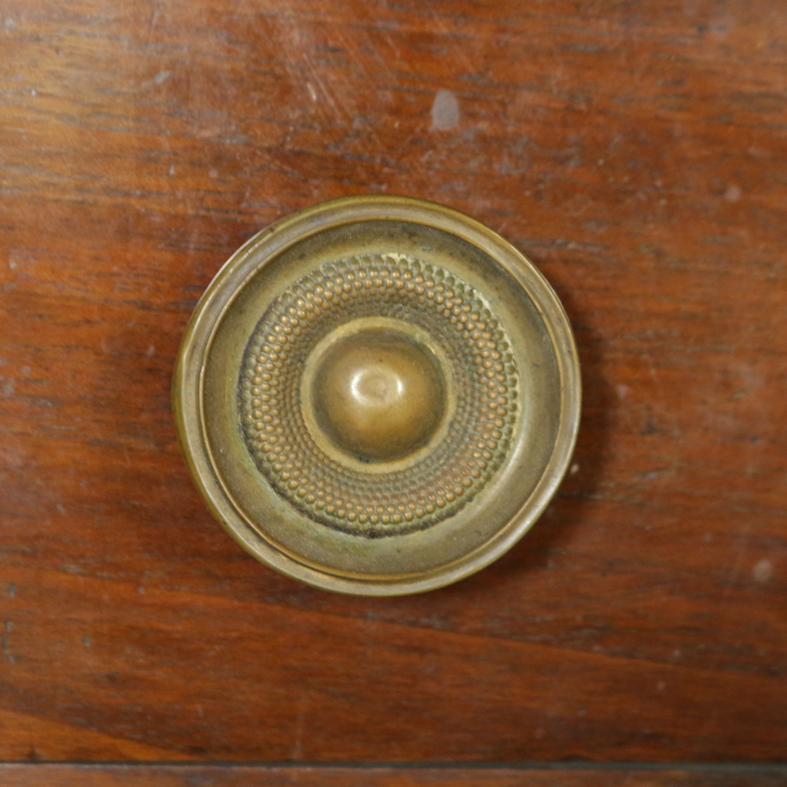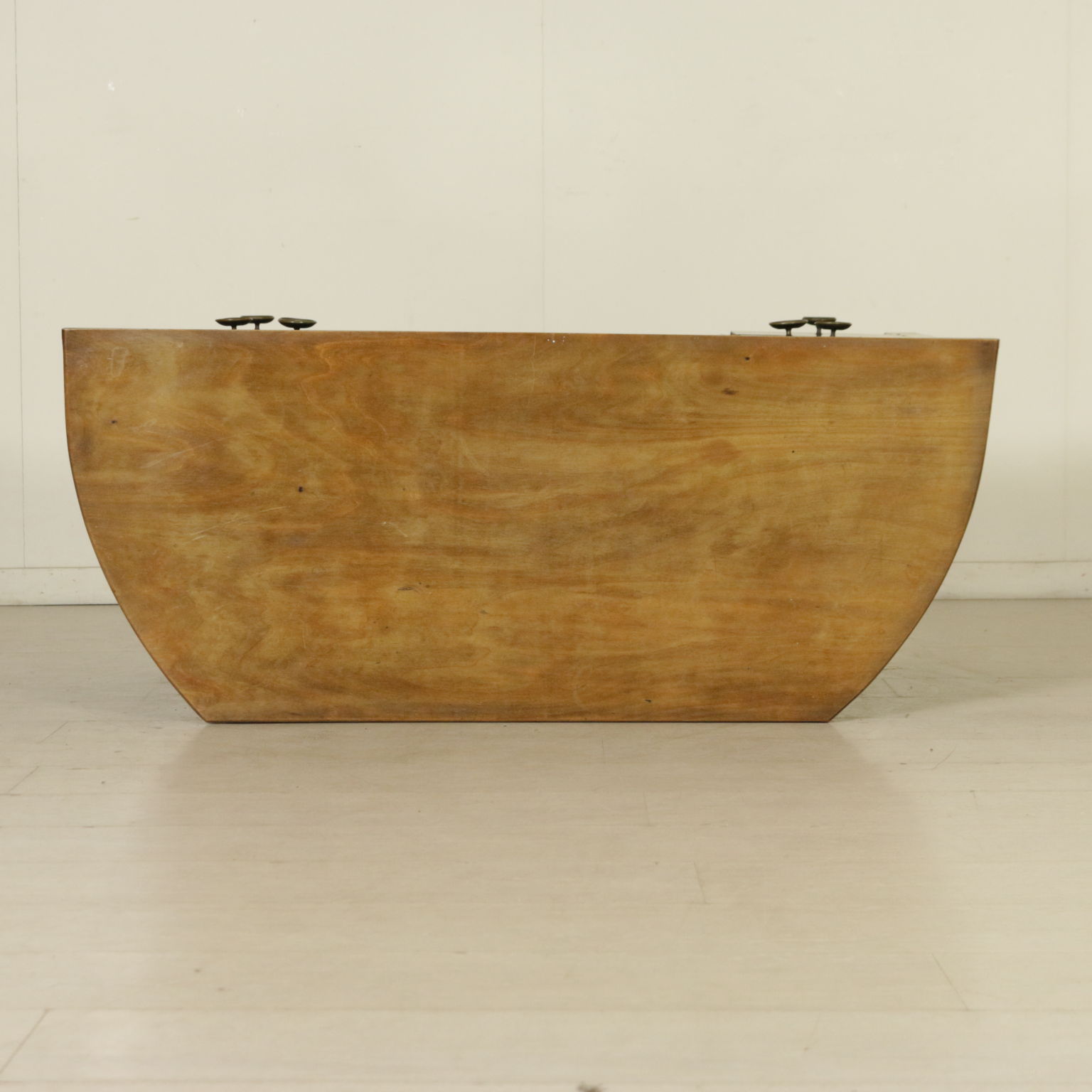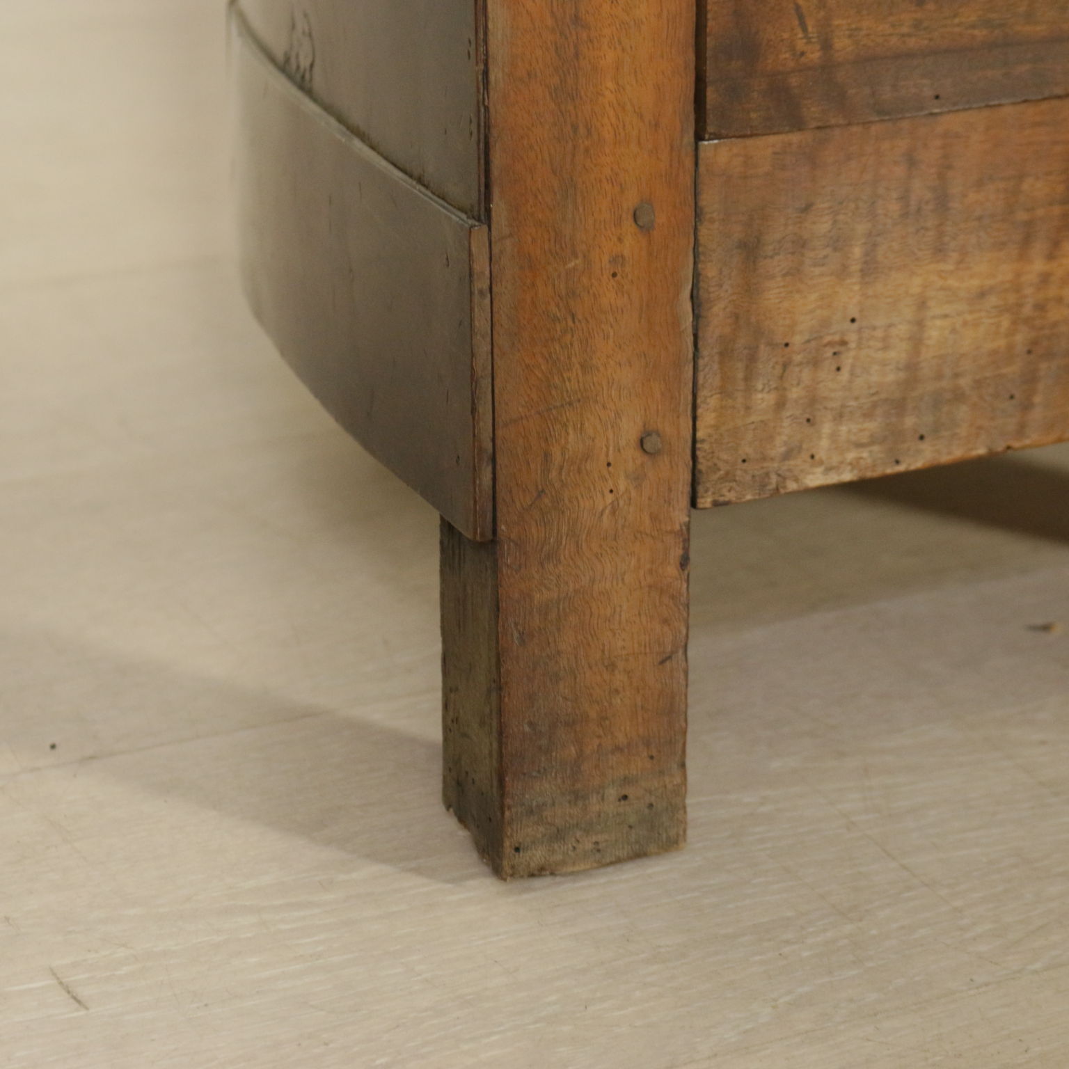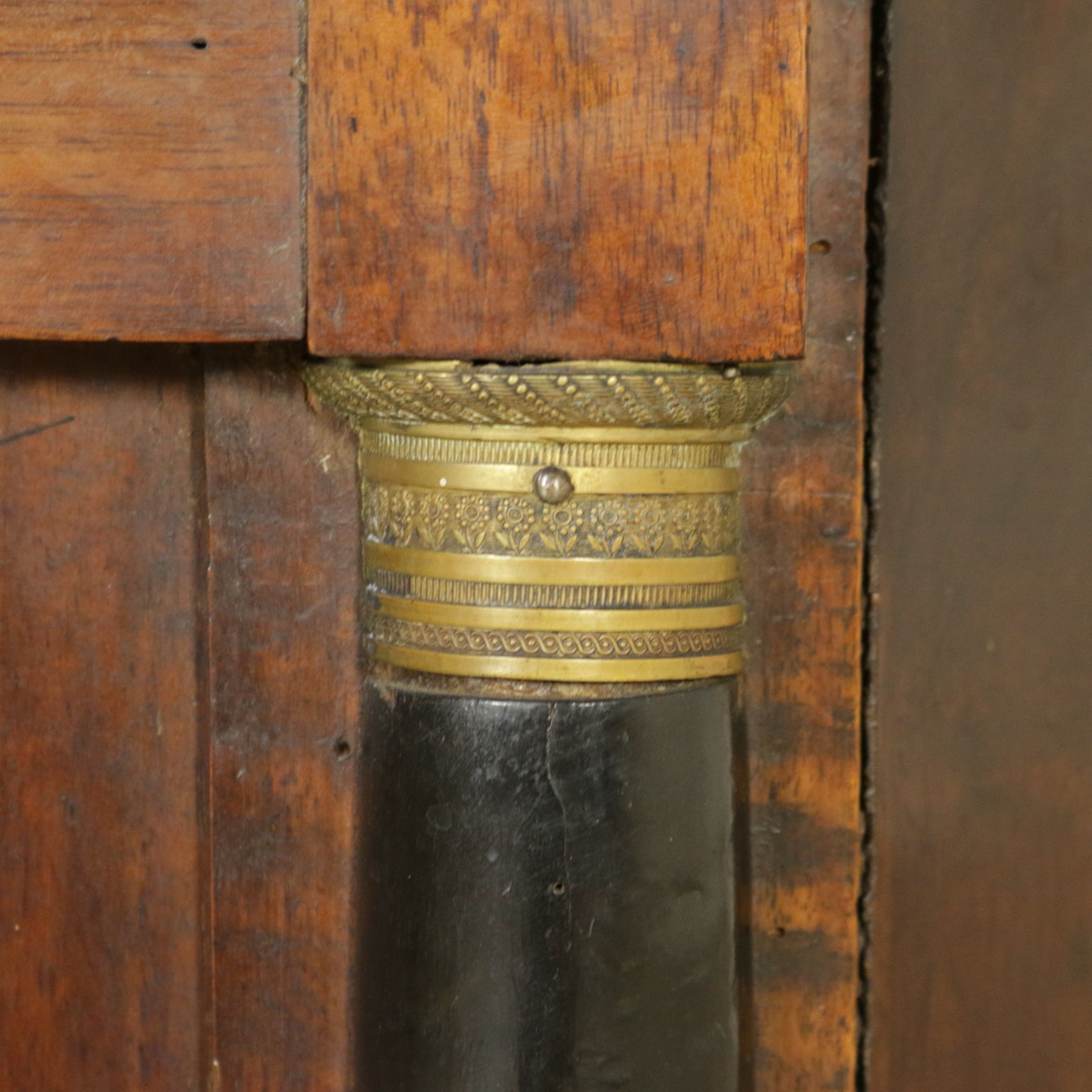 Schreibtisch aus der mitte der flanken abgerundete, präsentiert auf der front fünf schubladen und treppenhaus. Auf der rückseite pfosten mit halben säulen ebanizzate und kapitellen aus bronze gemeißelt. Elegante beschläge original. Plan ersetzt.