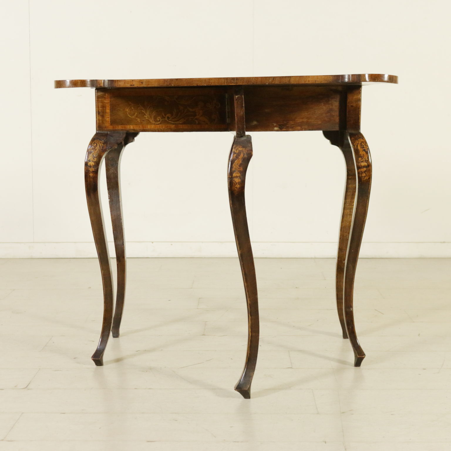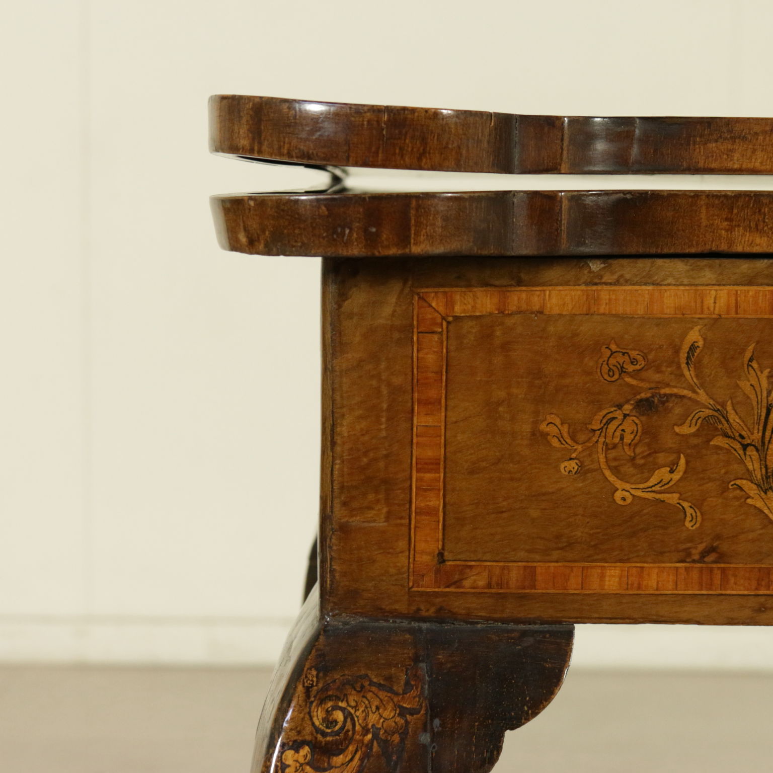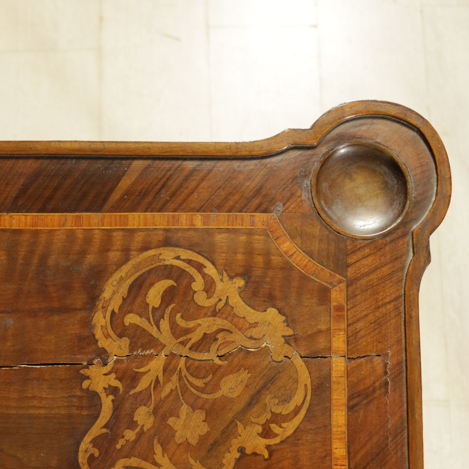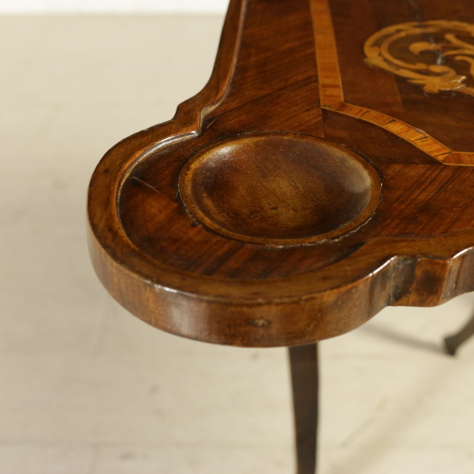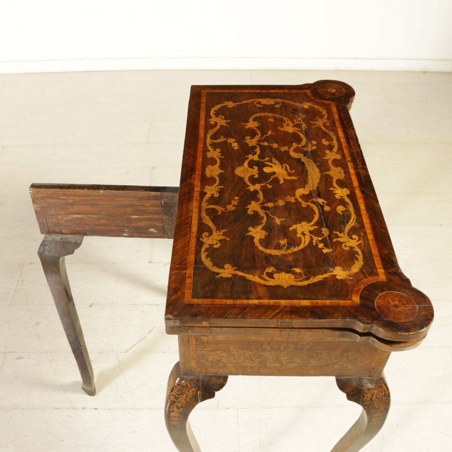 Montiert mit antikem holz, unterstützt durch beine bewegt, weist die schublade in der band. Plan geformten öffnung. Reich verziert mit putten und gründe fogliacei.