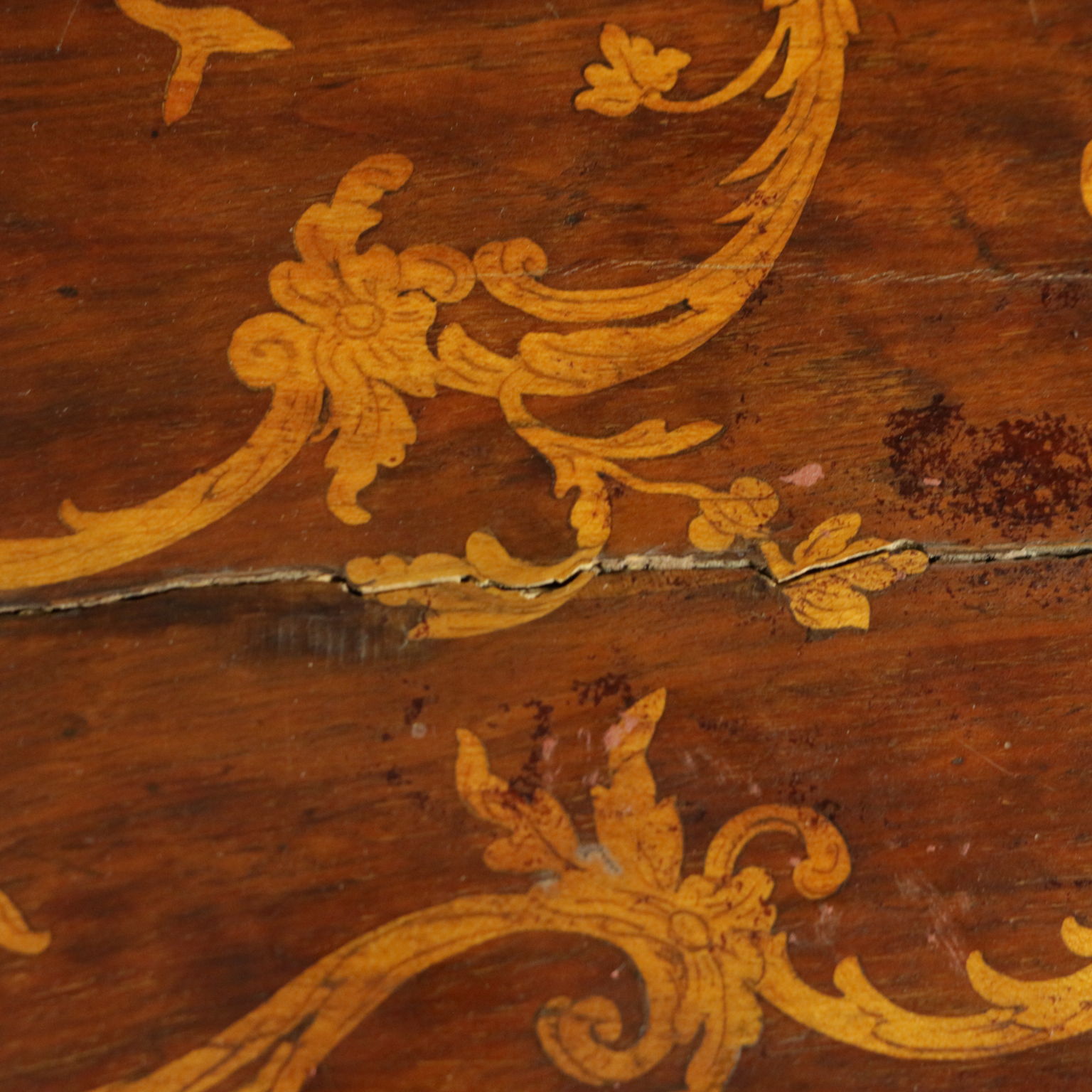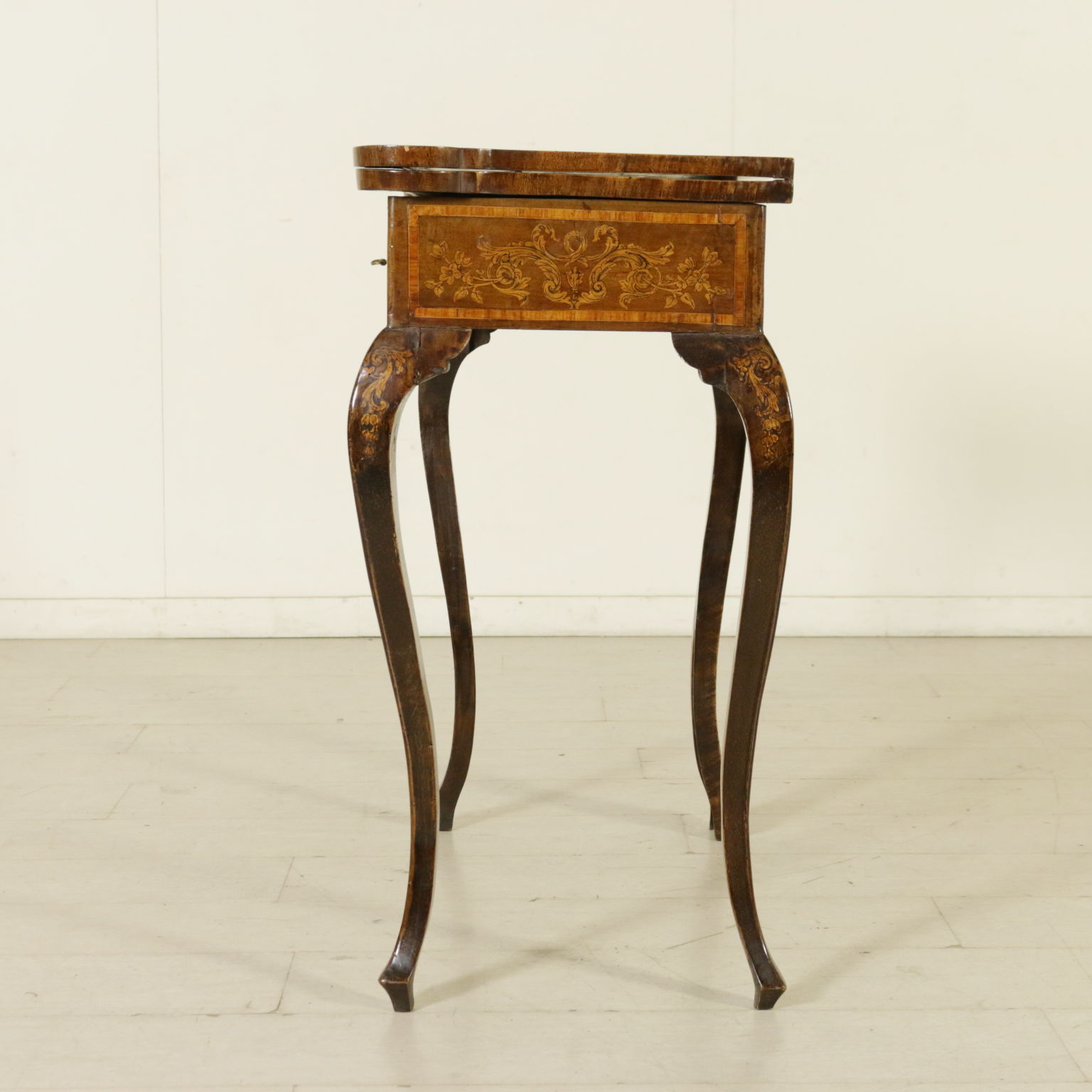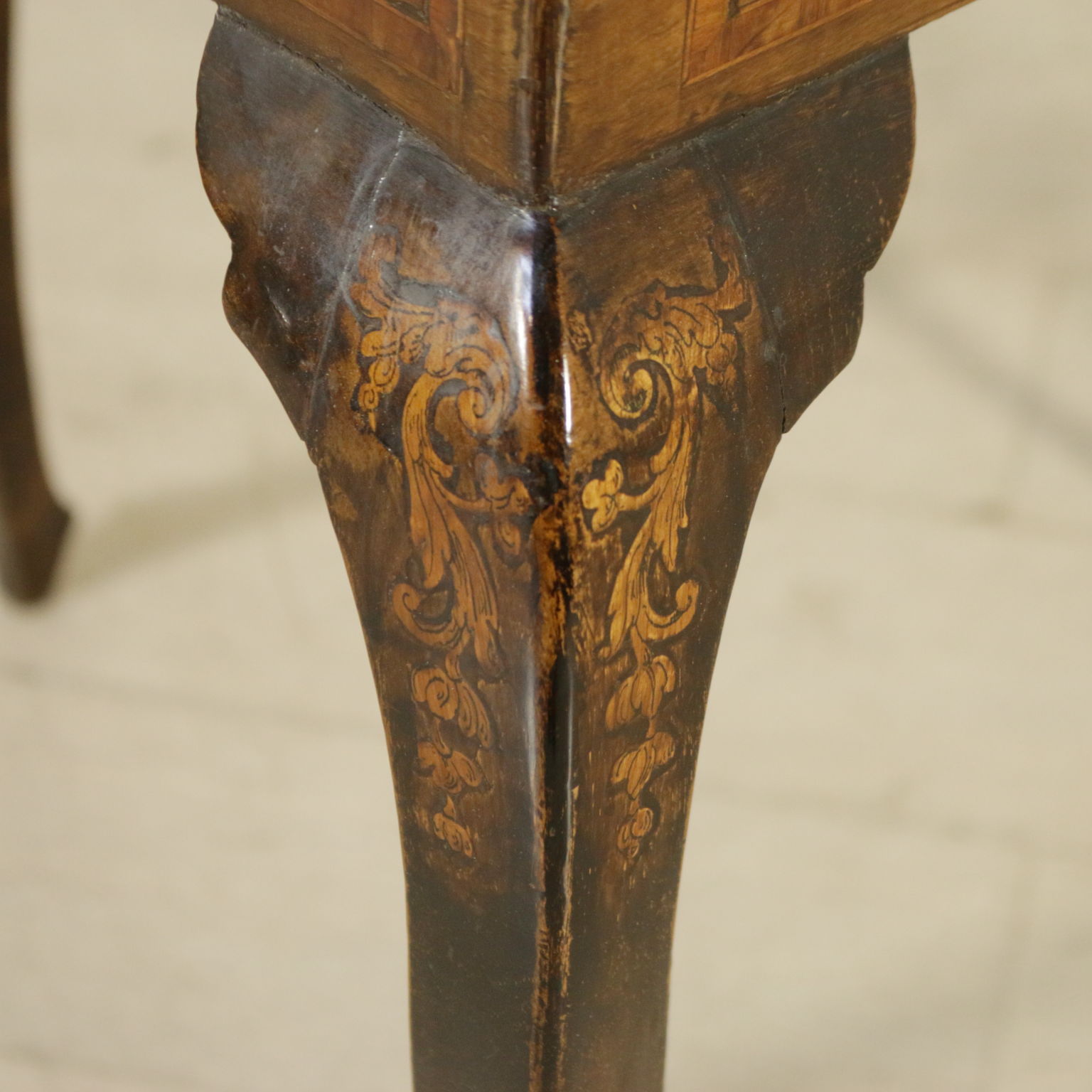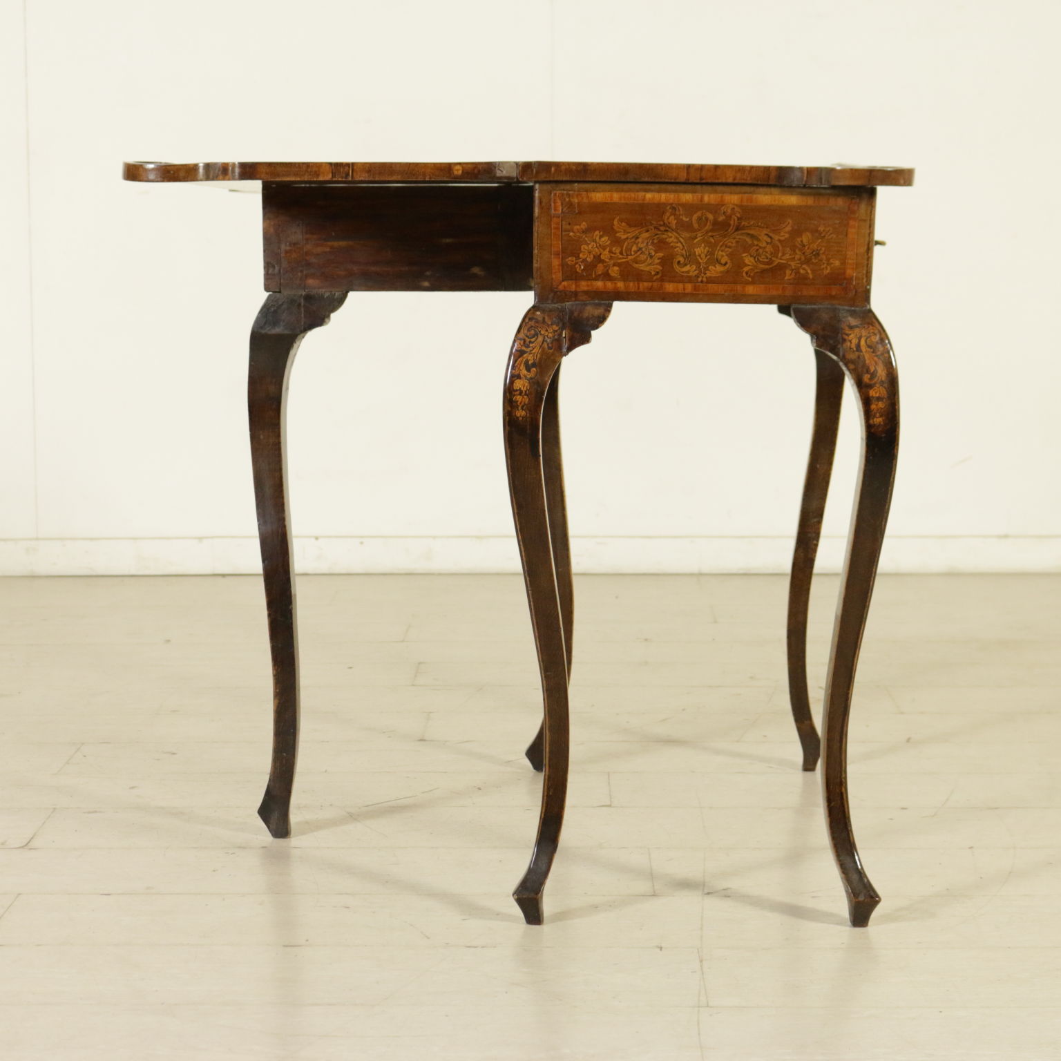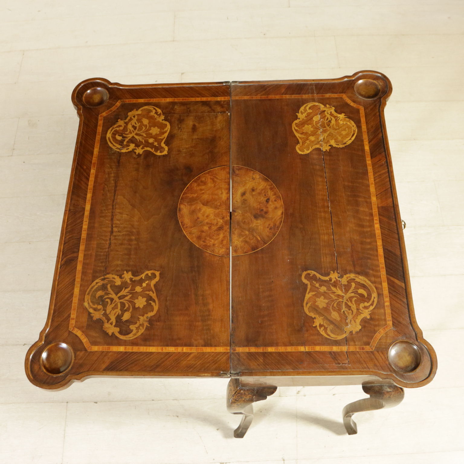 Montiert mit antikem holz, unterstützt durch beine bewegt, weist die schublade in der band. Plan geformten öffnung. Reich verziert mit putten und gründe fogliacei.