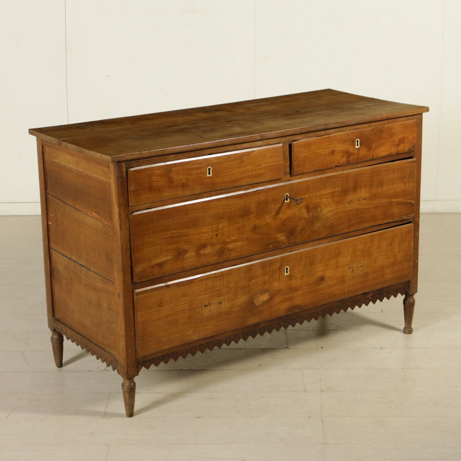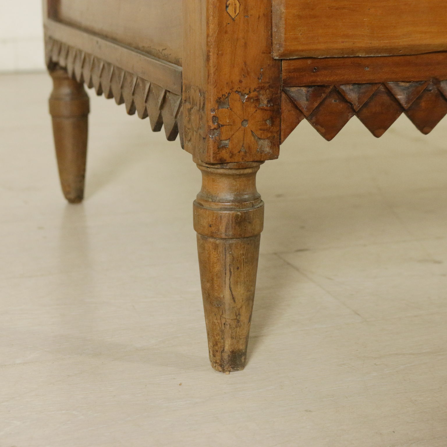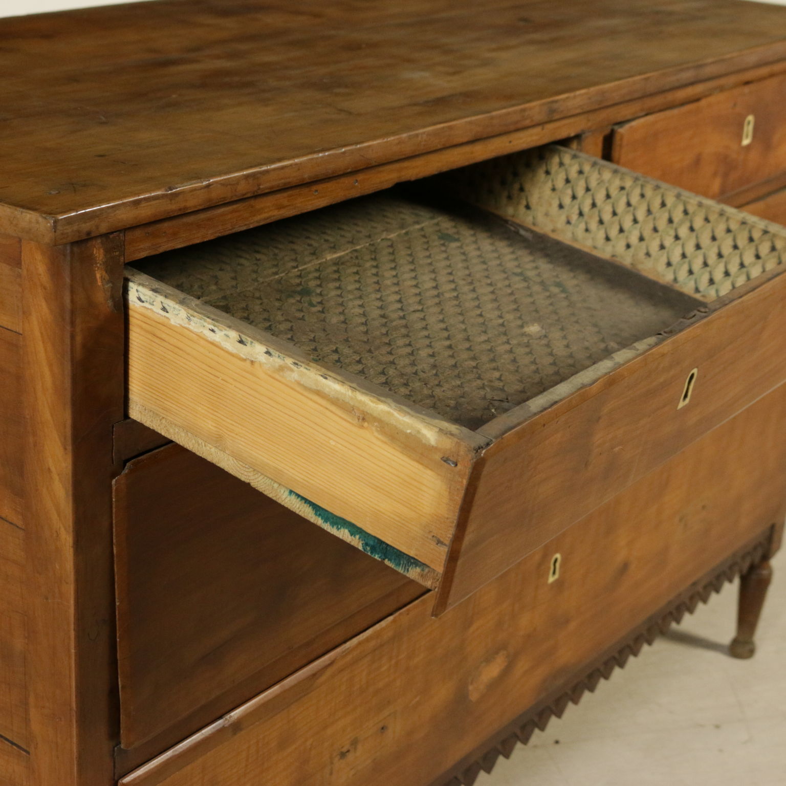 Kommode veneto rektum von fuß-stamm kegel-präsentiert band geschnitzt mit geometrischen motiv; zwei schubladen und zwei ausgerichtet unterplan ein.