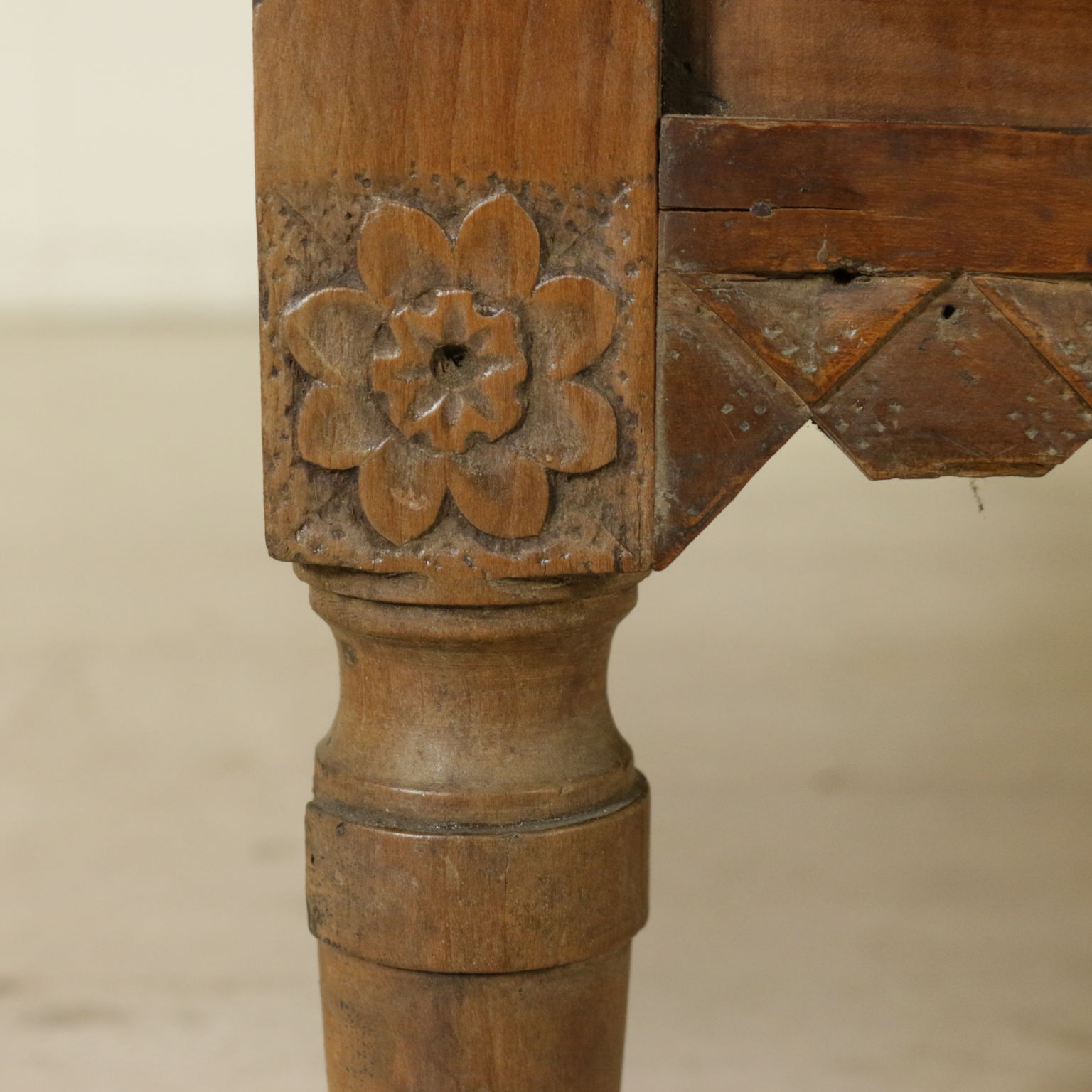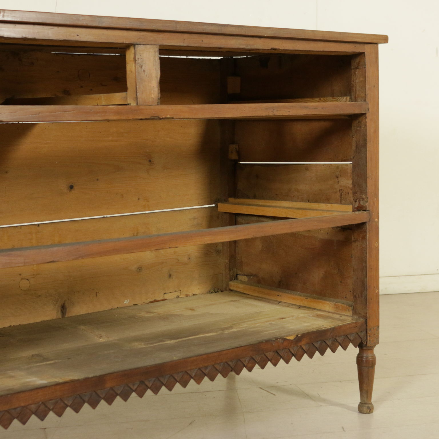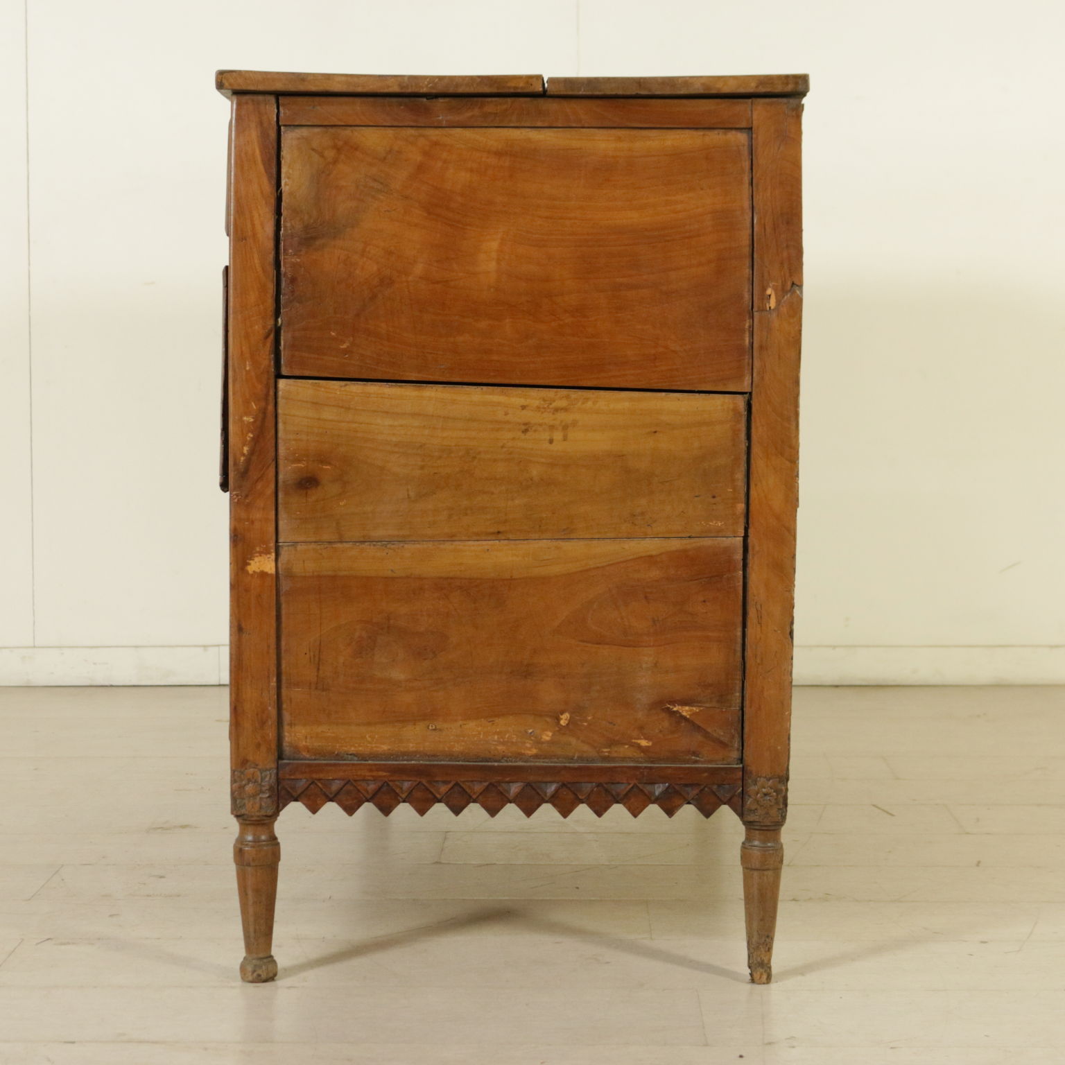 Kommode veneto rektum von fuß-stamm kegel-präsentiert band geschnitzt mit geometrischen motiv; zwei schubladen und zwei ausgerichtet unterplan ein.