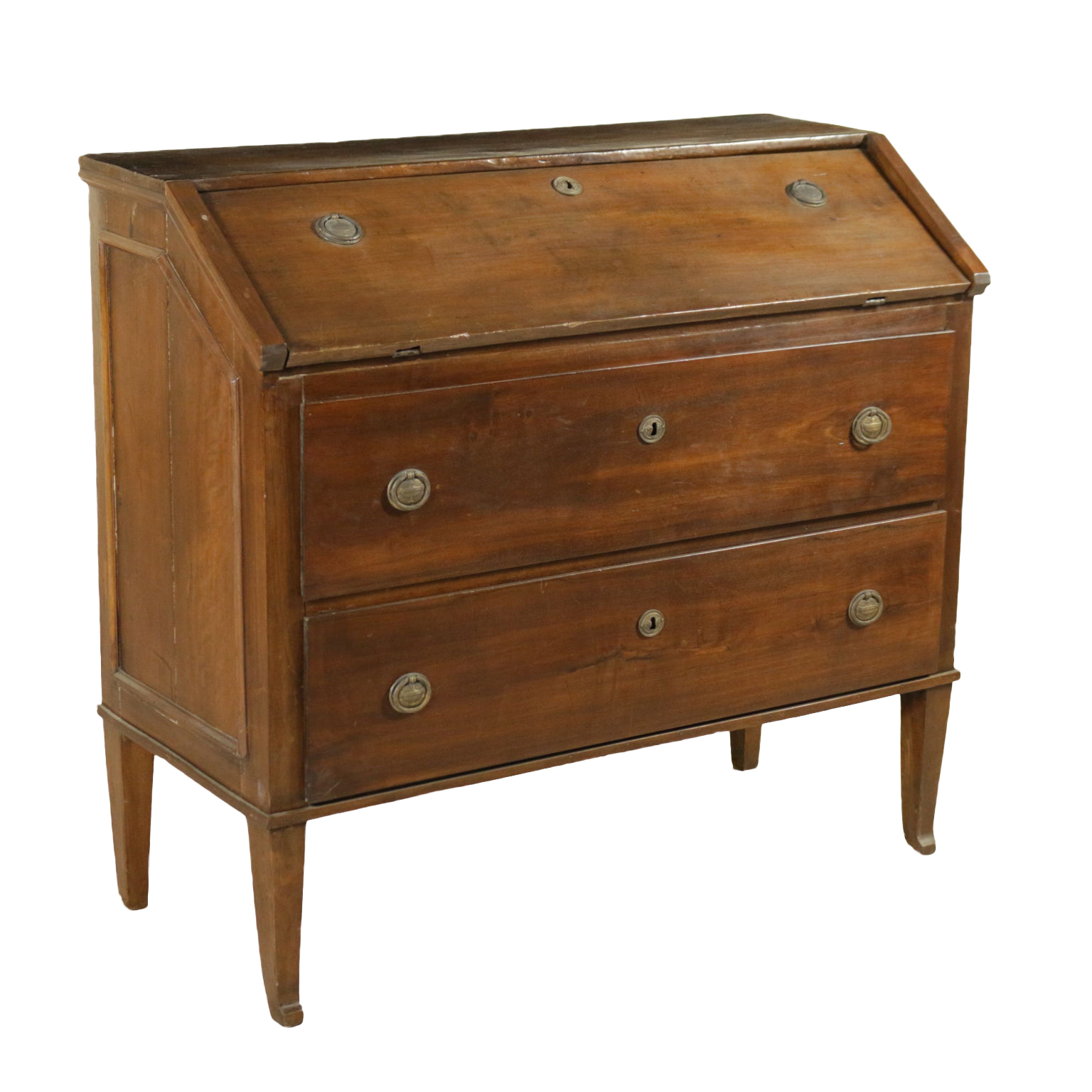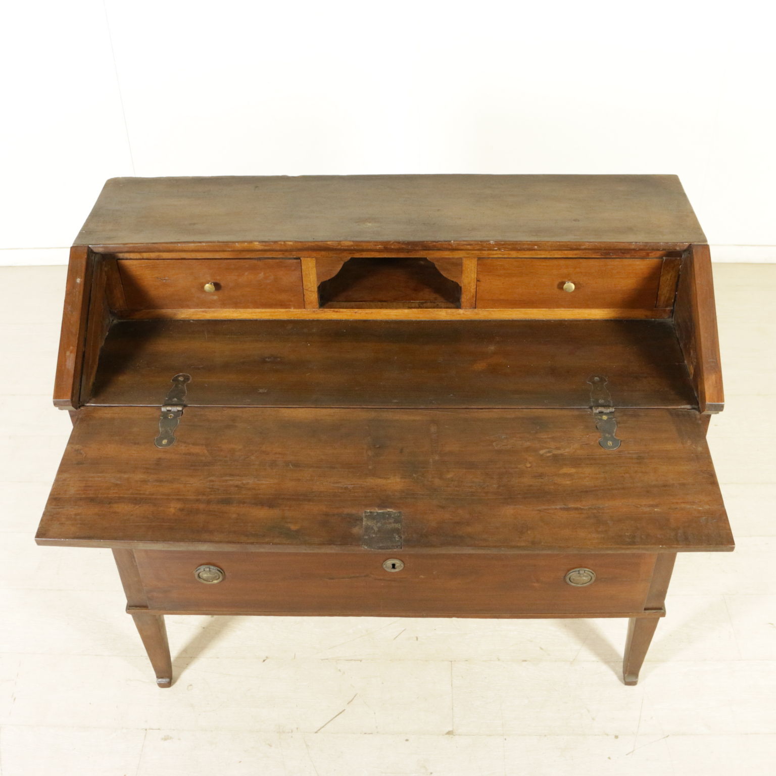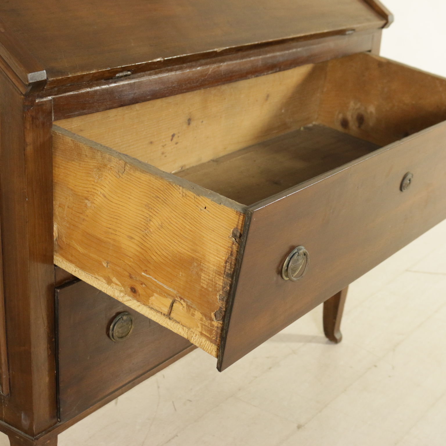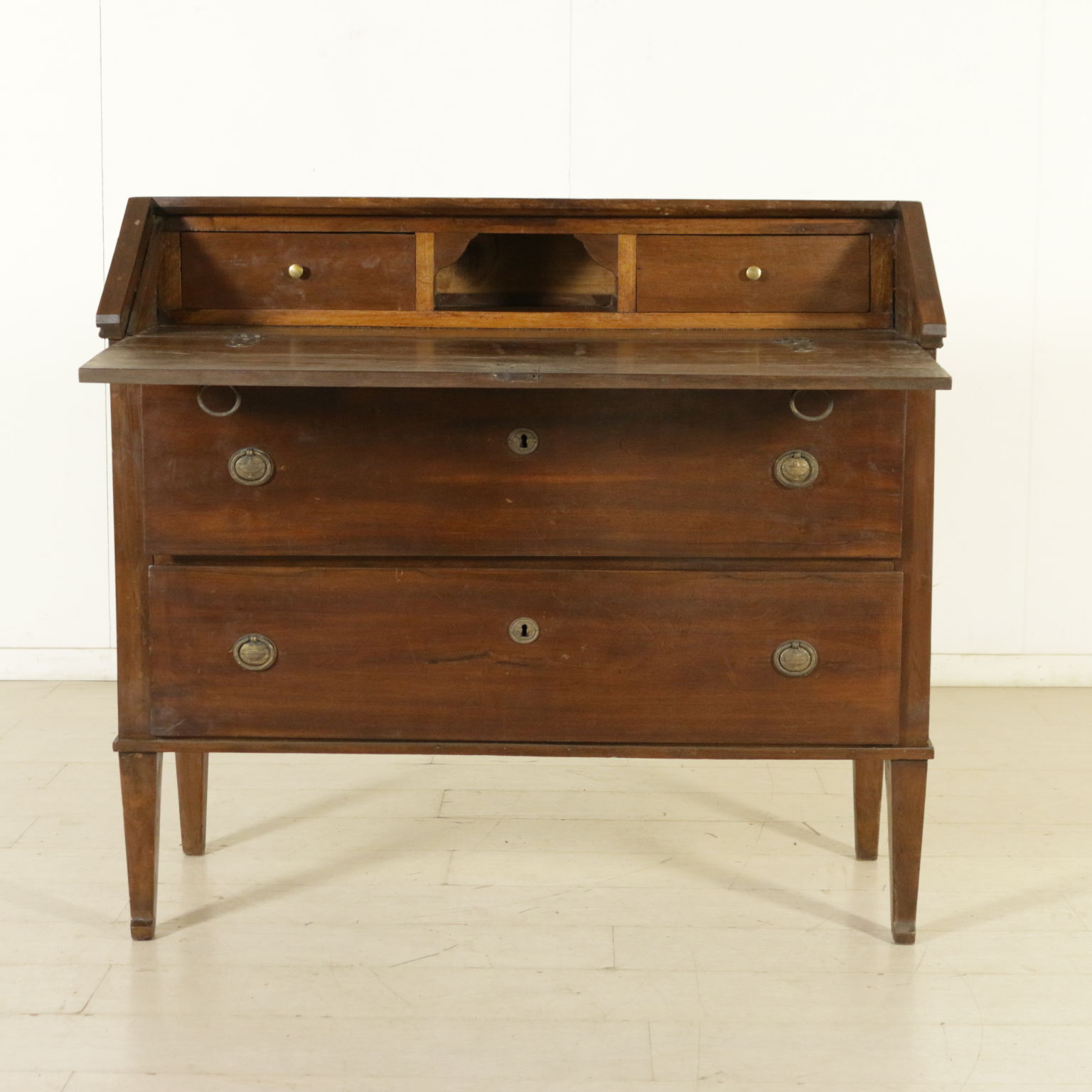 Vordergrund der Neoklassischen nussbaum, hat paar von schubladen und klappe. Innerhalb von zwei cassettini und fach; füße troncopiramidali mit spitze bewegt.