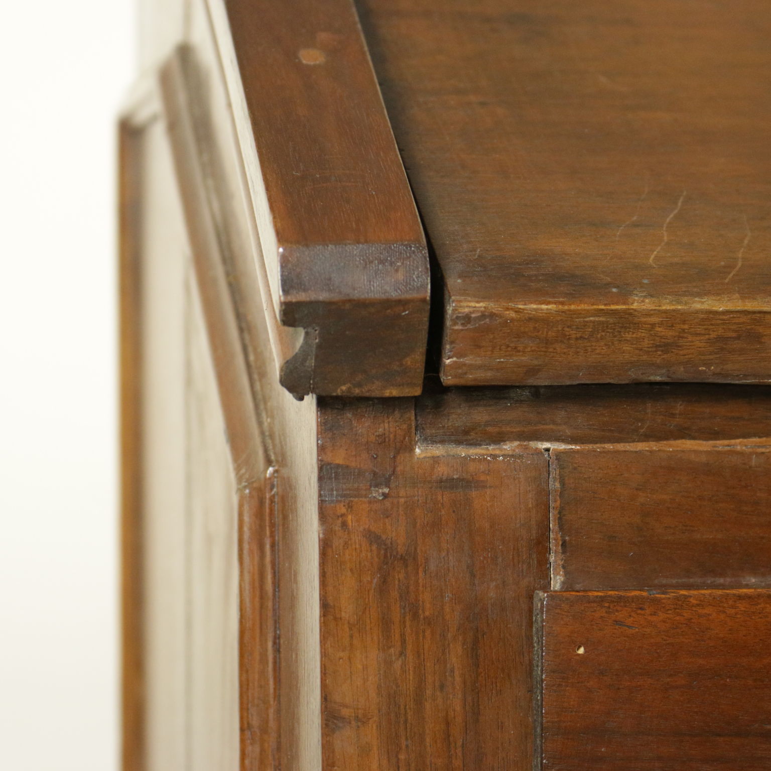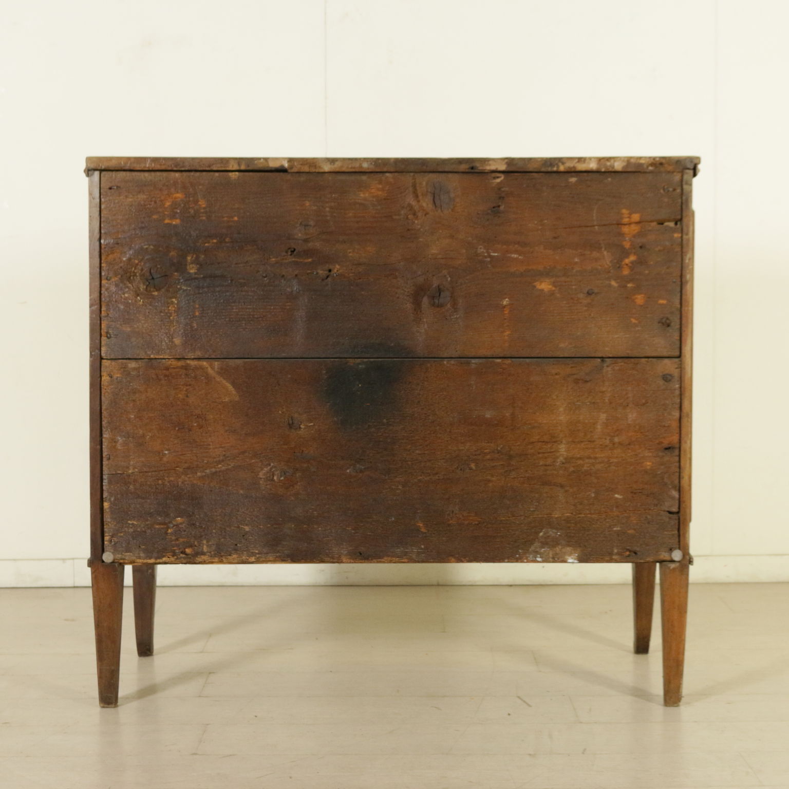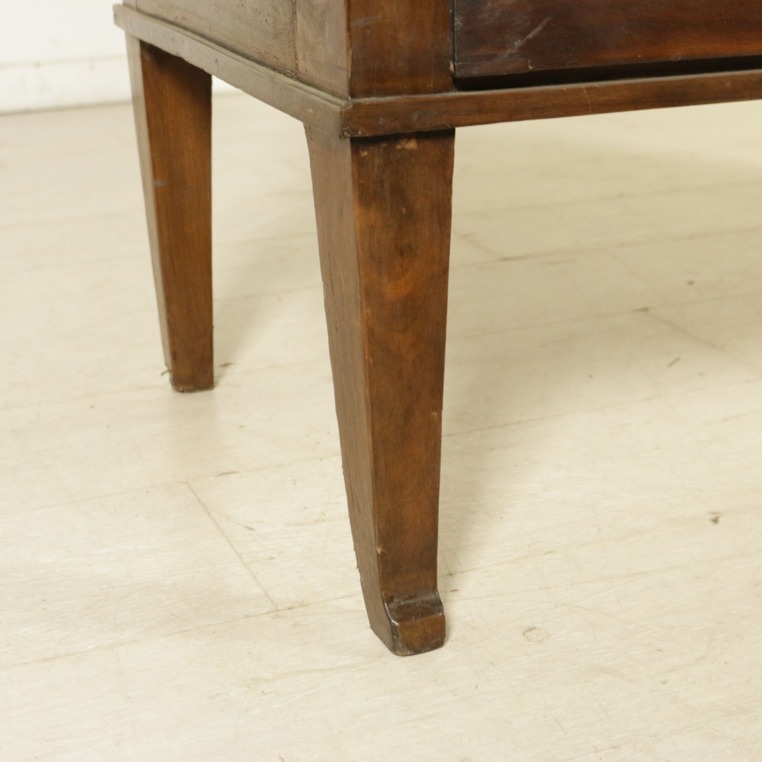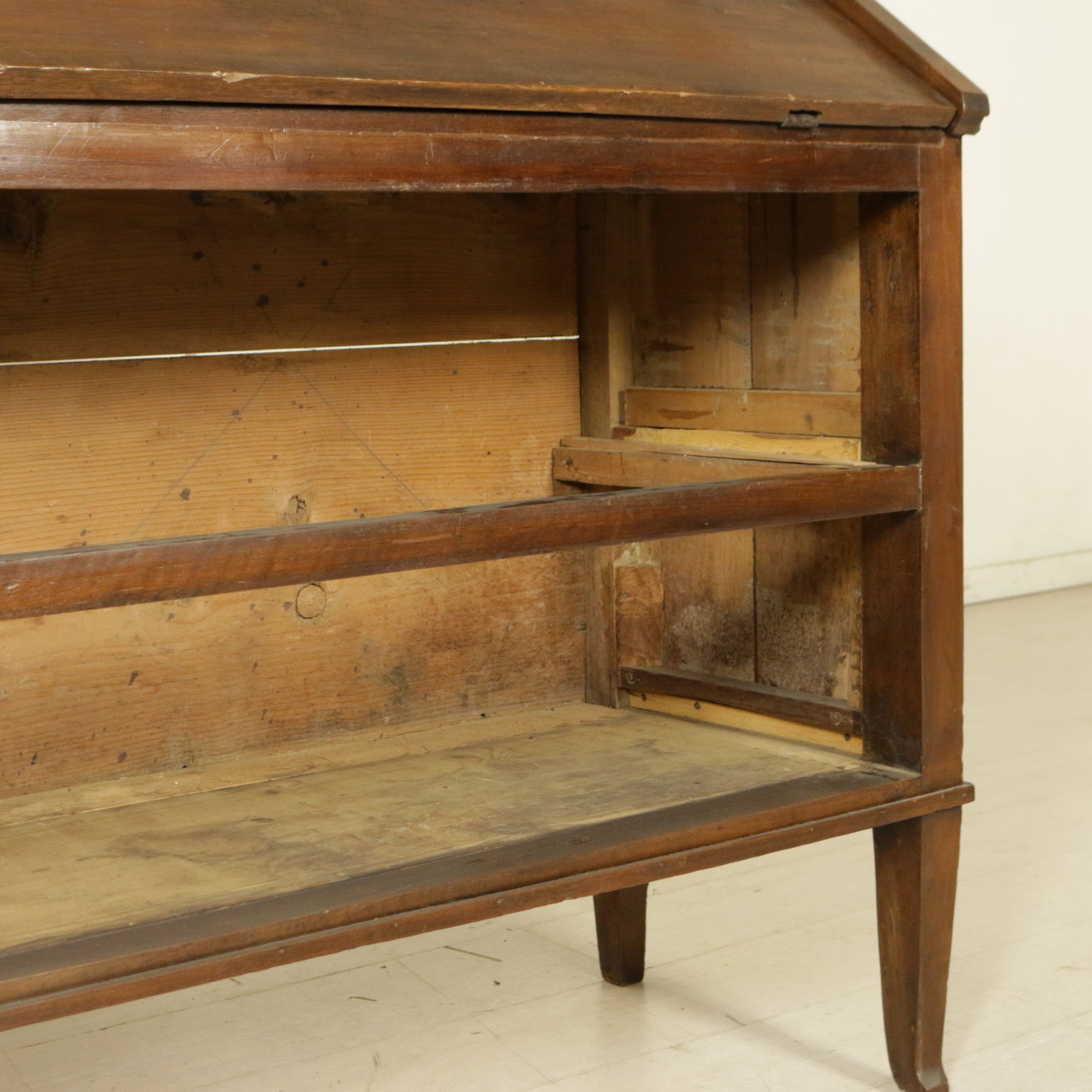 Vordergrund der Neoklassischen nussbaum, hat paar von schubladen und klappe. Innerhalb von zwei cassettini und fach; füße troncopiramidali mit spitze bewegt.