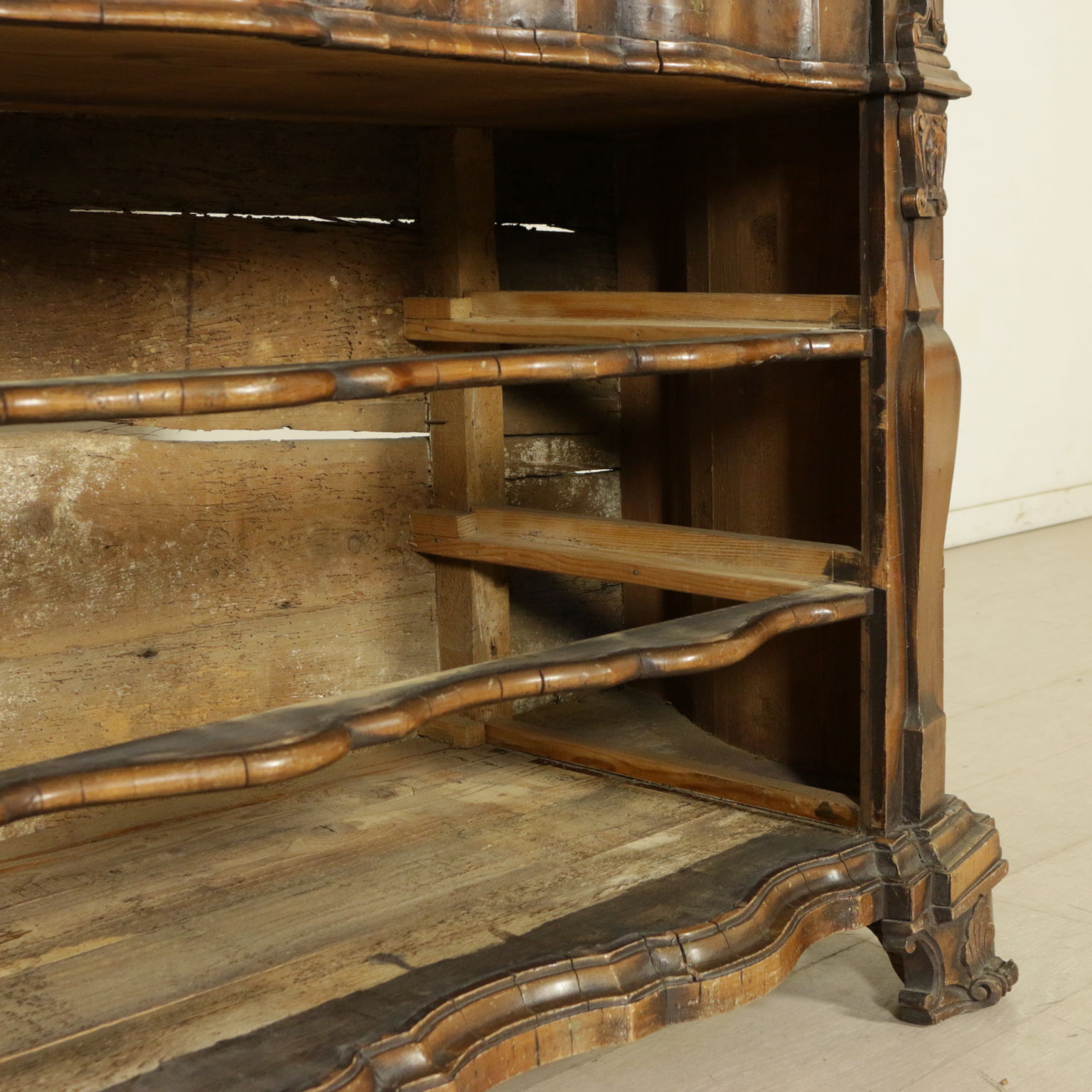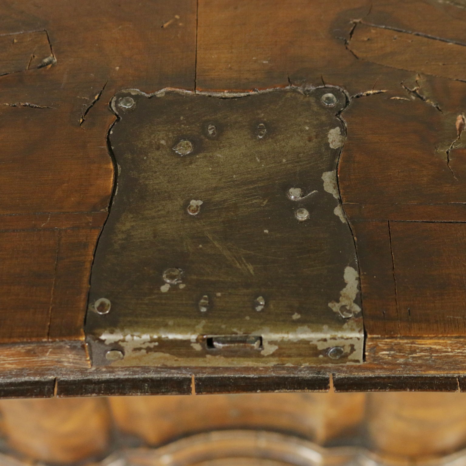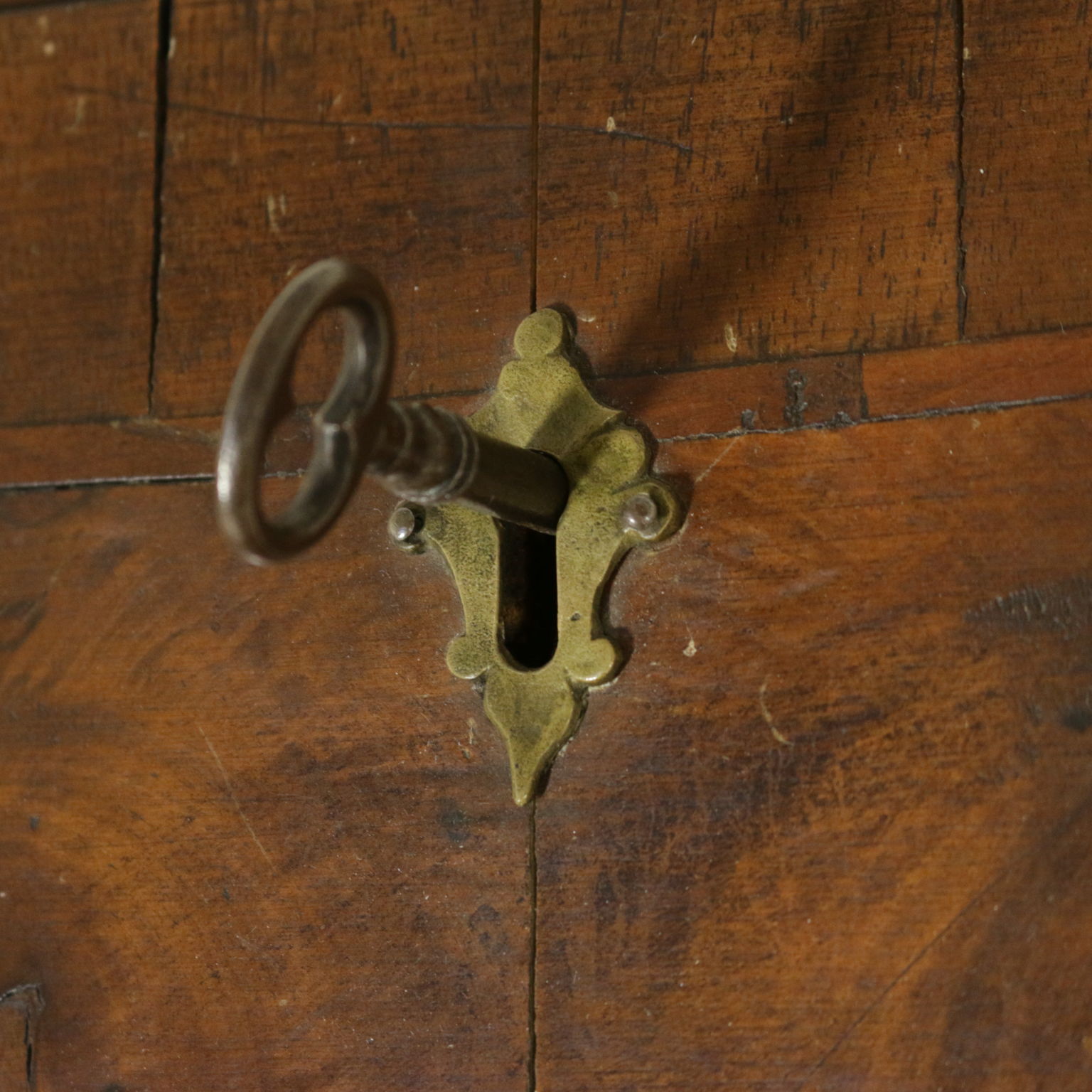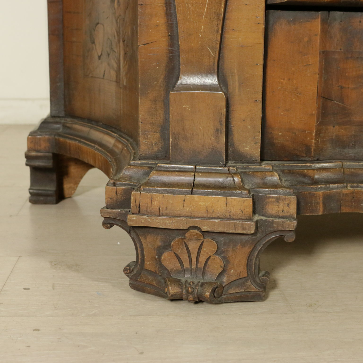 Nun wird sie in stil schritt auf der vorderseite und an den seiten mit drei schubladen und klappe, innen drei schubladen und fach. Schiebeplatte geheimnis. Platte nussbaum und wurzelholz nussbaum.