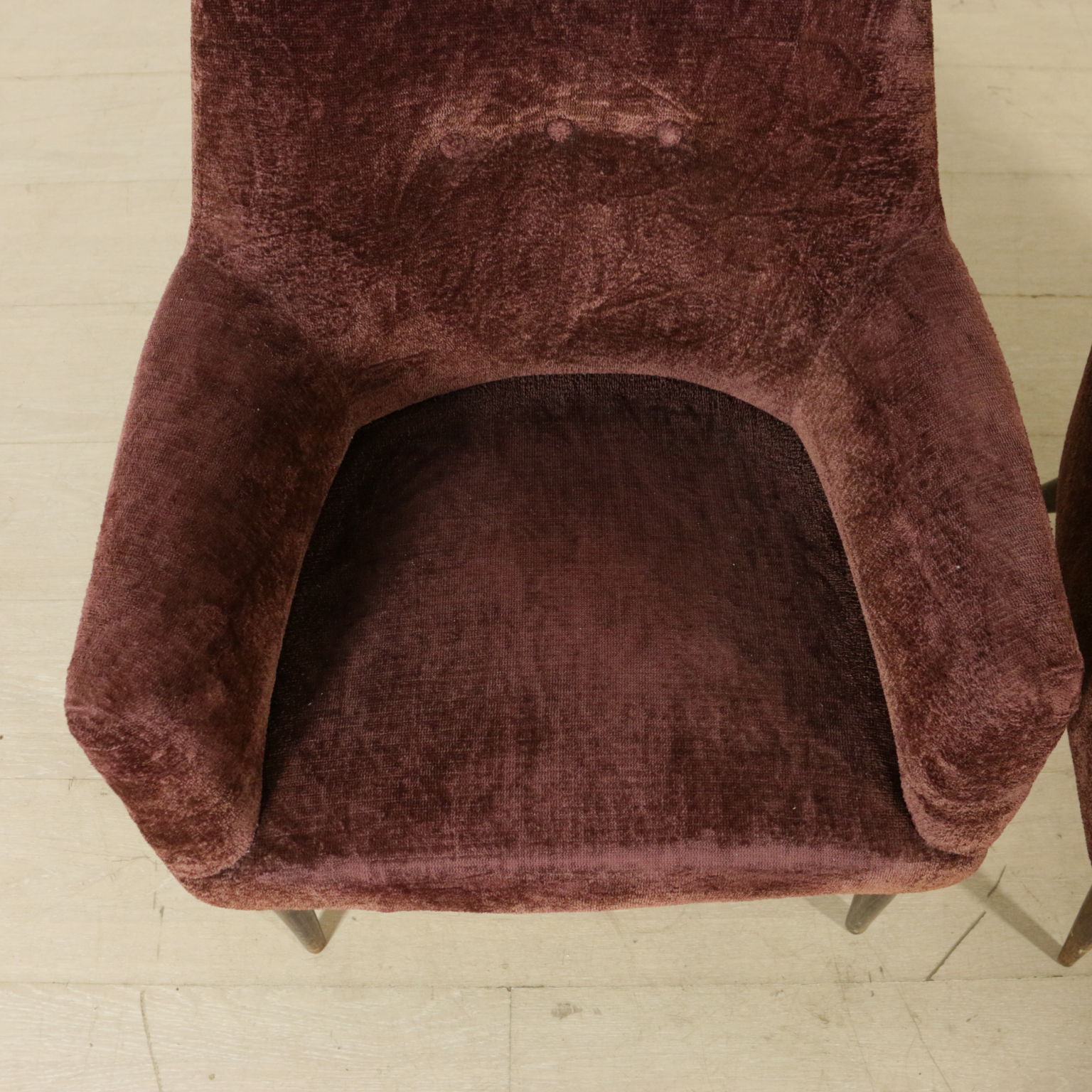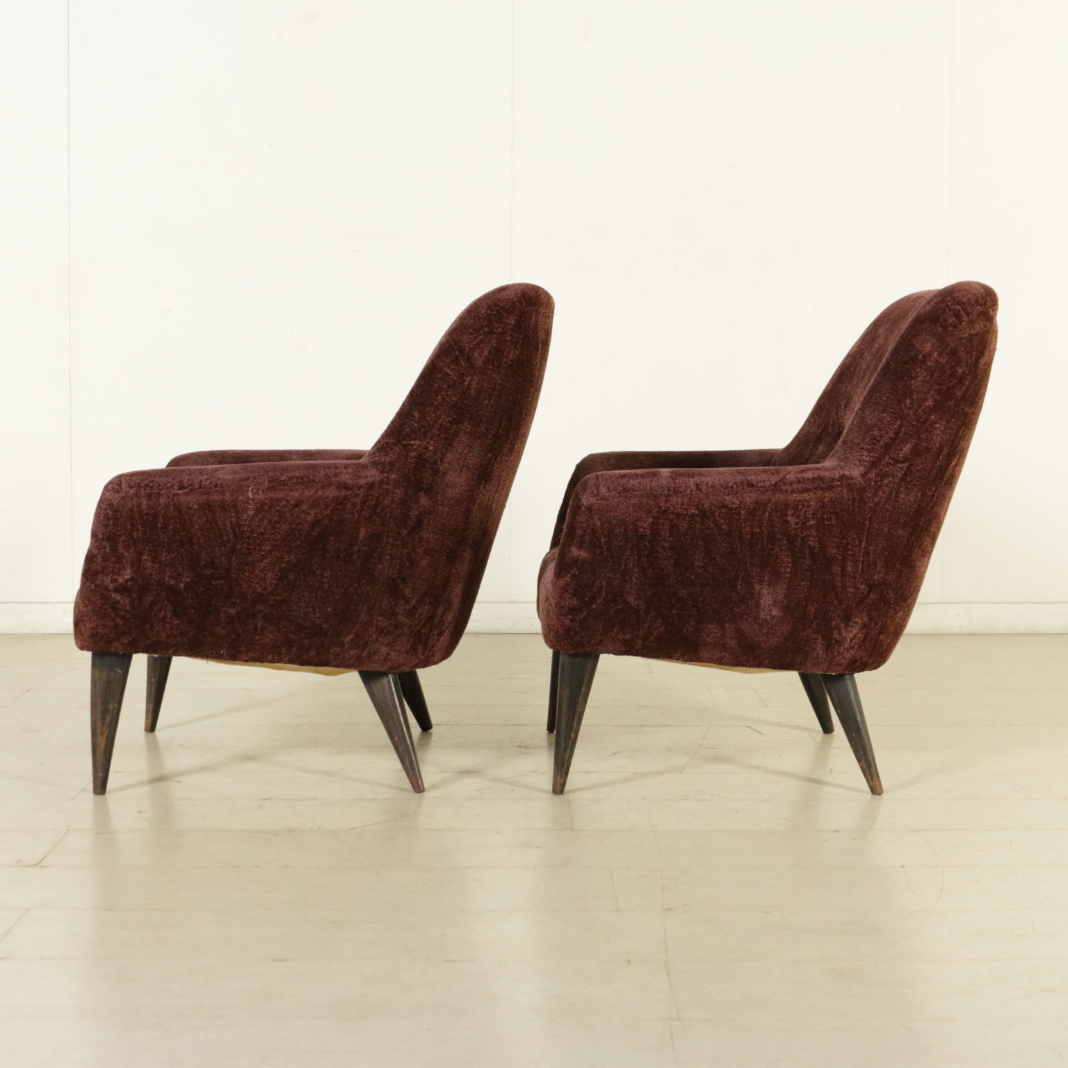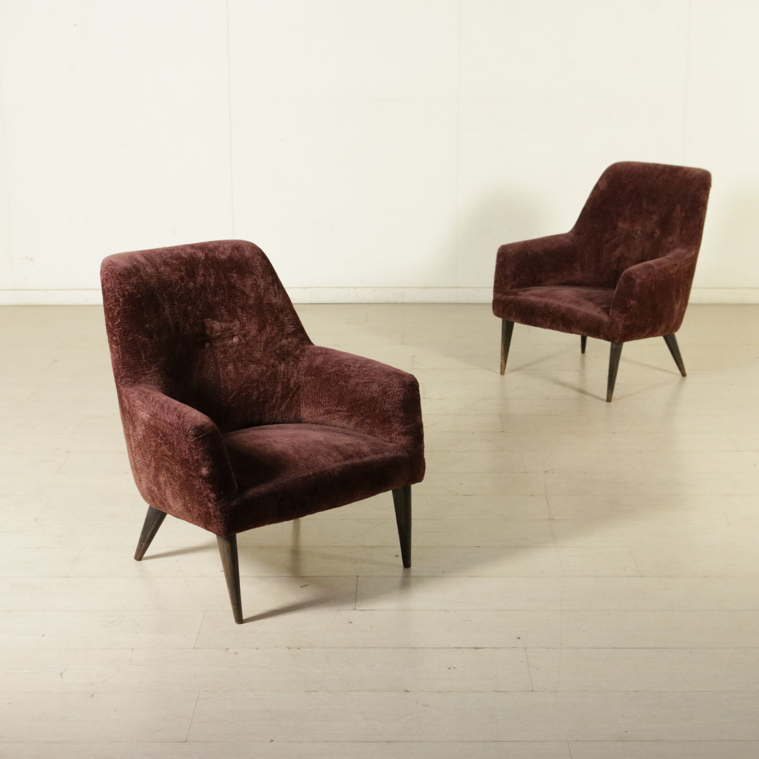 Paar sessel vintage 50er jahre mit polsterung mit federn, futter, samt und holz beine.