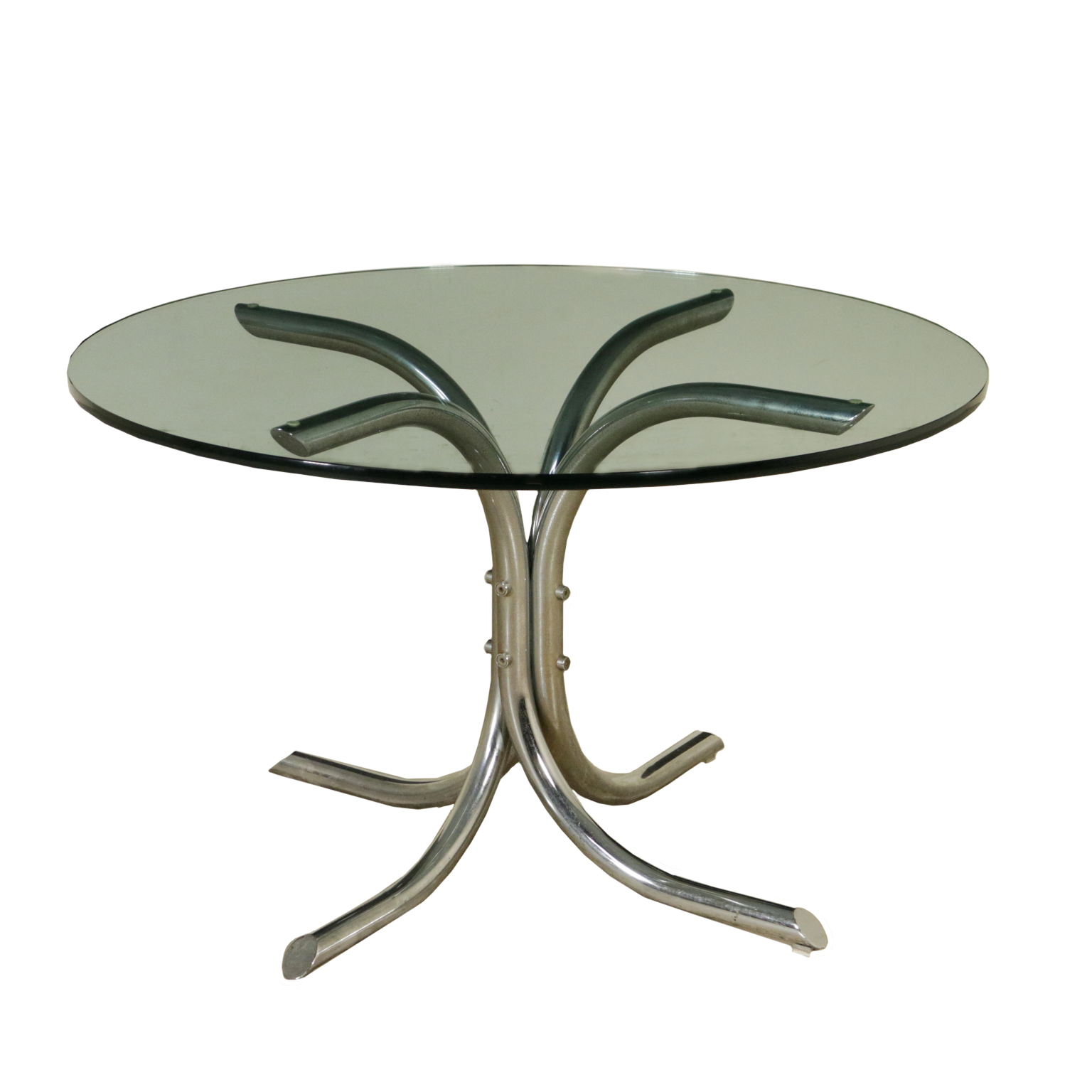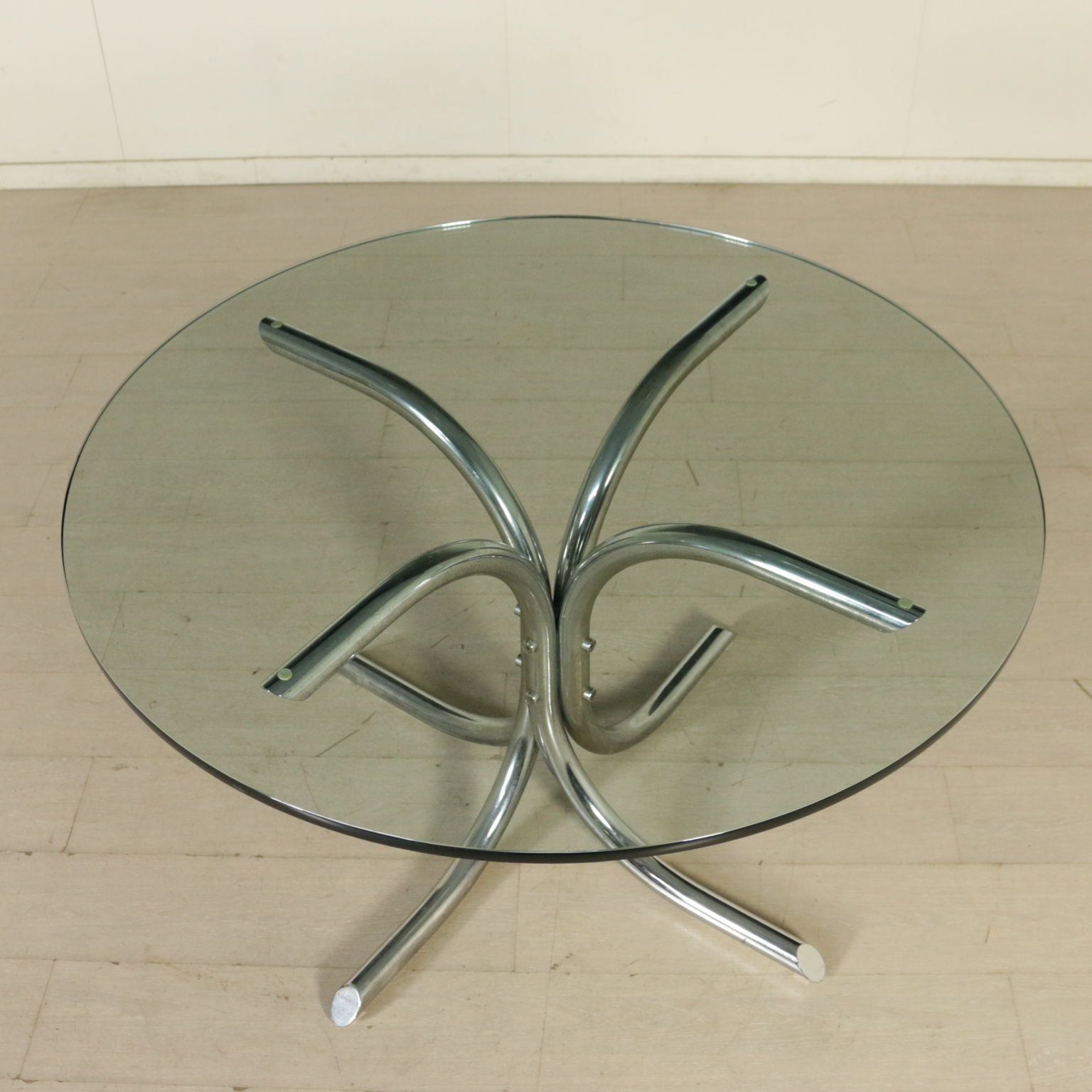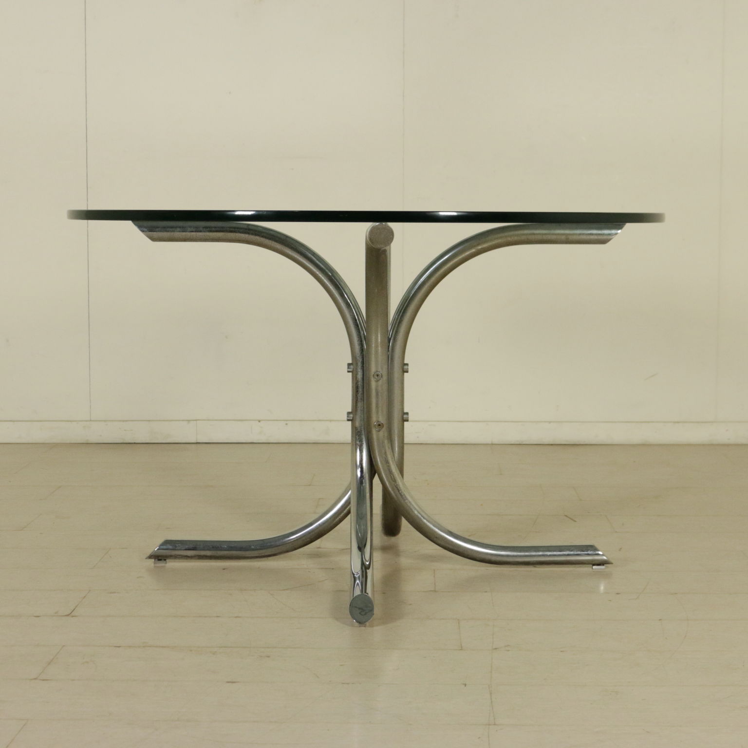 Tisch vintage 60-70 jahre mit basis aus verchromtem metall und glasplatte.