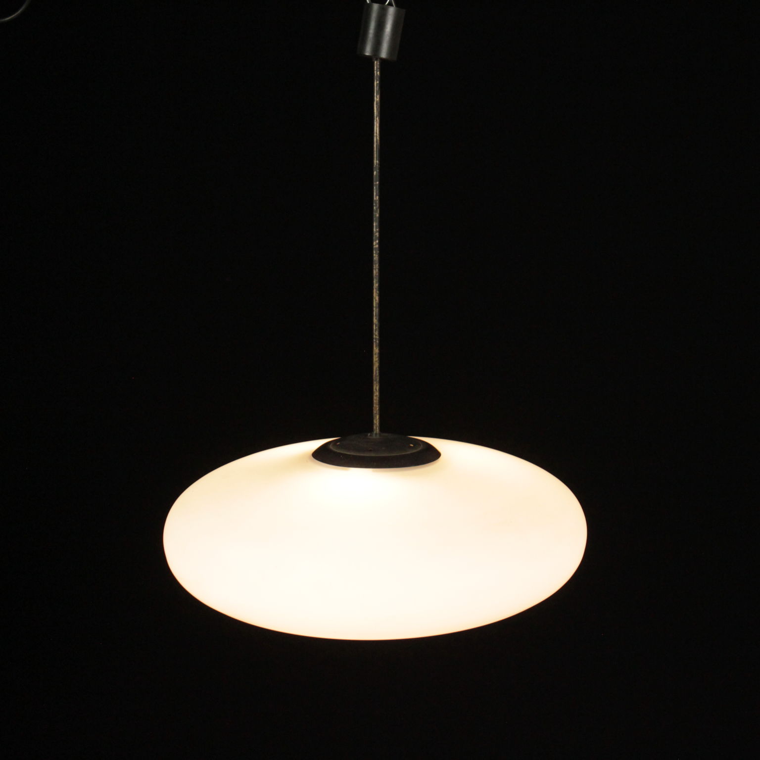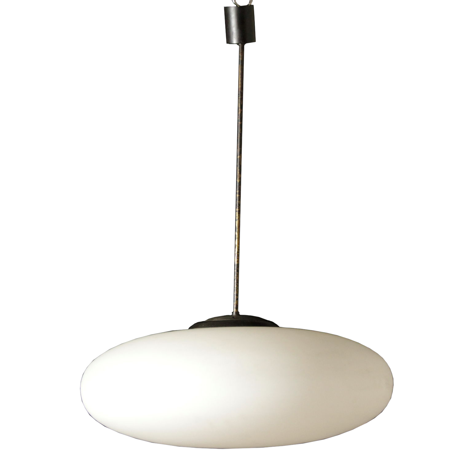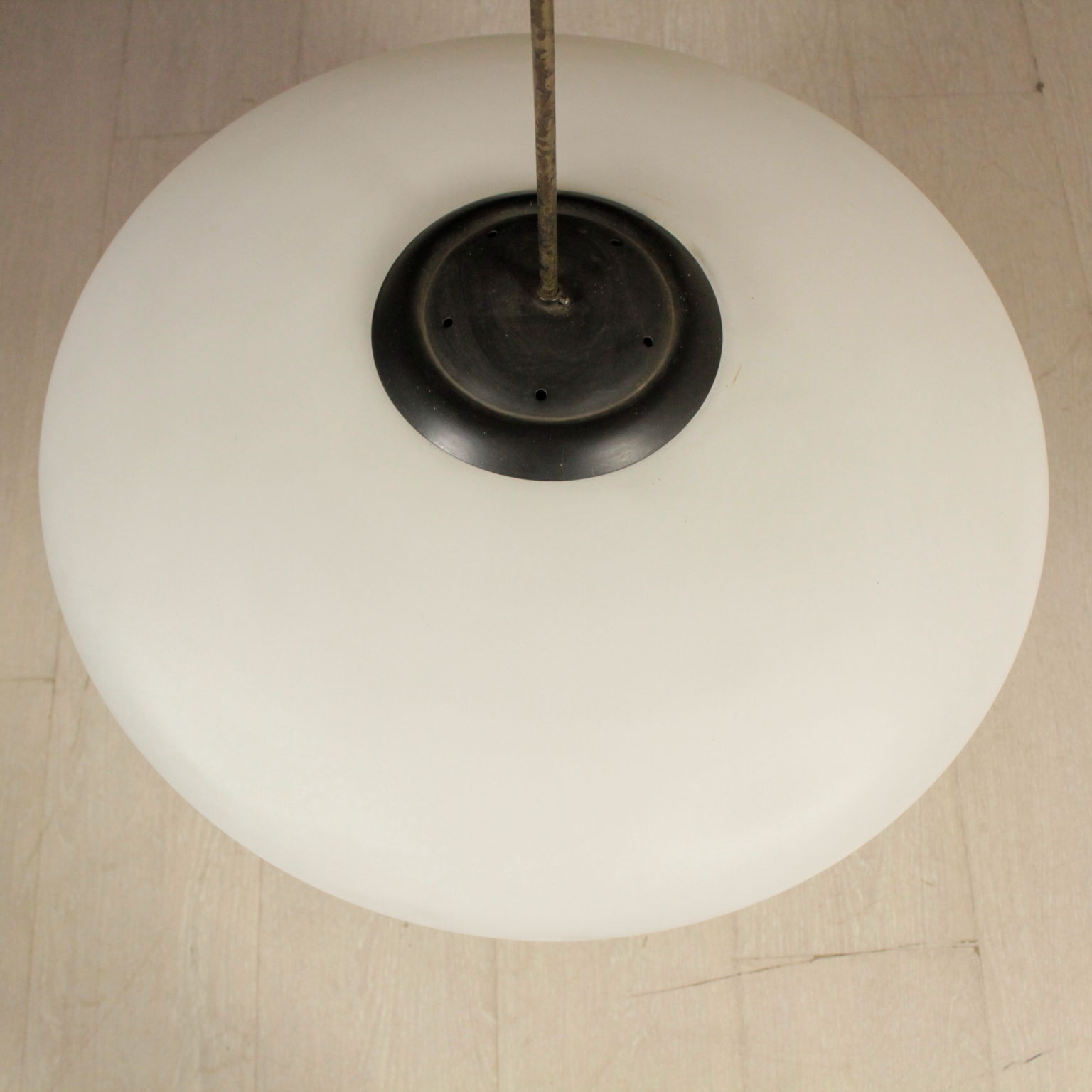 Lampe aus den 60 jahren, die an der decke im stil von "Stilnovo"; messing, opalglas.