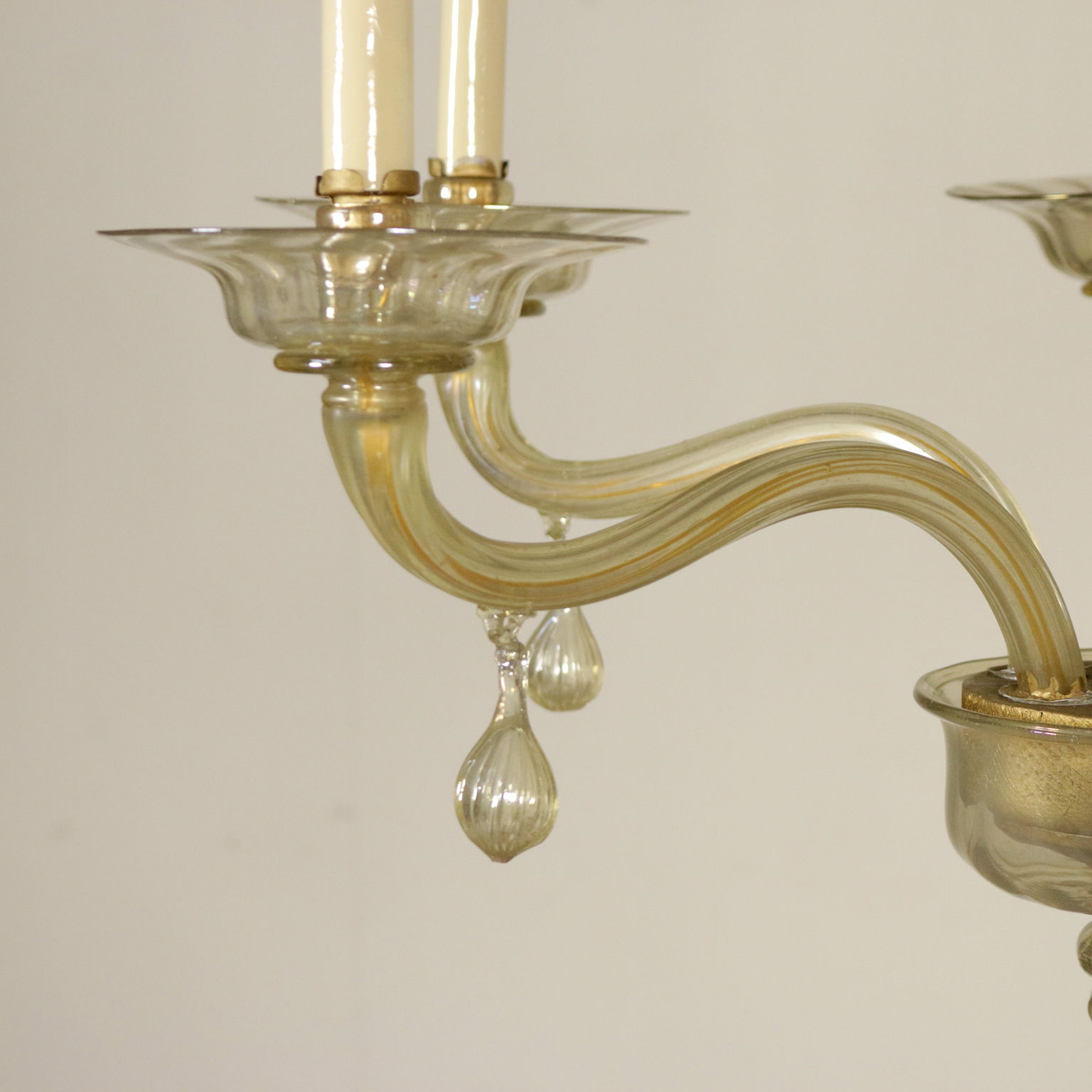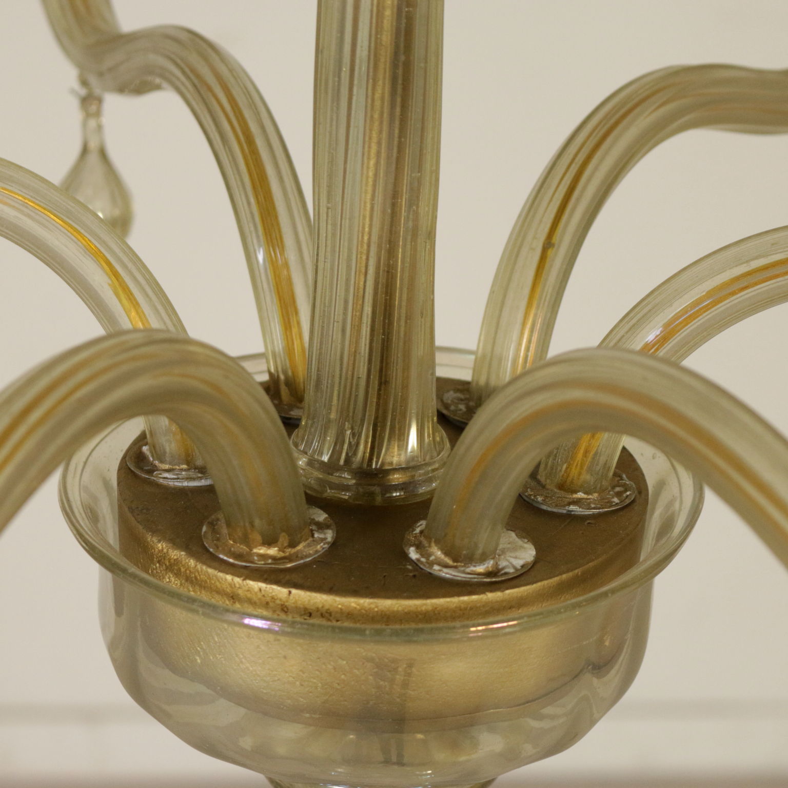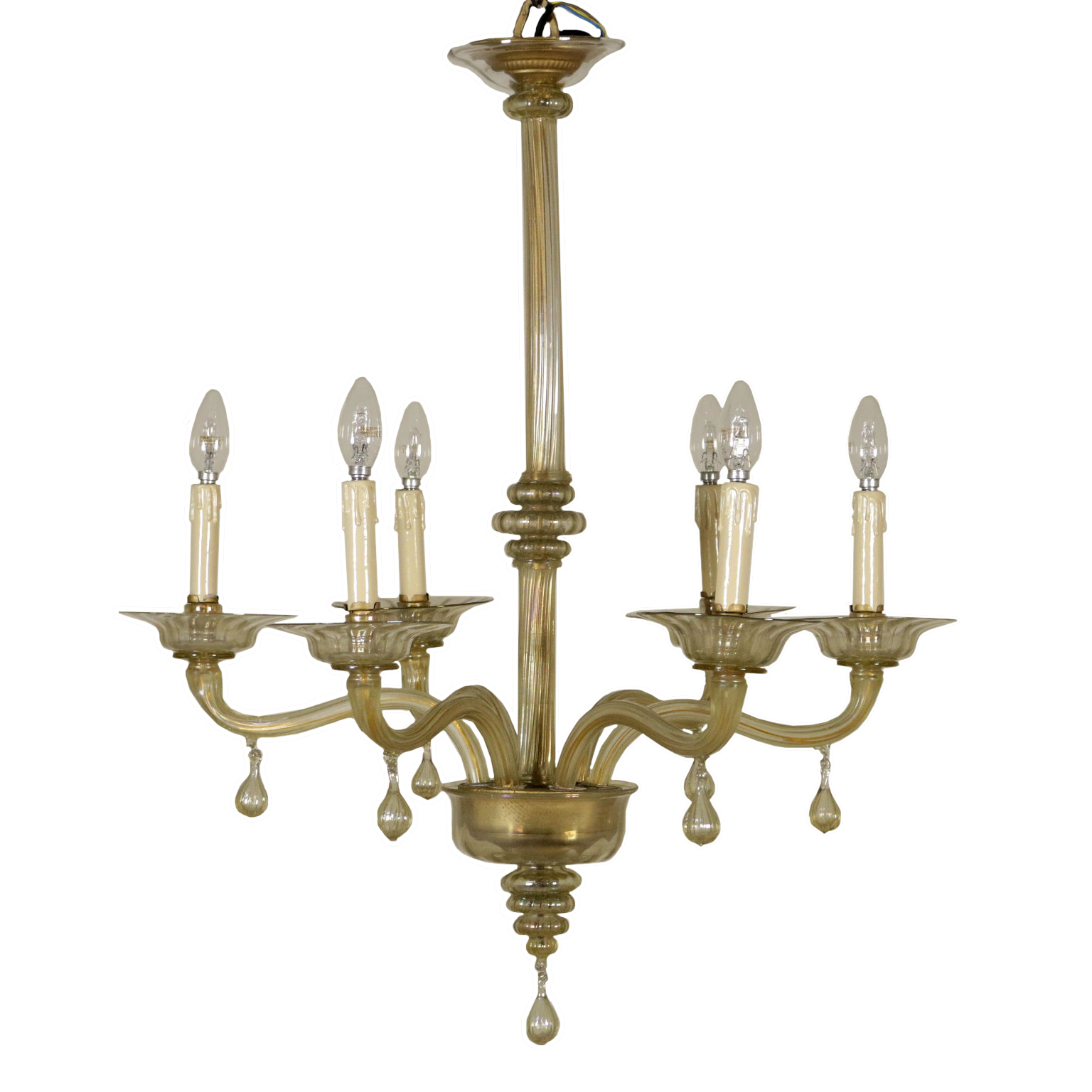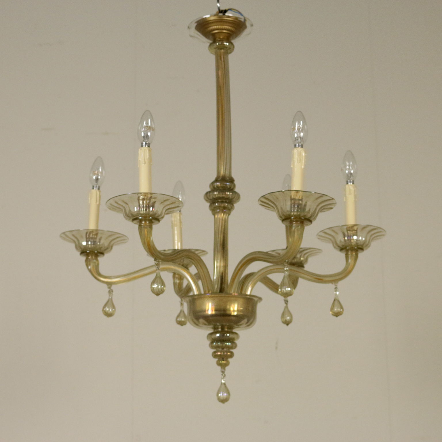 Kronleuchter mit sechs armen, die aus glas mit anhänger.