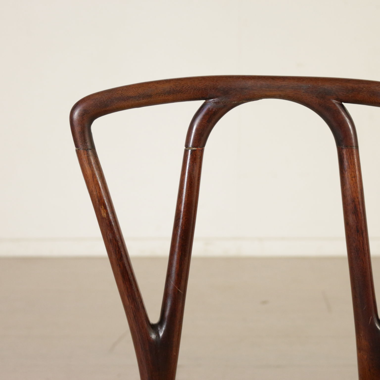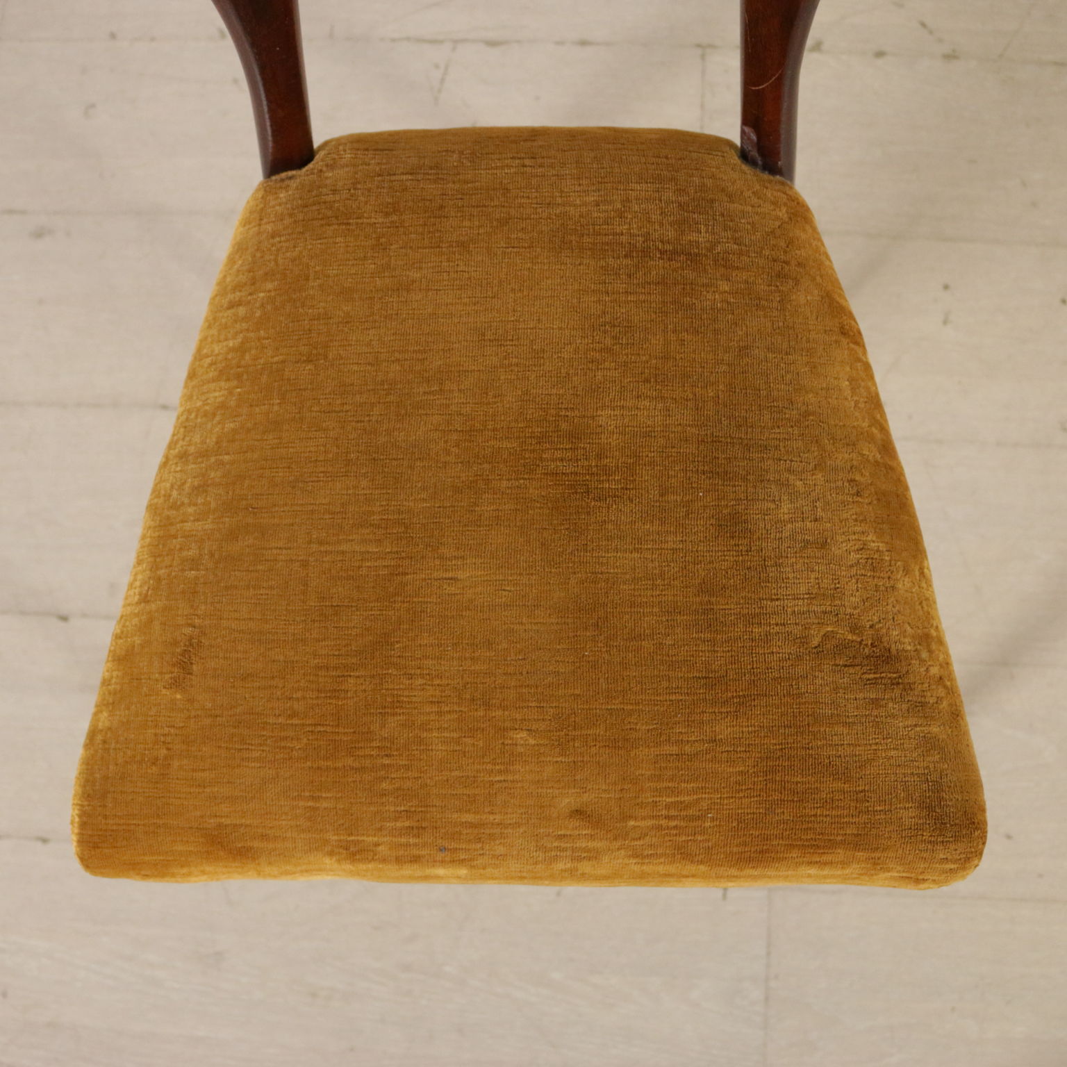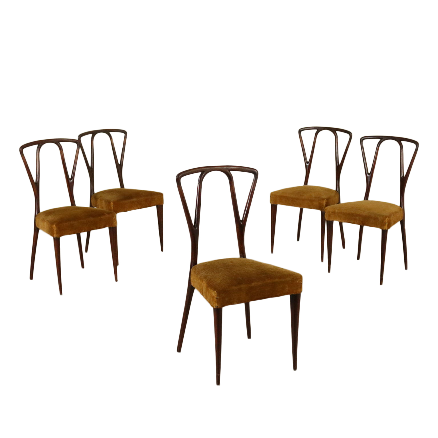 Gruppe von fünf stühlen; holz, gebeizt, polsterung mit federn, futter aus samt.