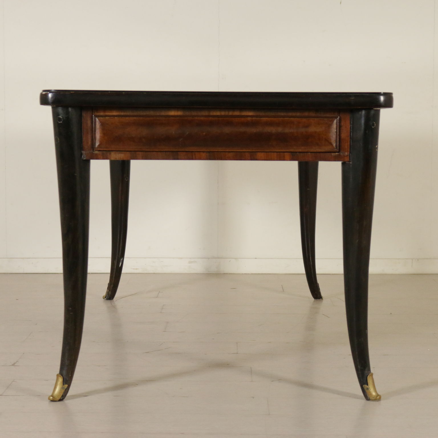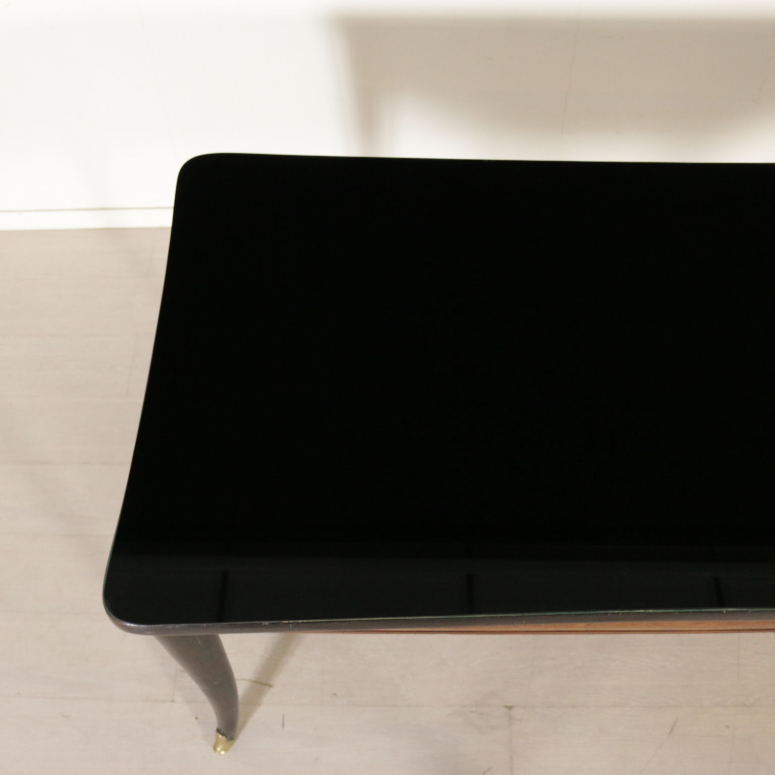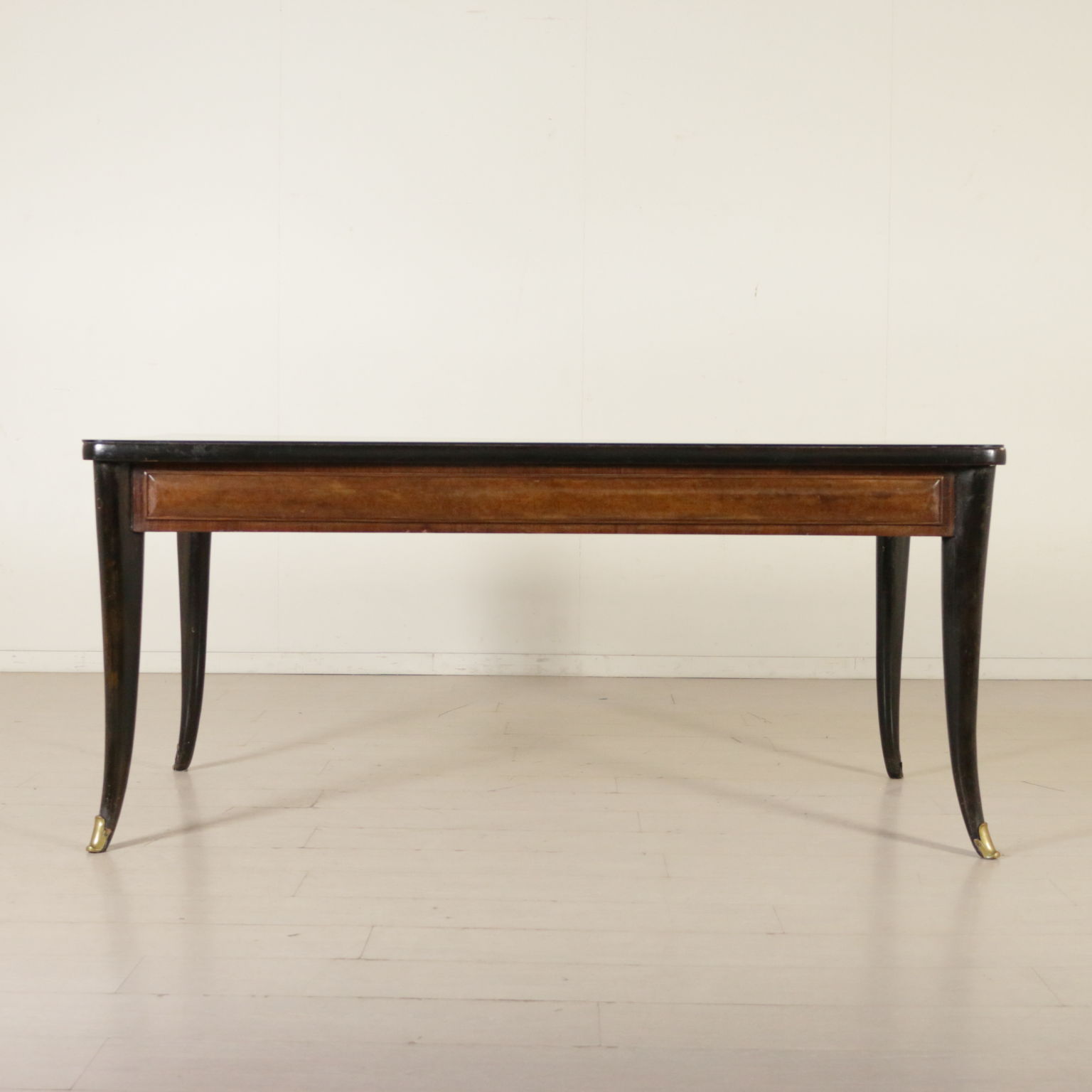 Tisch Dassi massivholz, gebeizt ebenholz, holz, furniert, wurzelholz, glas rückseite vertrag, messing.