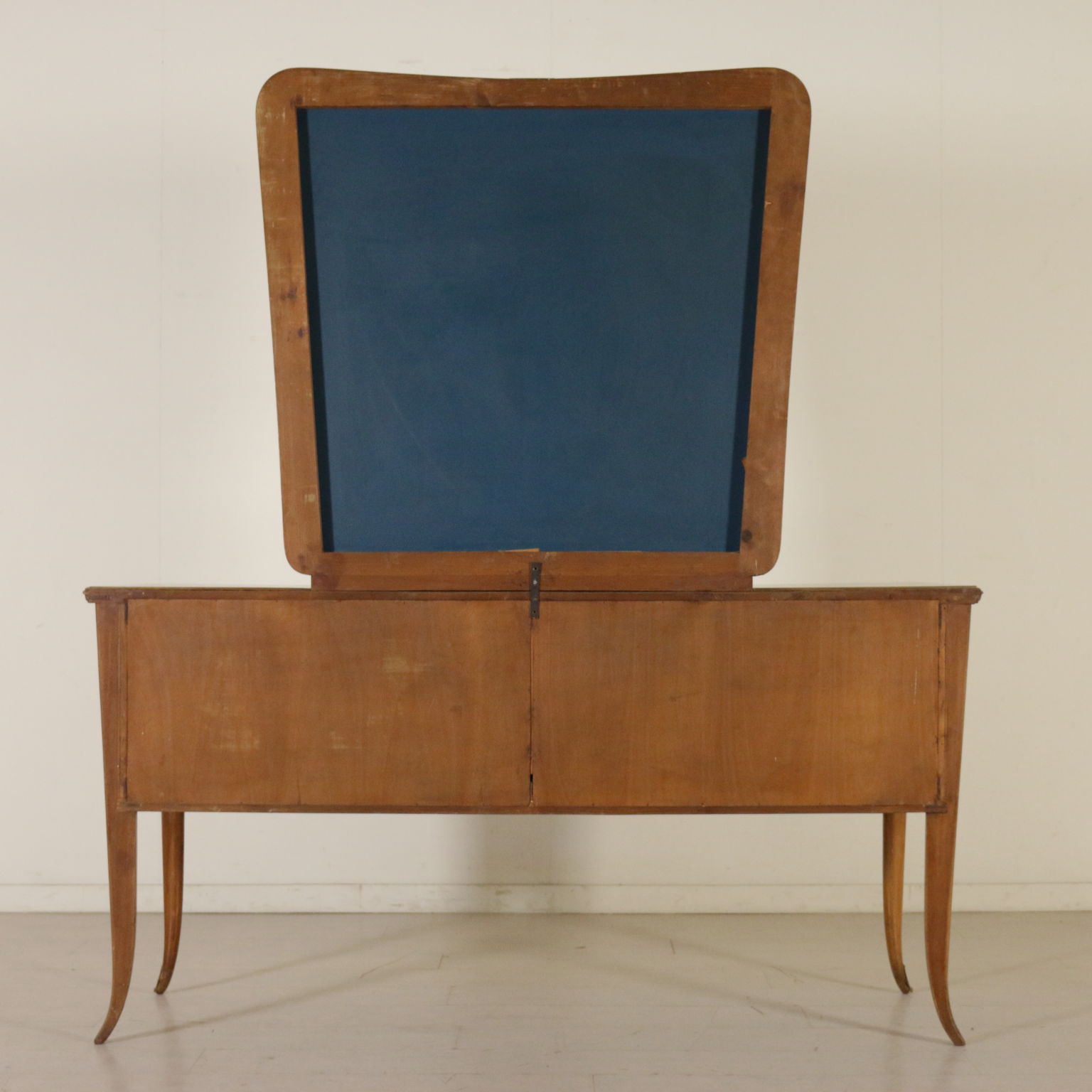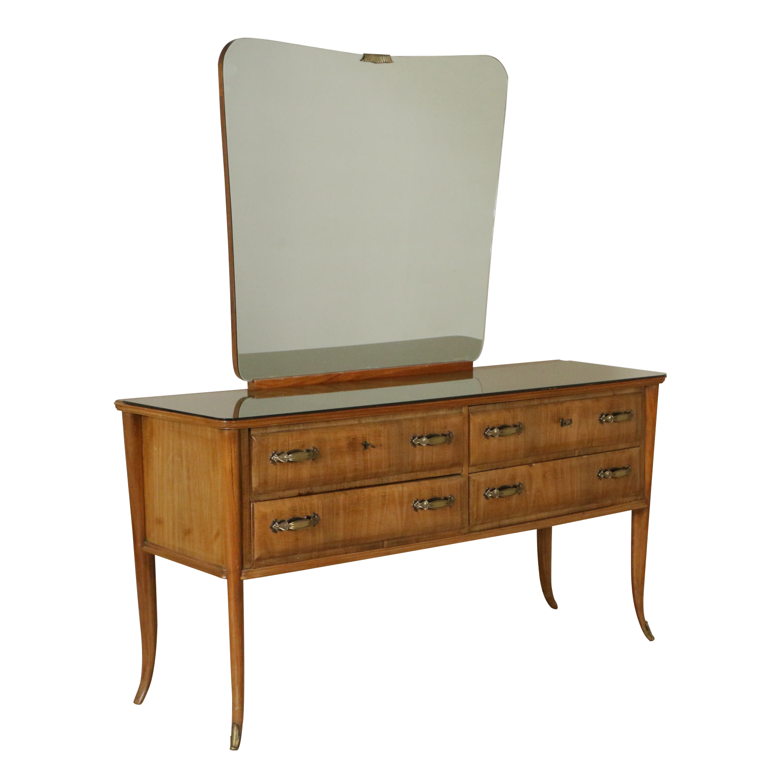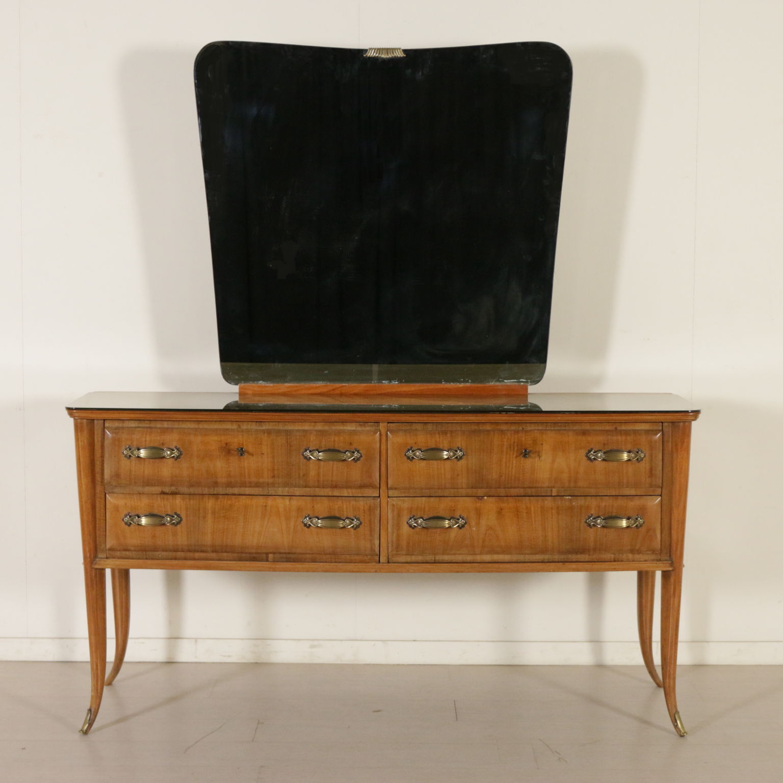 Kommode mit spiegel; holz, nussbaum furniert, glas rückseite vertrag, messing.