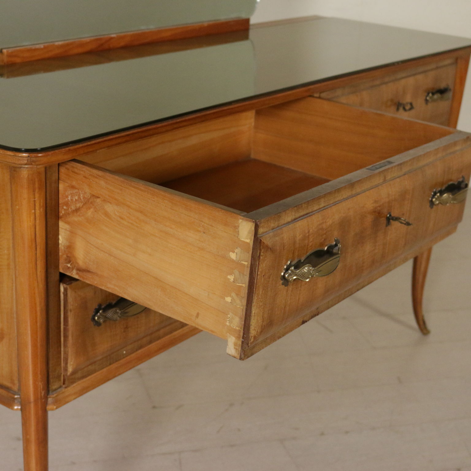 Material: Nussbaumholz Furnier , Messing , Zurück Behandeltes Glas