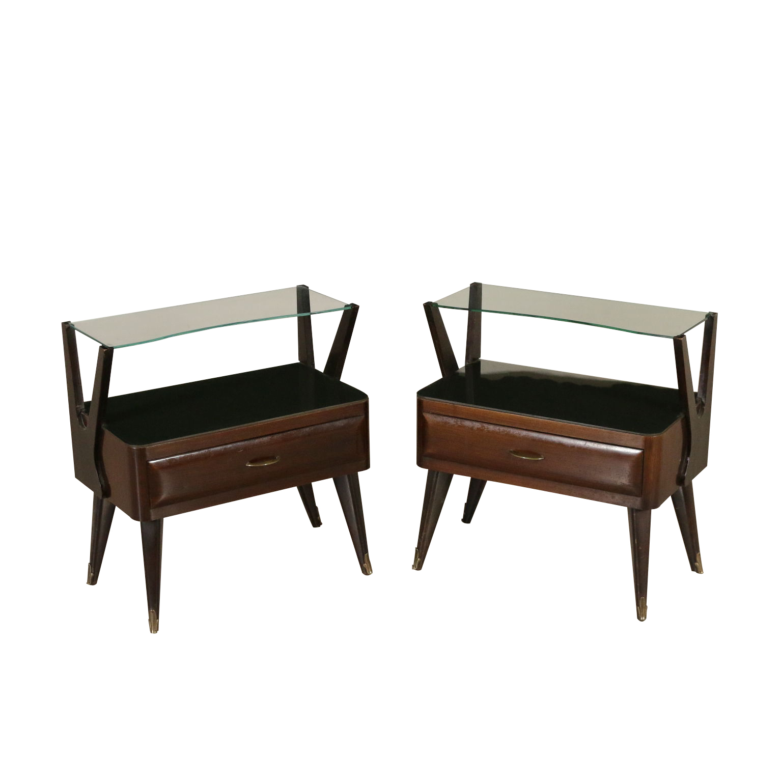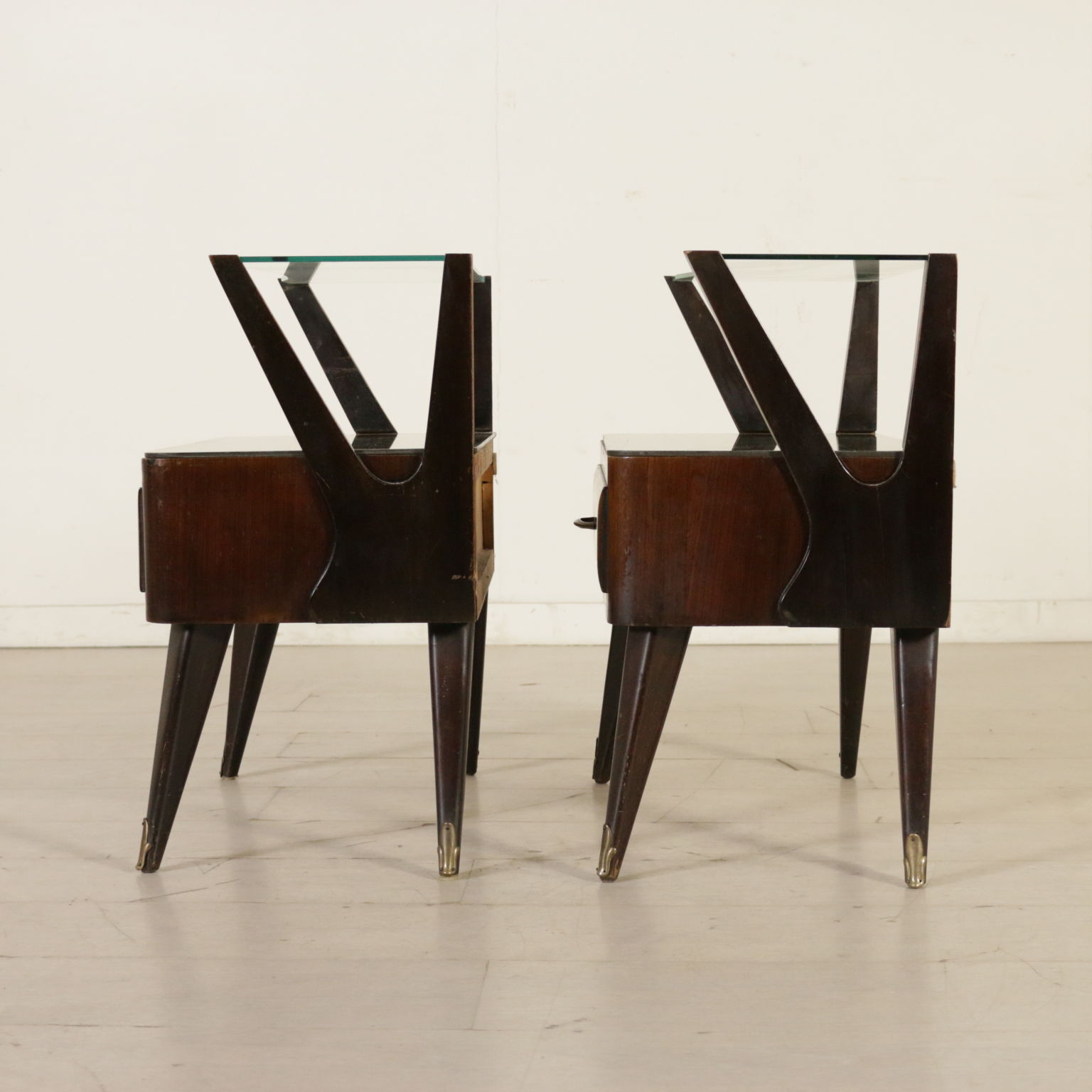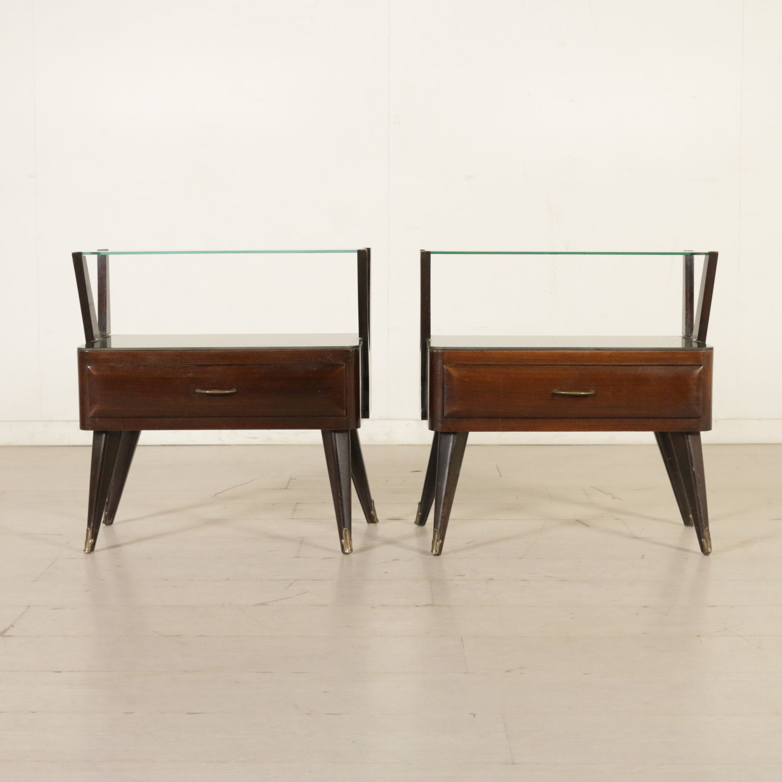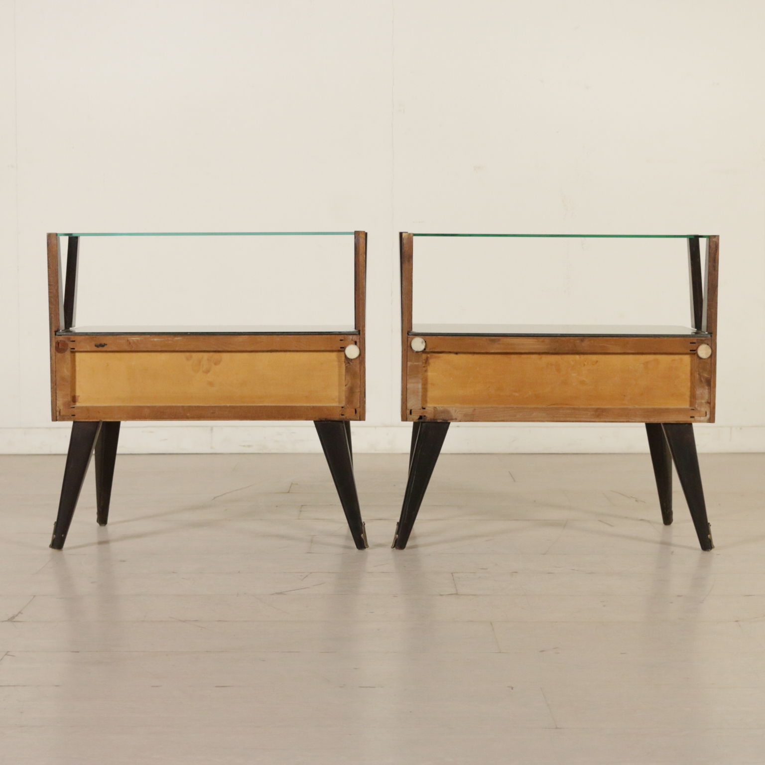 Paar nachttische; holz, furniert, palisander und gefärbtem holz ebenholz, glas rückseite behandelt und das glas ist transparent.