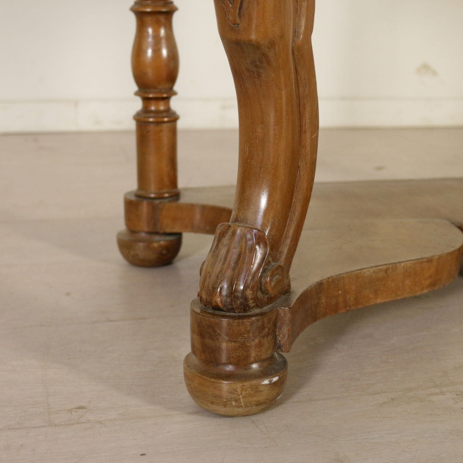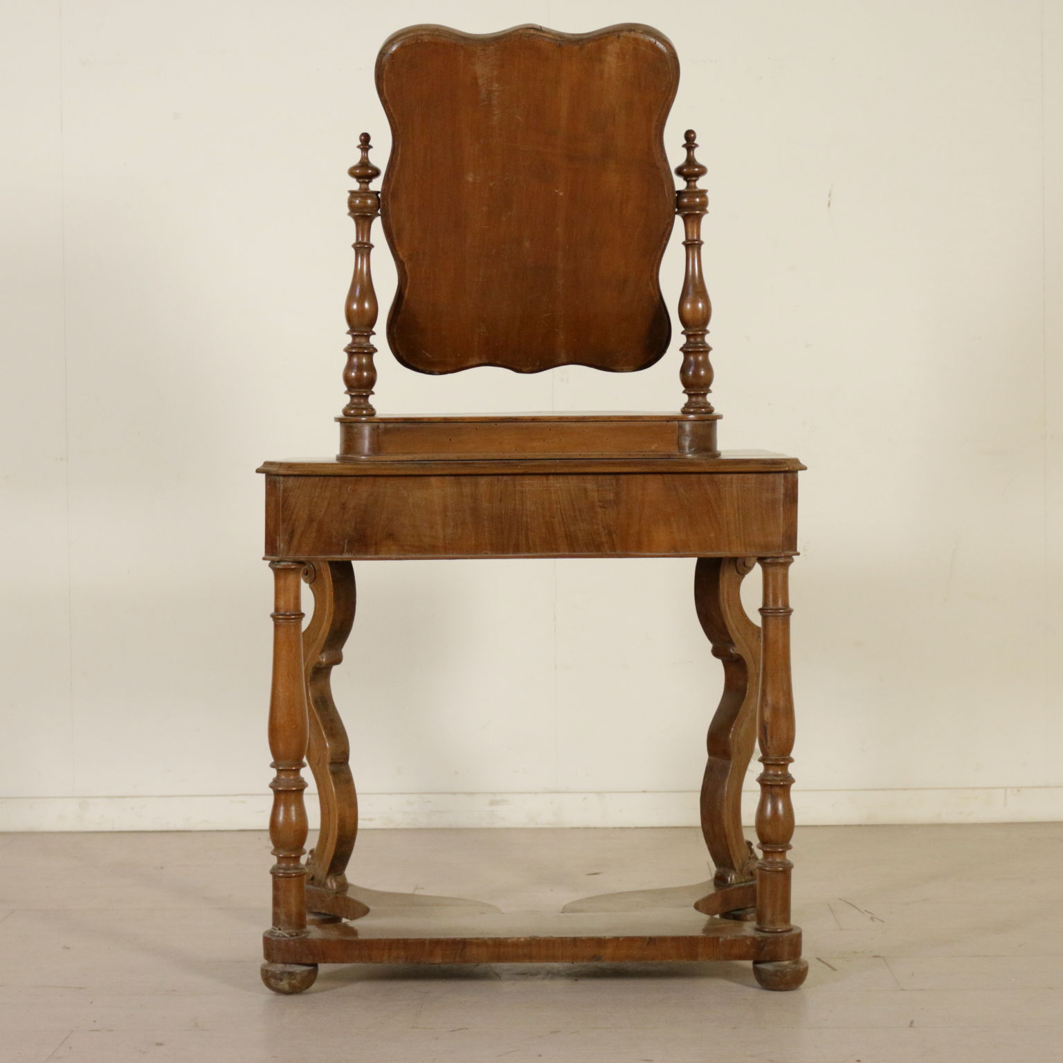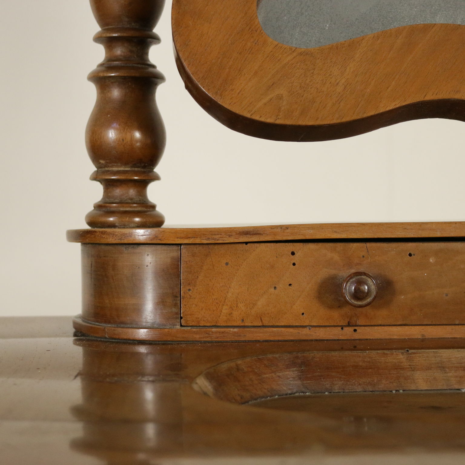 Unterstützt durch beine bewegt und geschnitzt und weist eine schublade und eine piano-fach. Hochbeet mit spiegel und zwei cassettini.