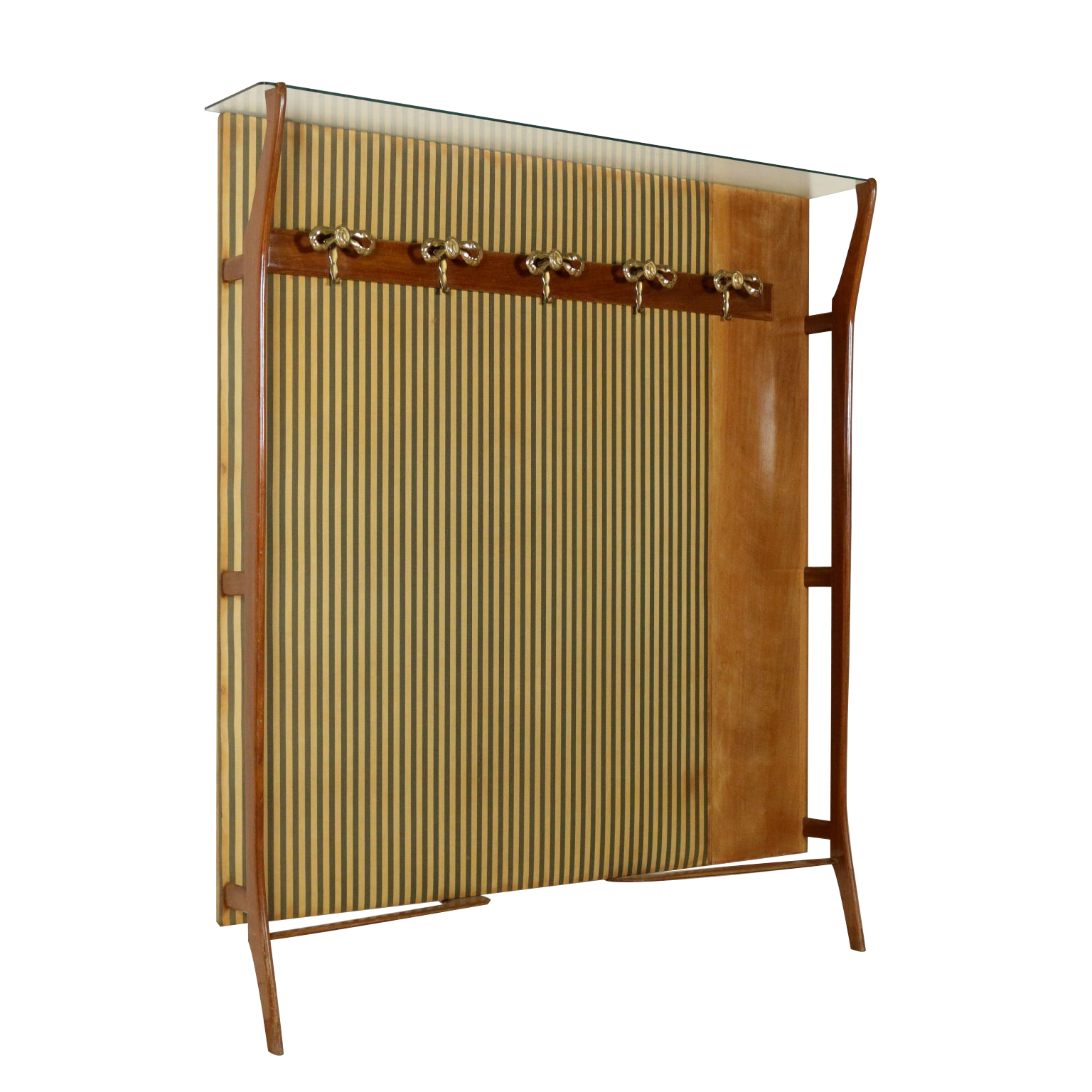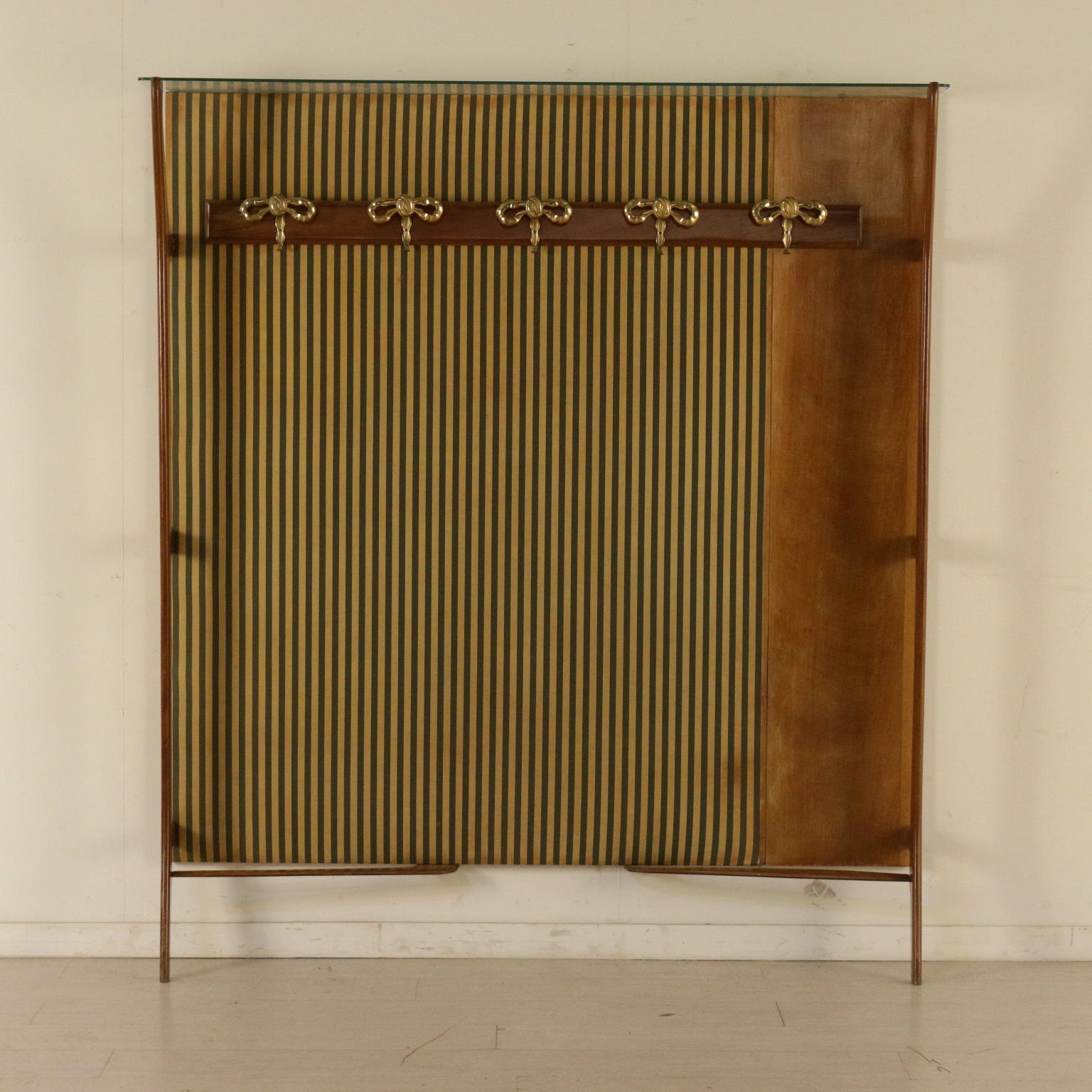 Kleiderbügel; holz-und buchenholz furniert, mahagoni, stoff, glas, messing.