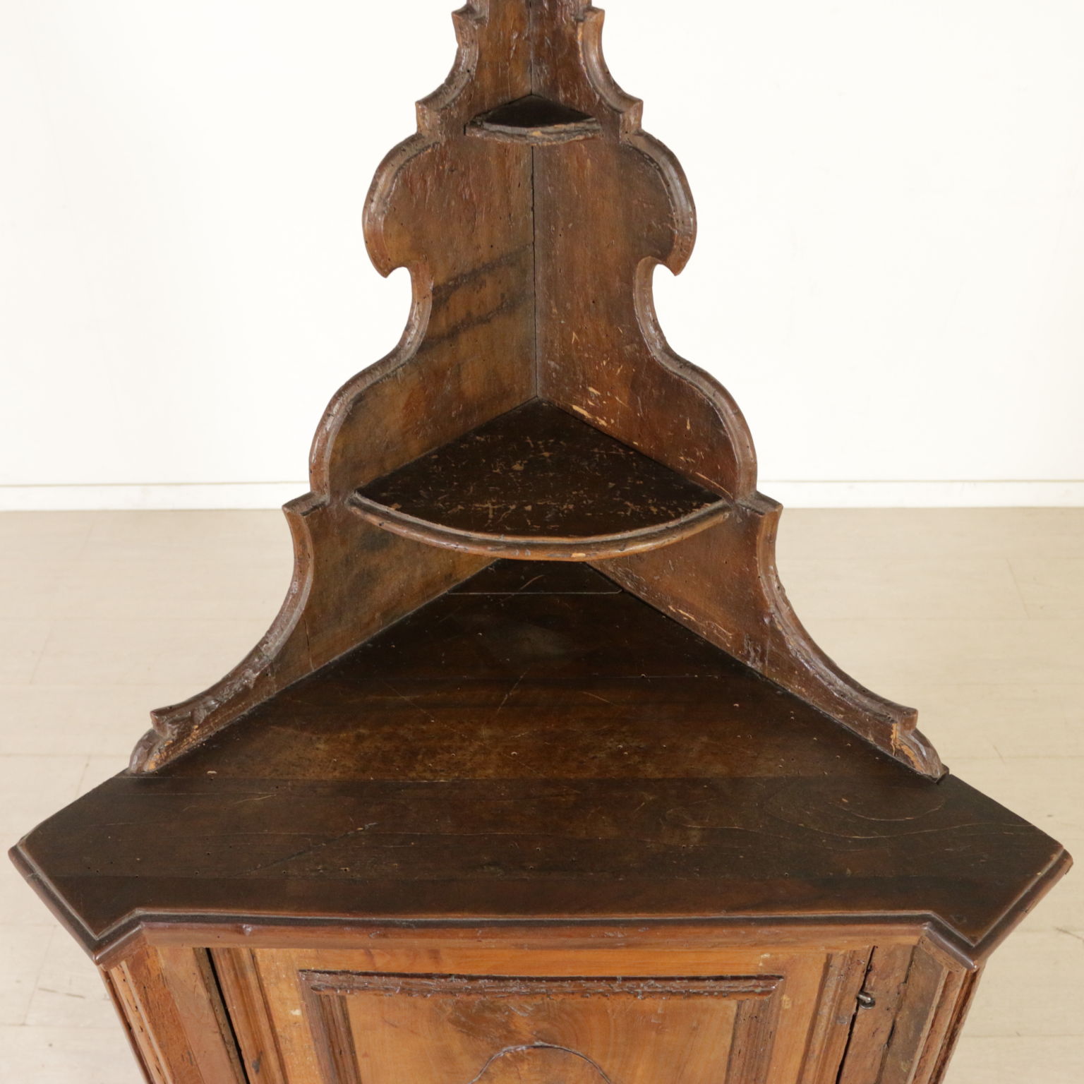 Montiert mit antikem holz verfügt über eine tür mit panel geschnitzt und säulen mit platten. Fuß-regal.