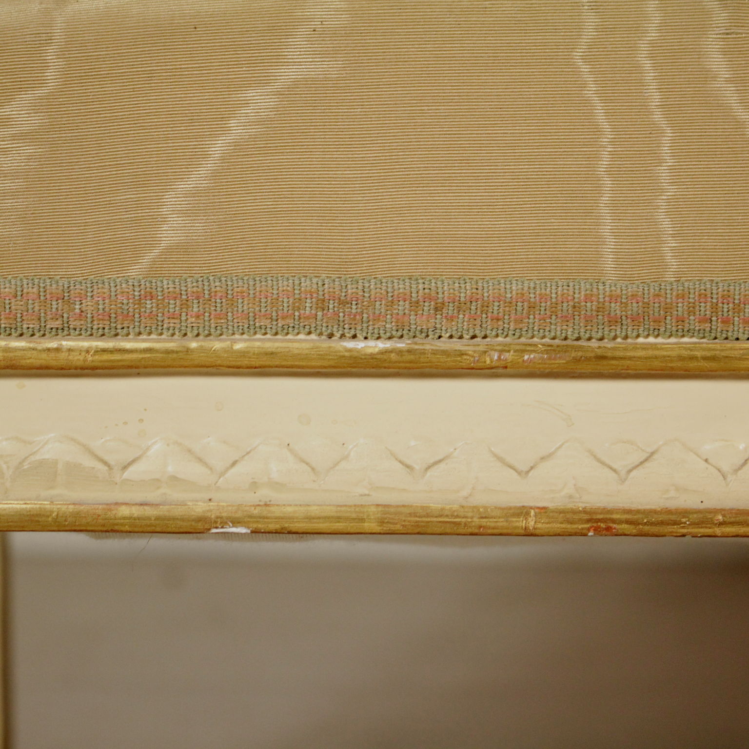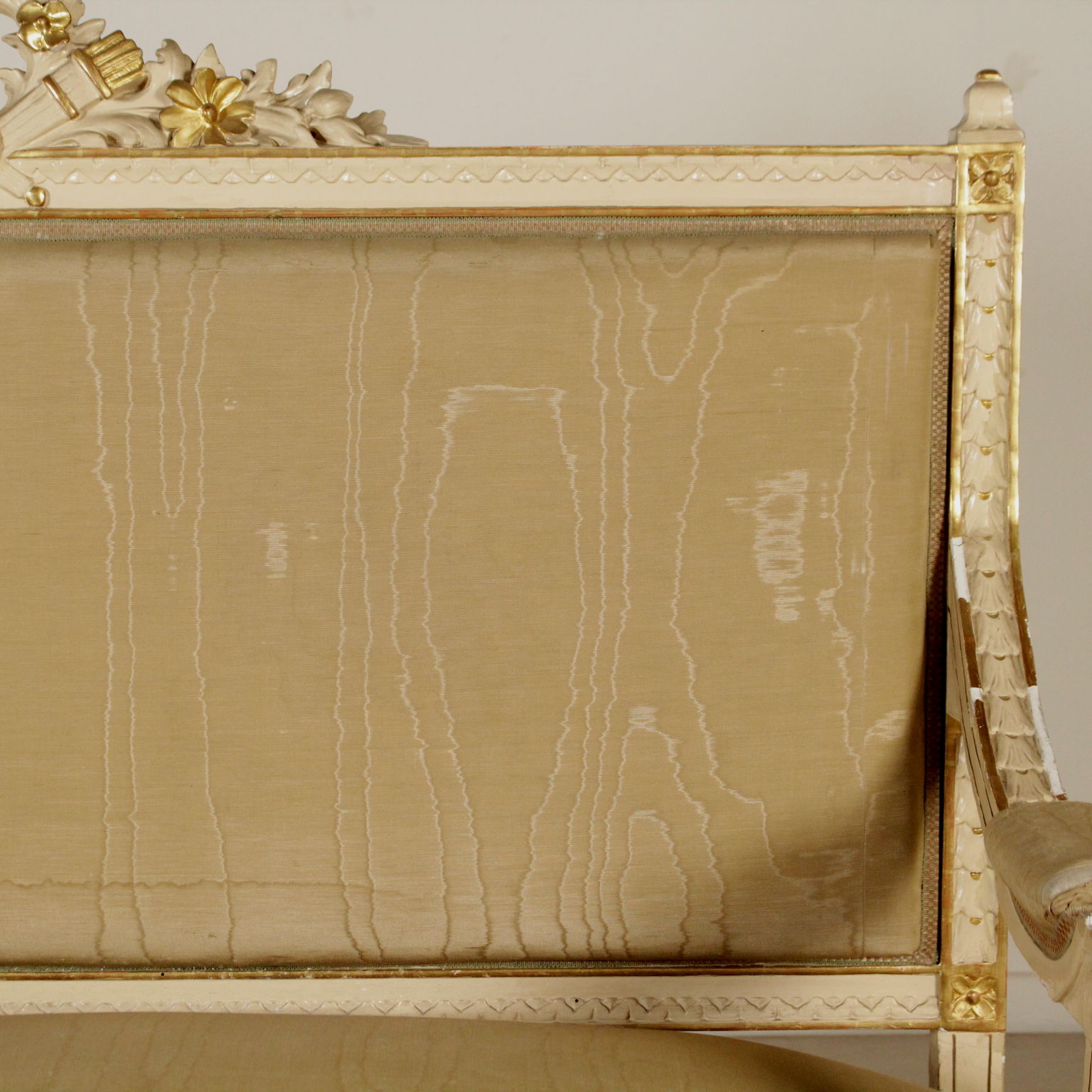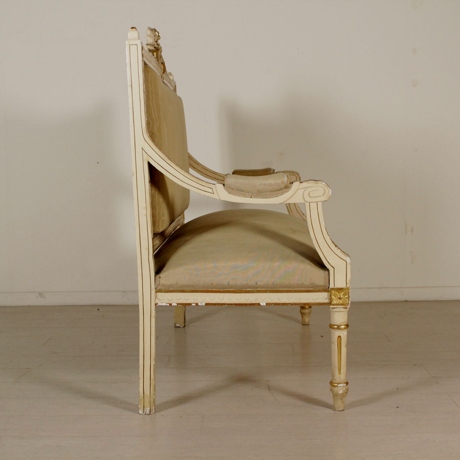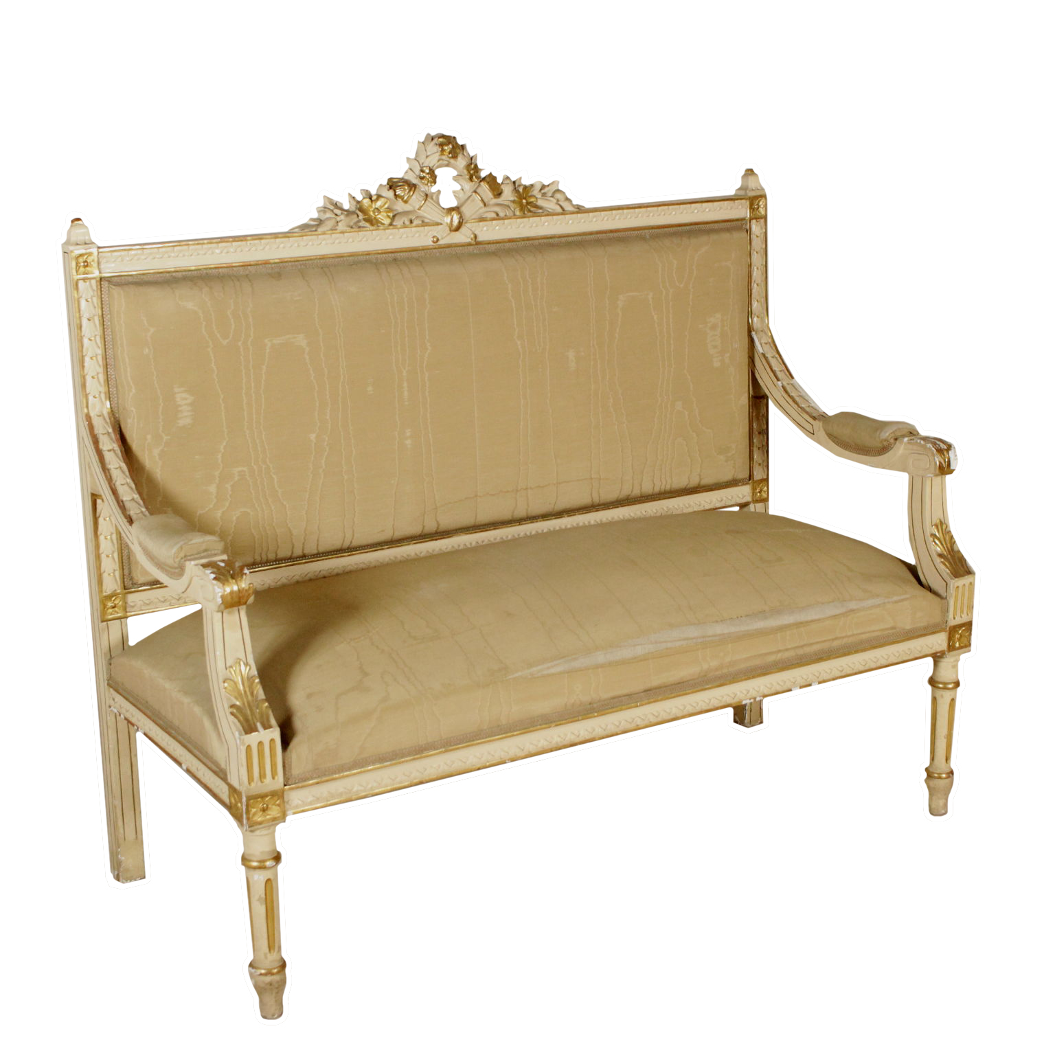 Sofa im Neoklassizistischen stil, fein geschnitzt. Sitz und rückenlehne gepolstert. Lackiert und vergoldet.