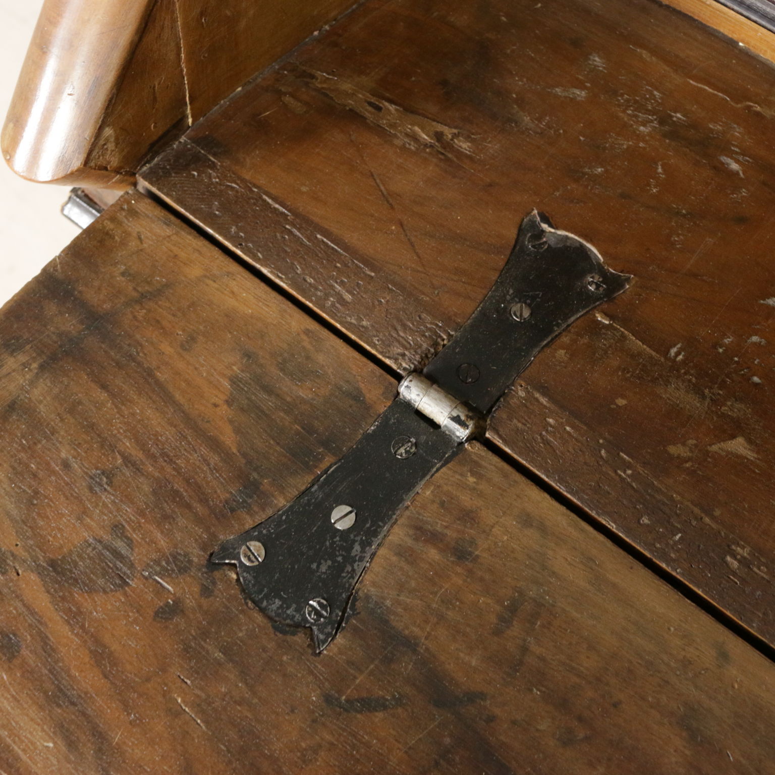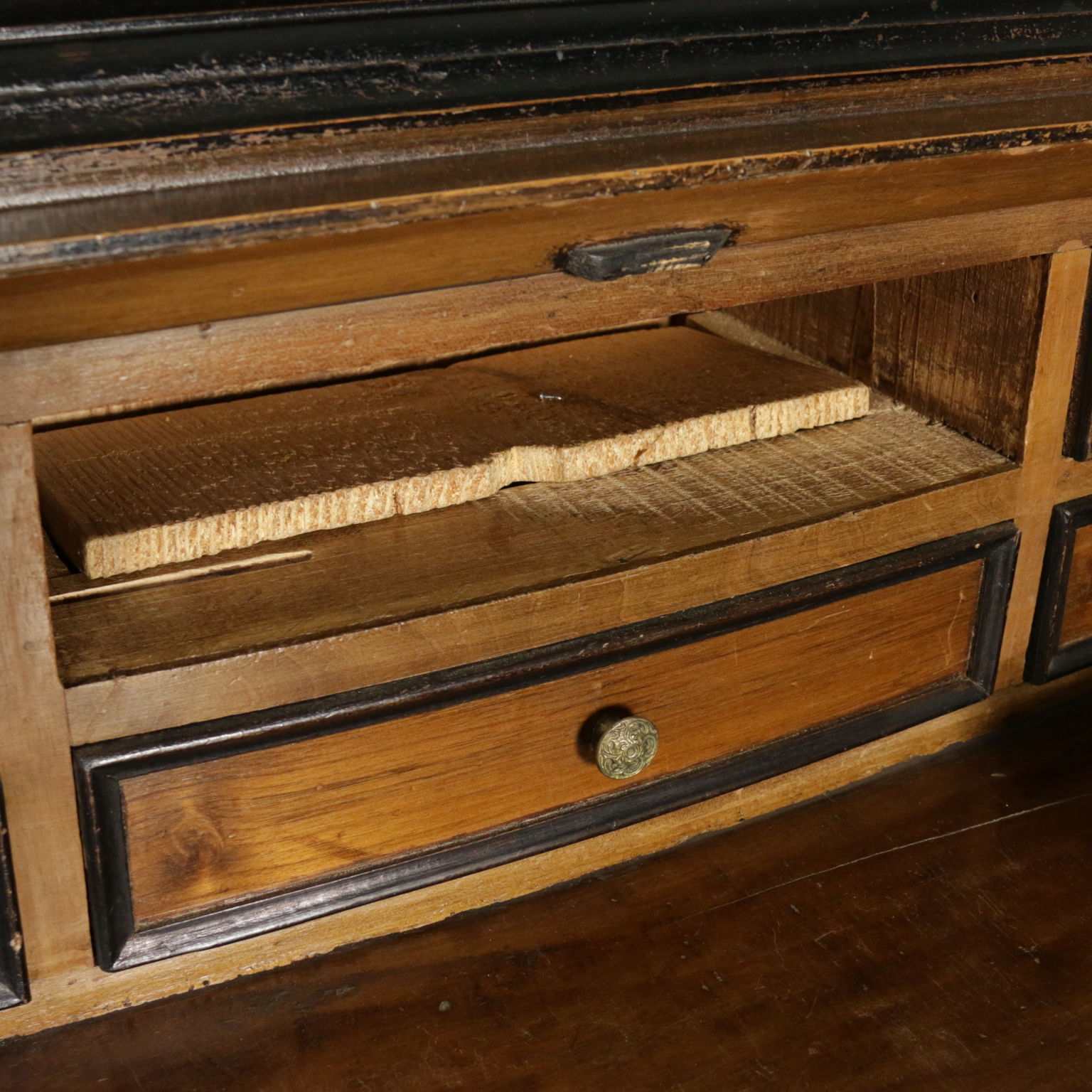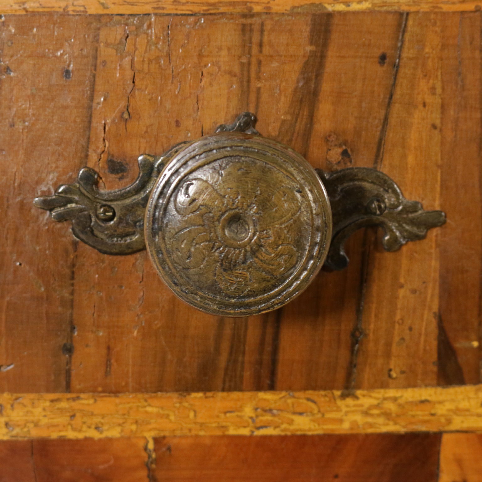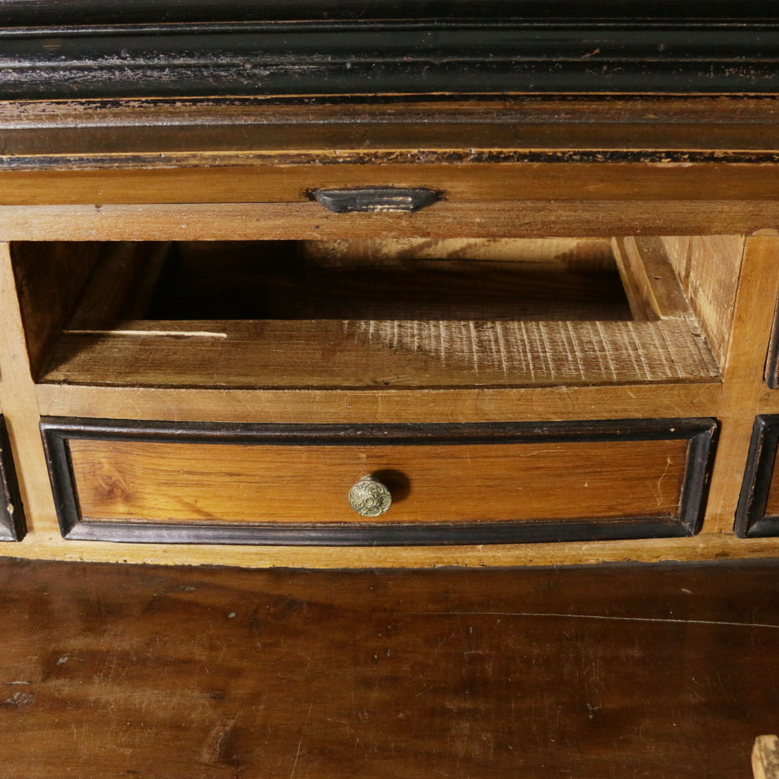 Bewegung auf der vorderseite, hat drei schubladen und eine klappe. Innerhalb von sechs cassettini. Aufkantung an der urne mit plan aufklappbar, rahmen ebanizzate und intarsien in ahorn. Aufrichtig fuß zu locken ebanizzati. Zusammengebaut mit altem material.