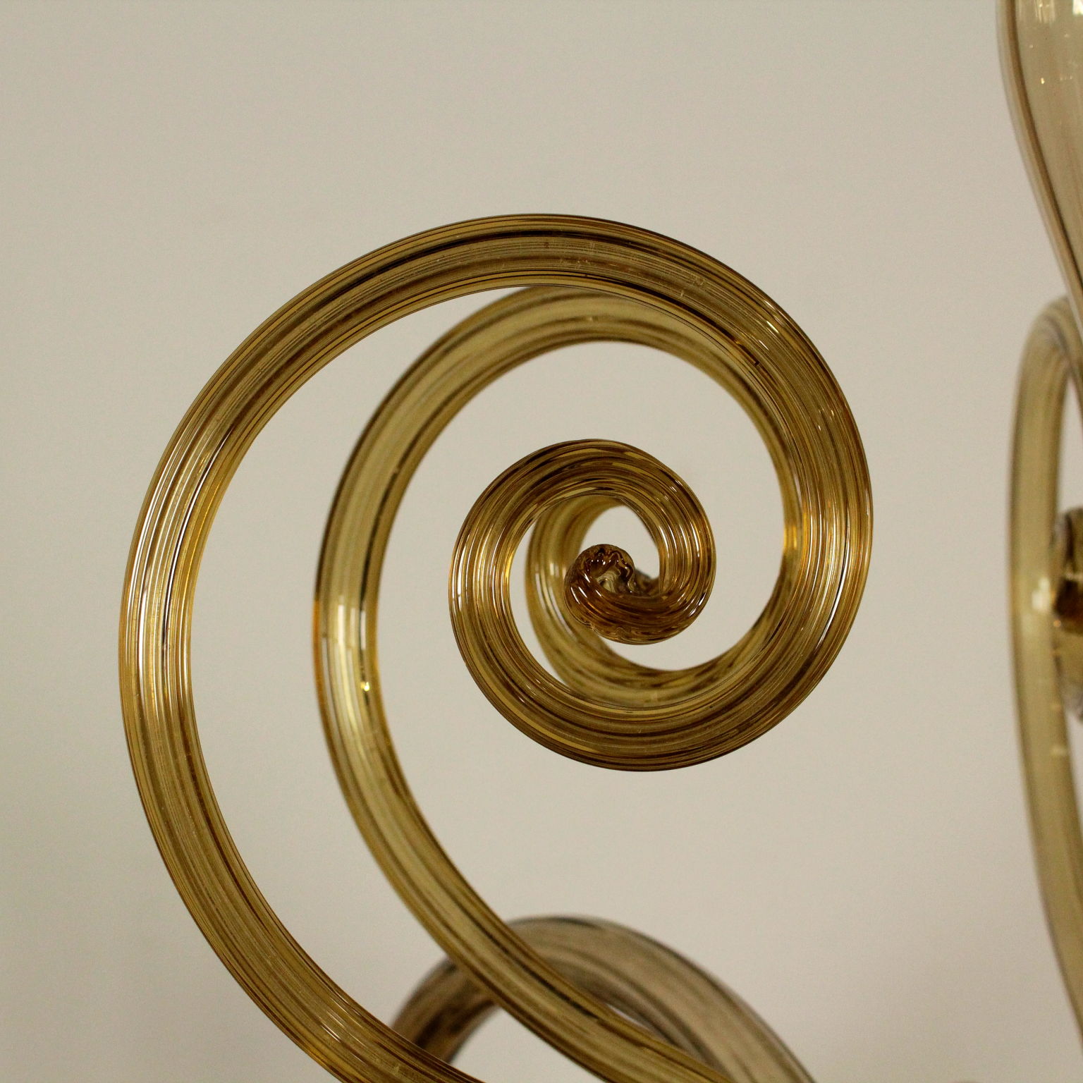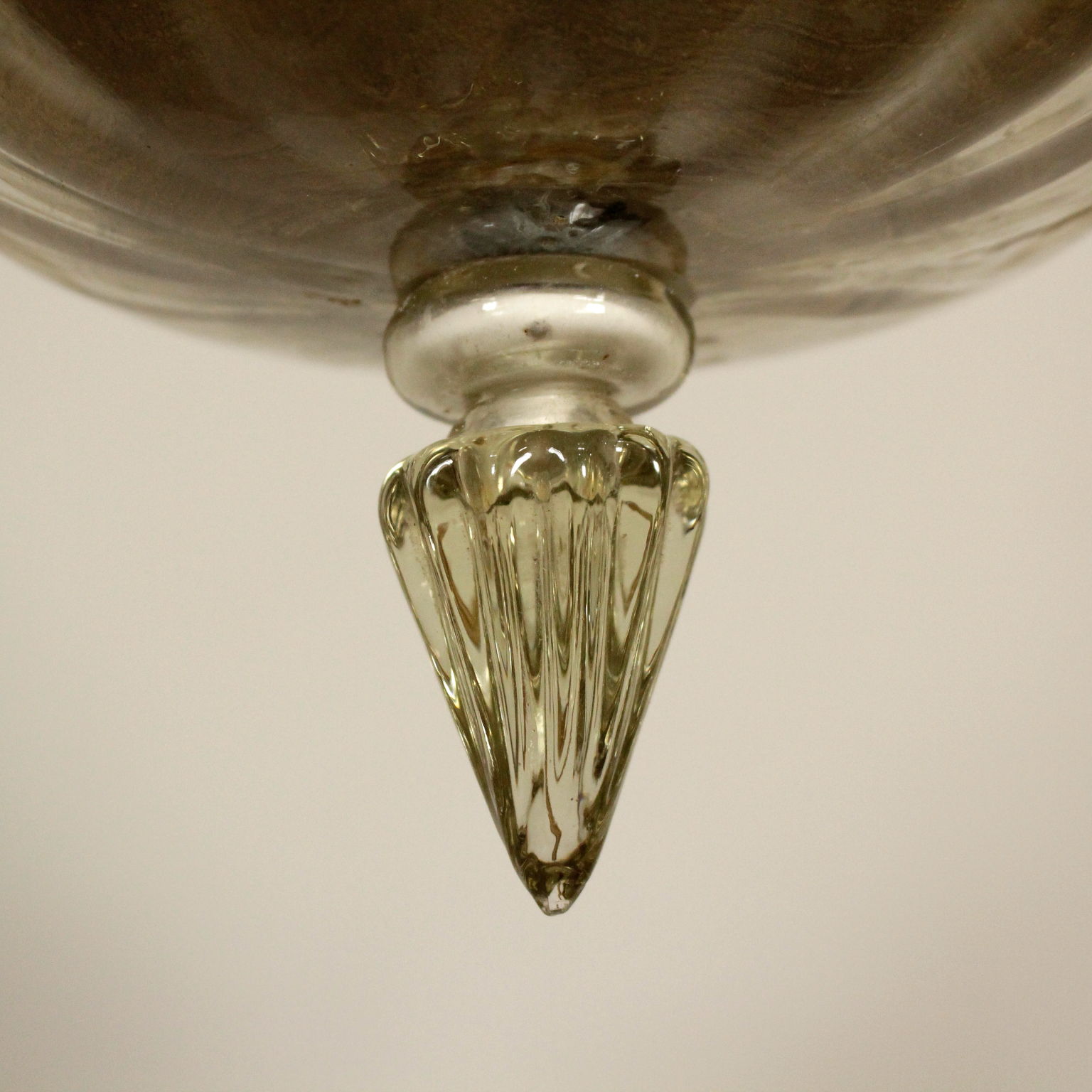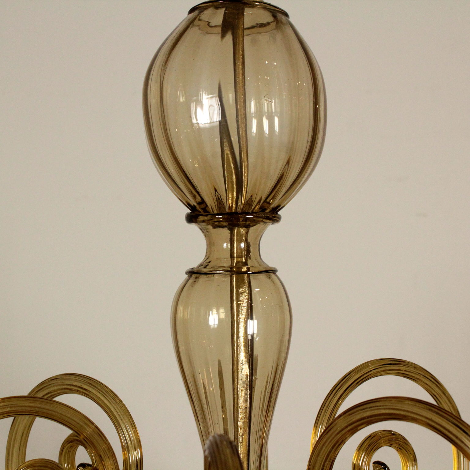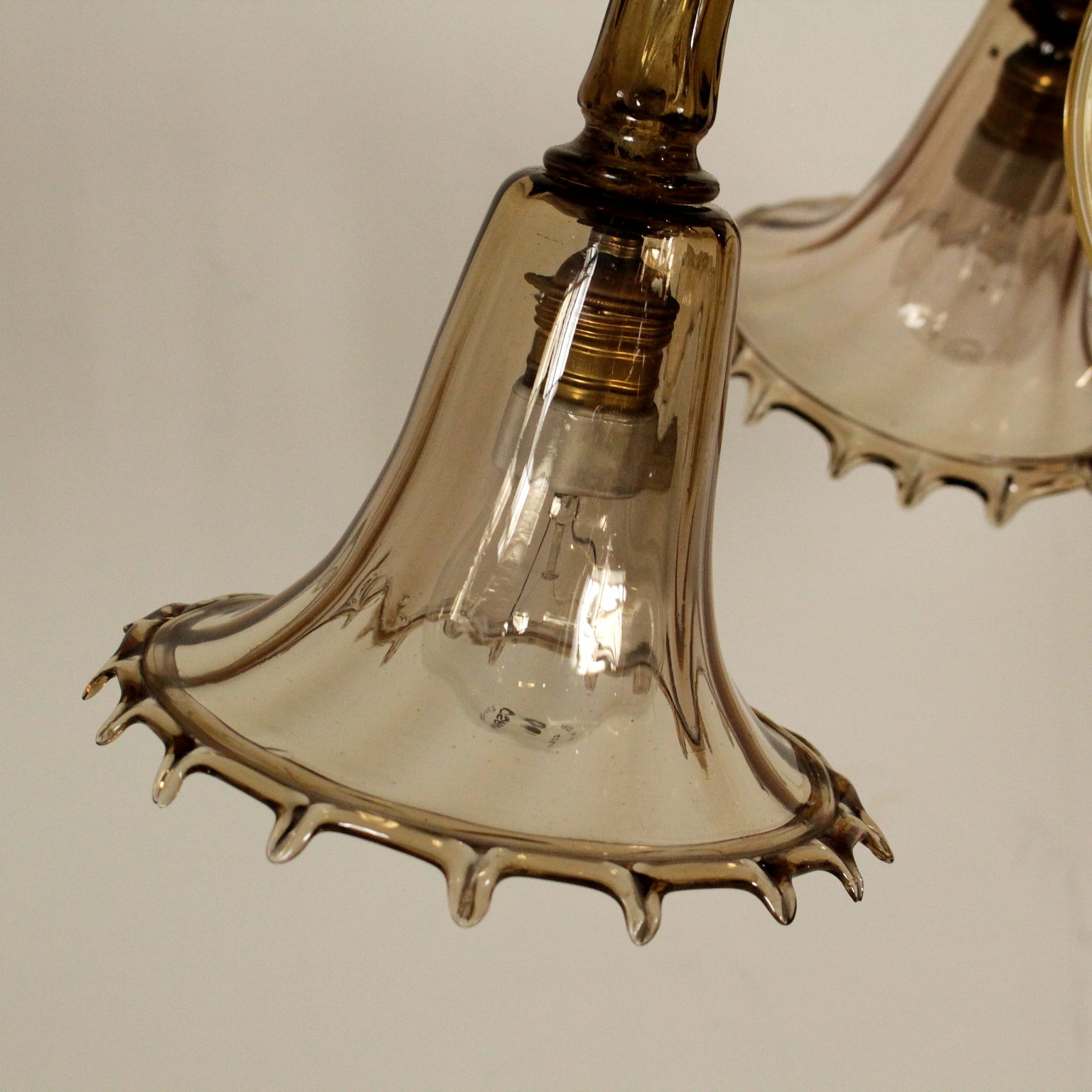 Elegante kronleuchter mit sechs armen, mit schalen aus glas gearbeitet und glas in der seelsorge. Rielettrificato.