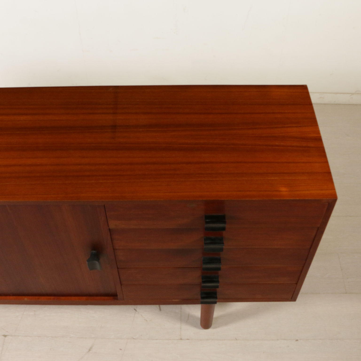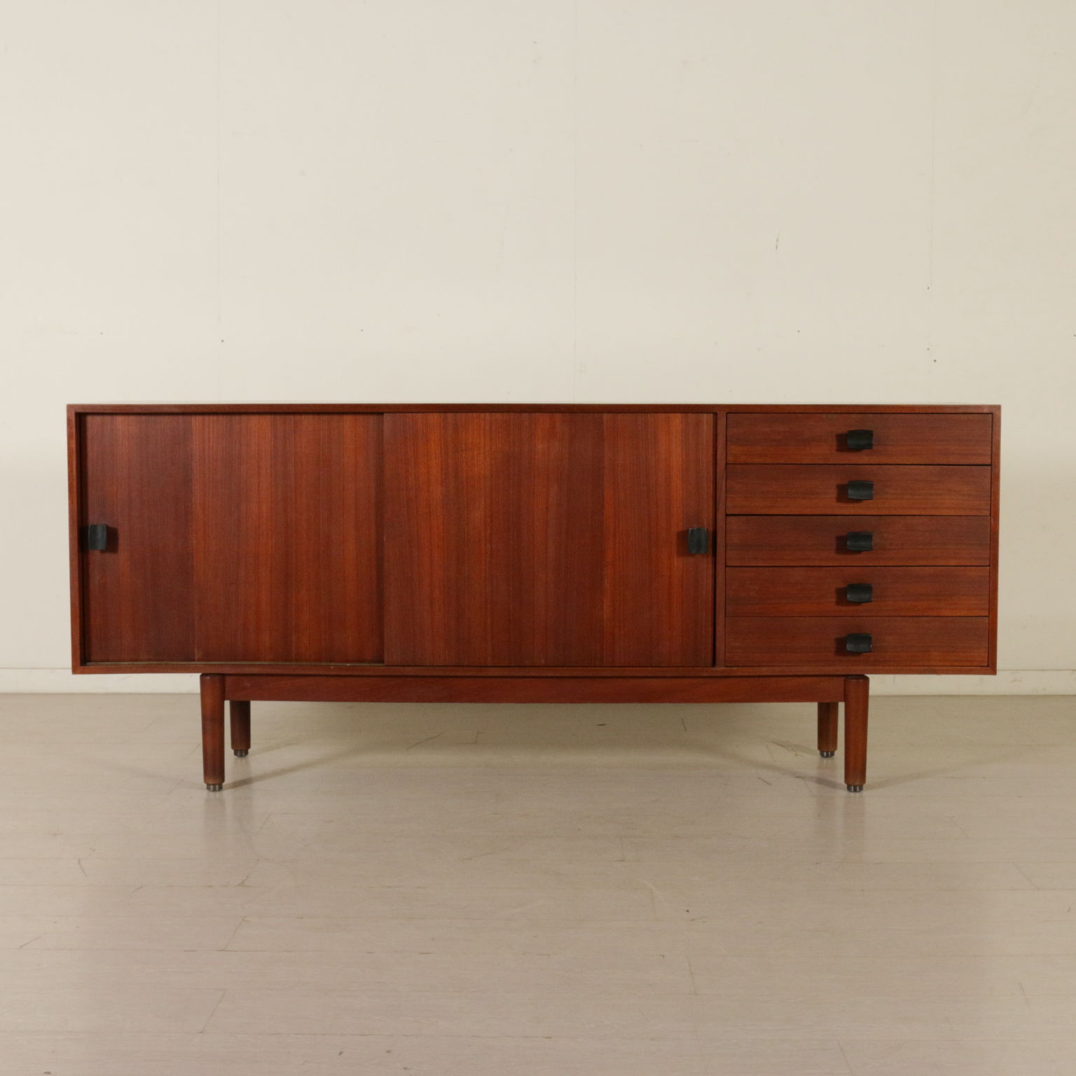 Sideboard mit schiebetüren und schubladen; holz, furniert in teakholz.