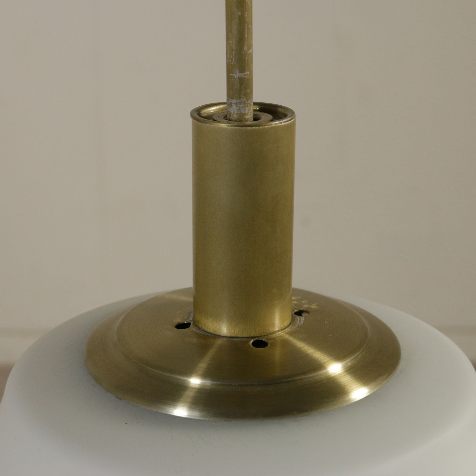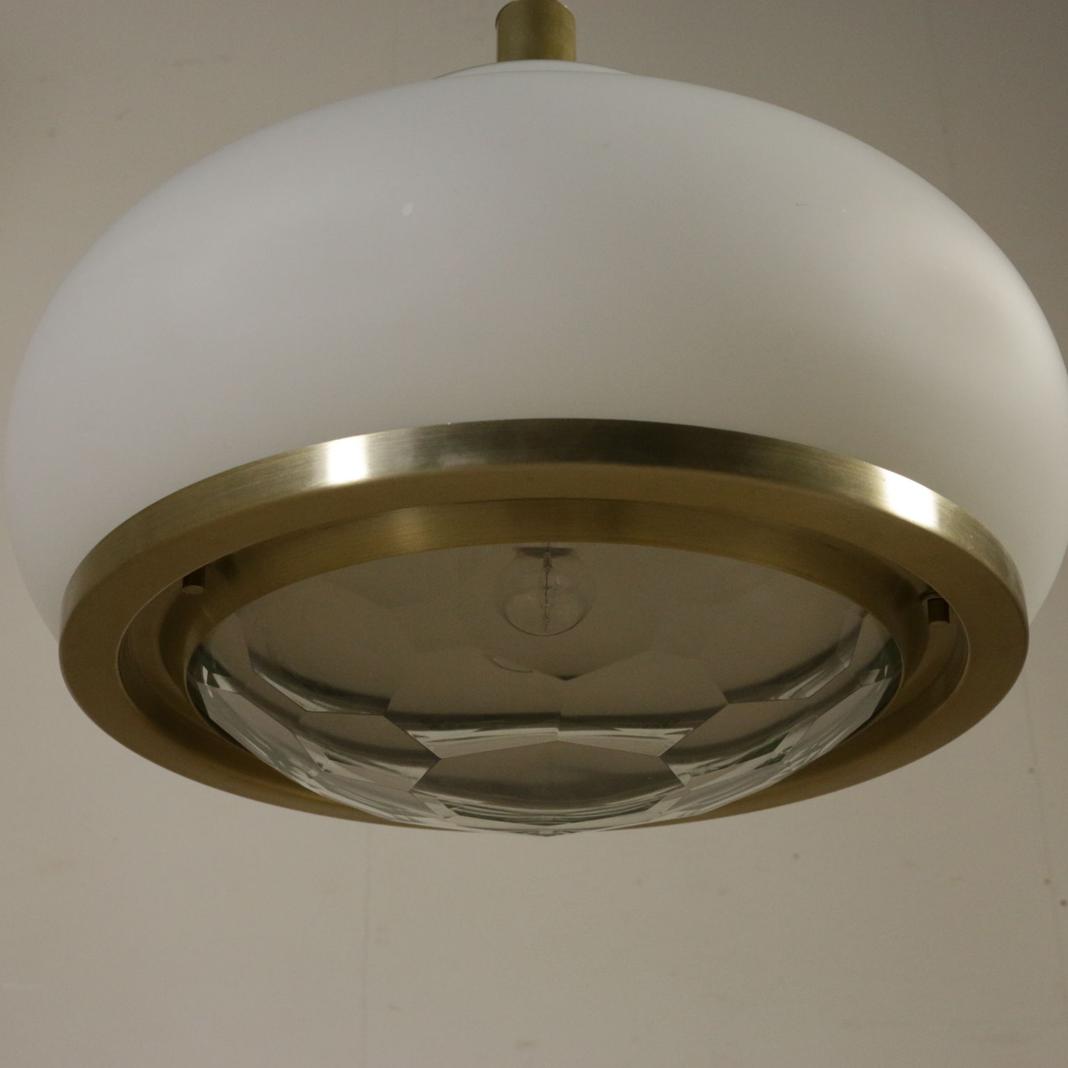 Lampe an der decke; glas, messing.
