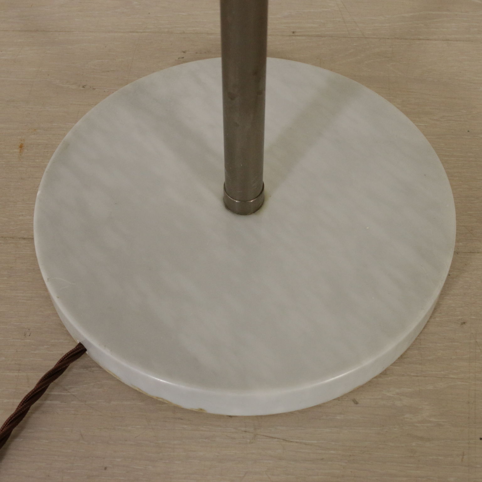 Stehleuchte, metall und plexiglas, sockel aus marmor.