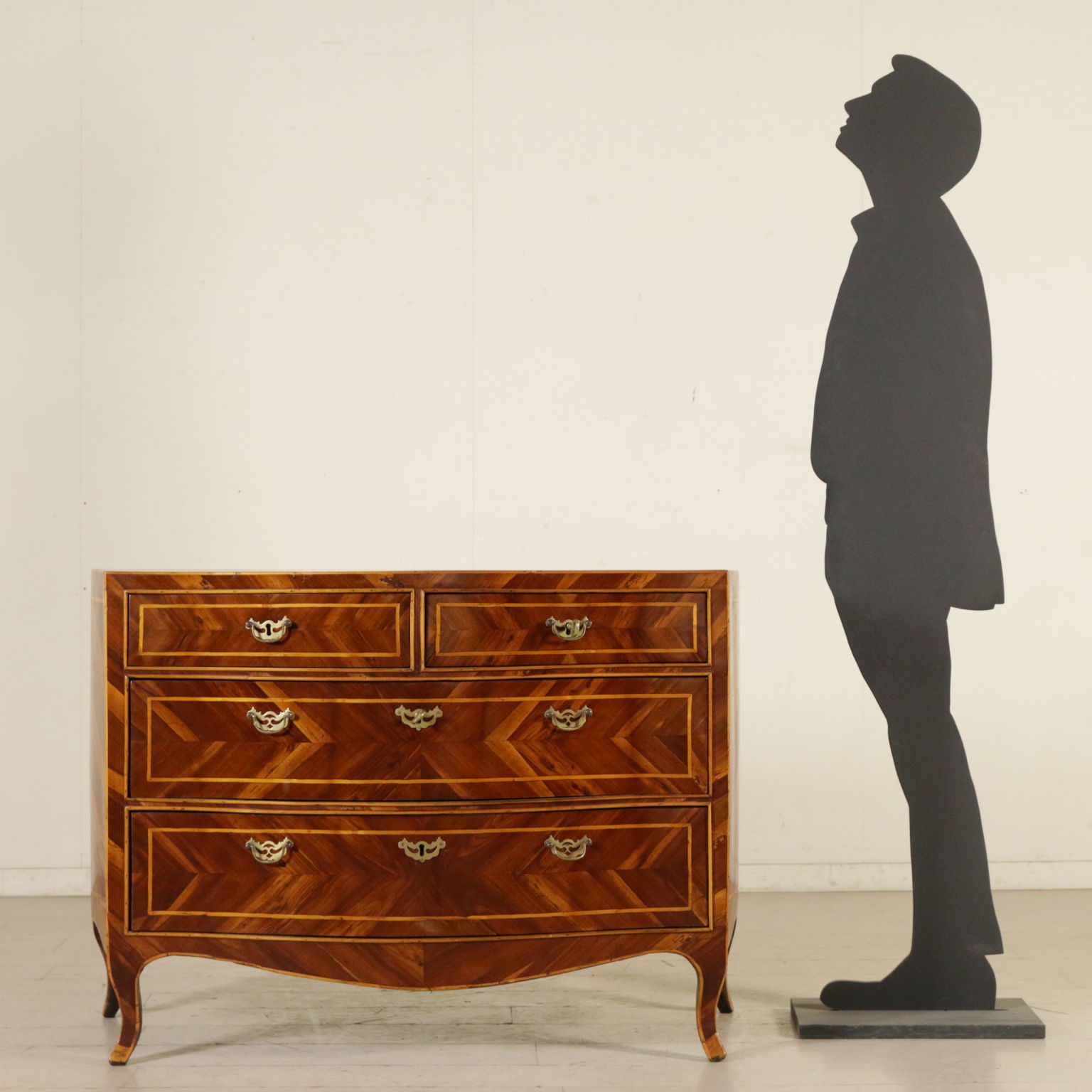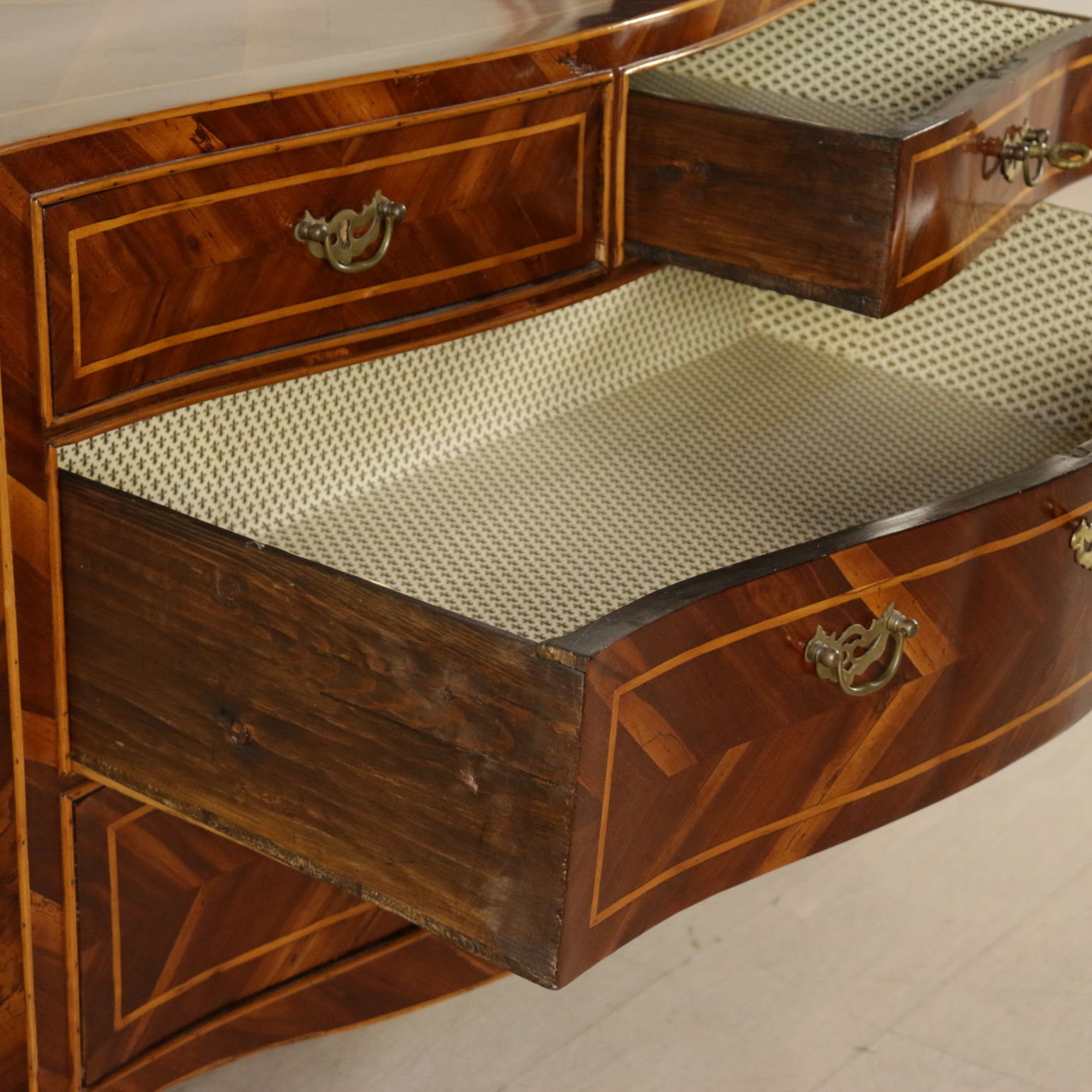 Elegante kommode aus der stirn und hüften bewegt; sie hat zwei schubladen und zwei ausgerichtet unterplan ein. Lastronato in dornbusch mit einem eleganten spiel von quadripartiture. Profile und gewinde ahorn. Fuß grembiale bewegt.