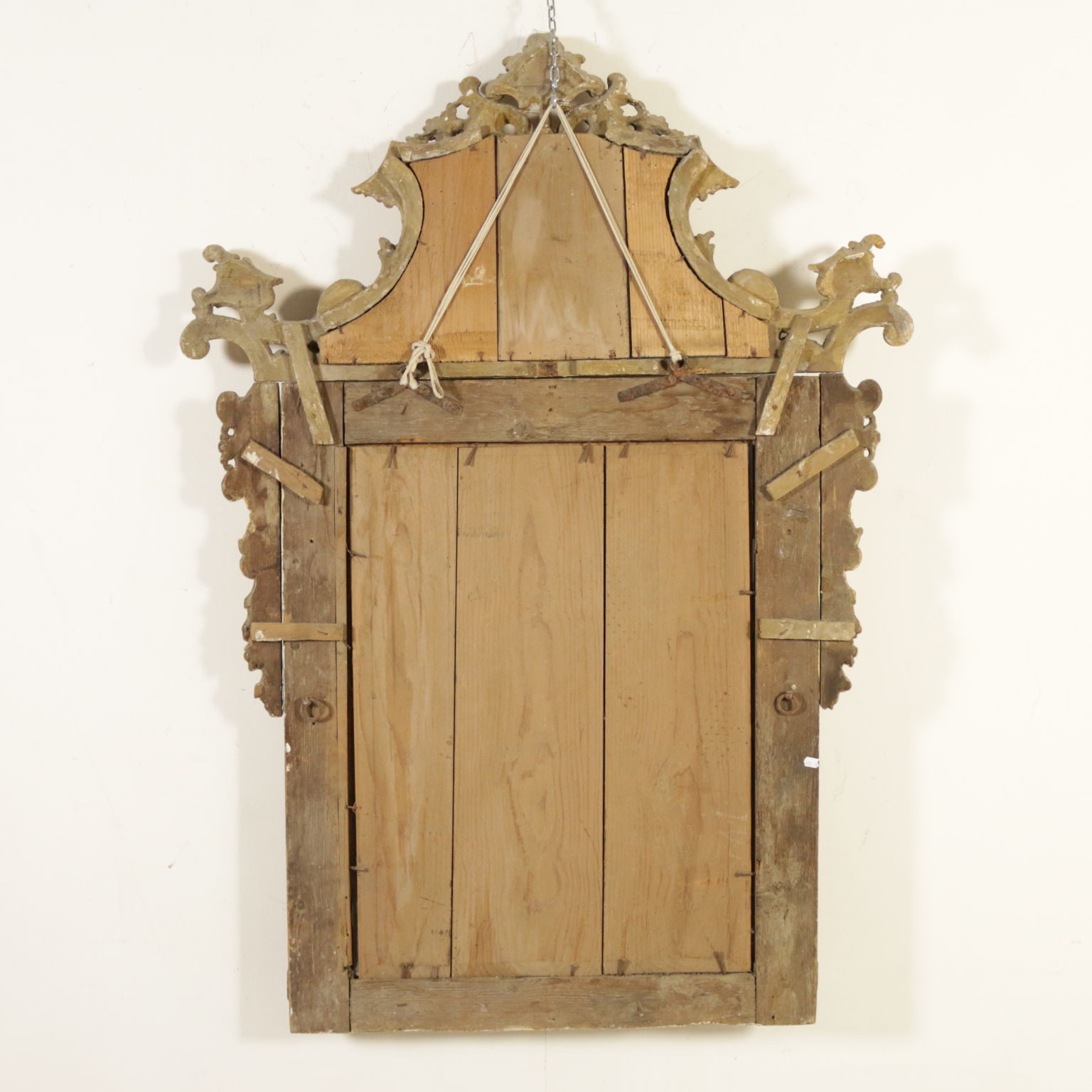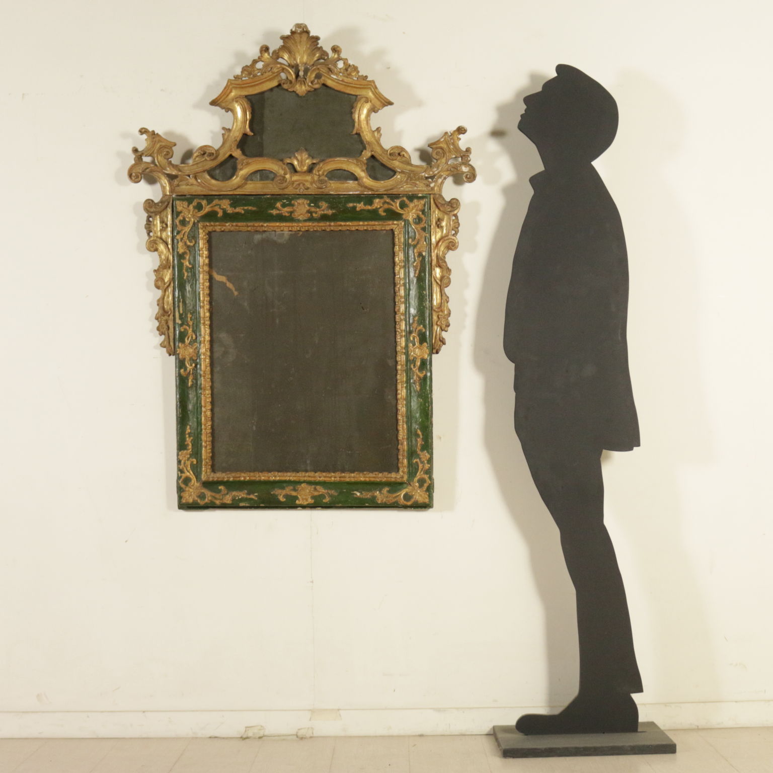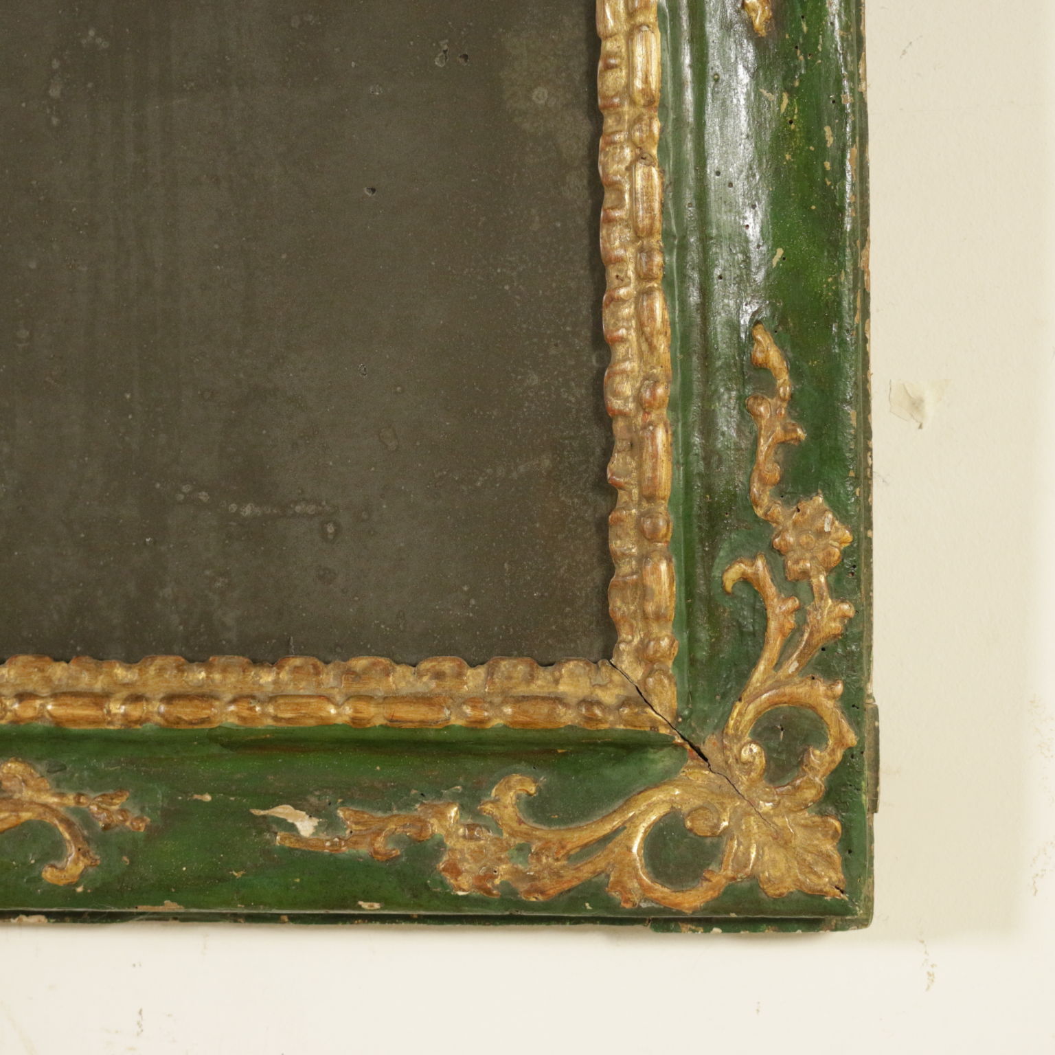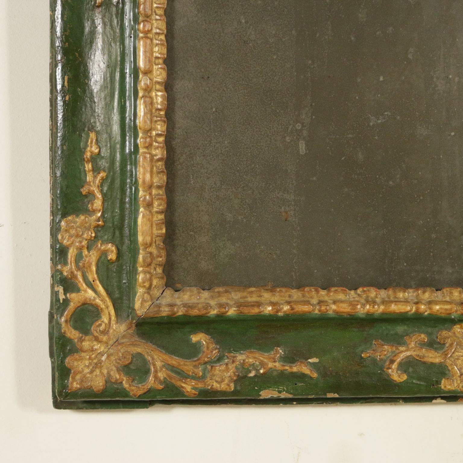 Raffinierte spiegel vom band lackiert. Bewältigung und seitlichen voluten geschnitzt mit voluten und spiegel.