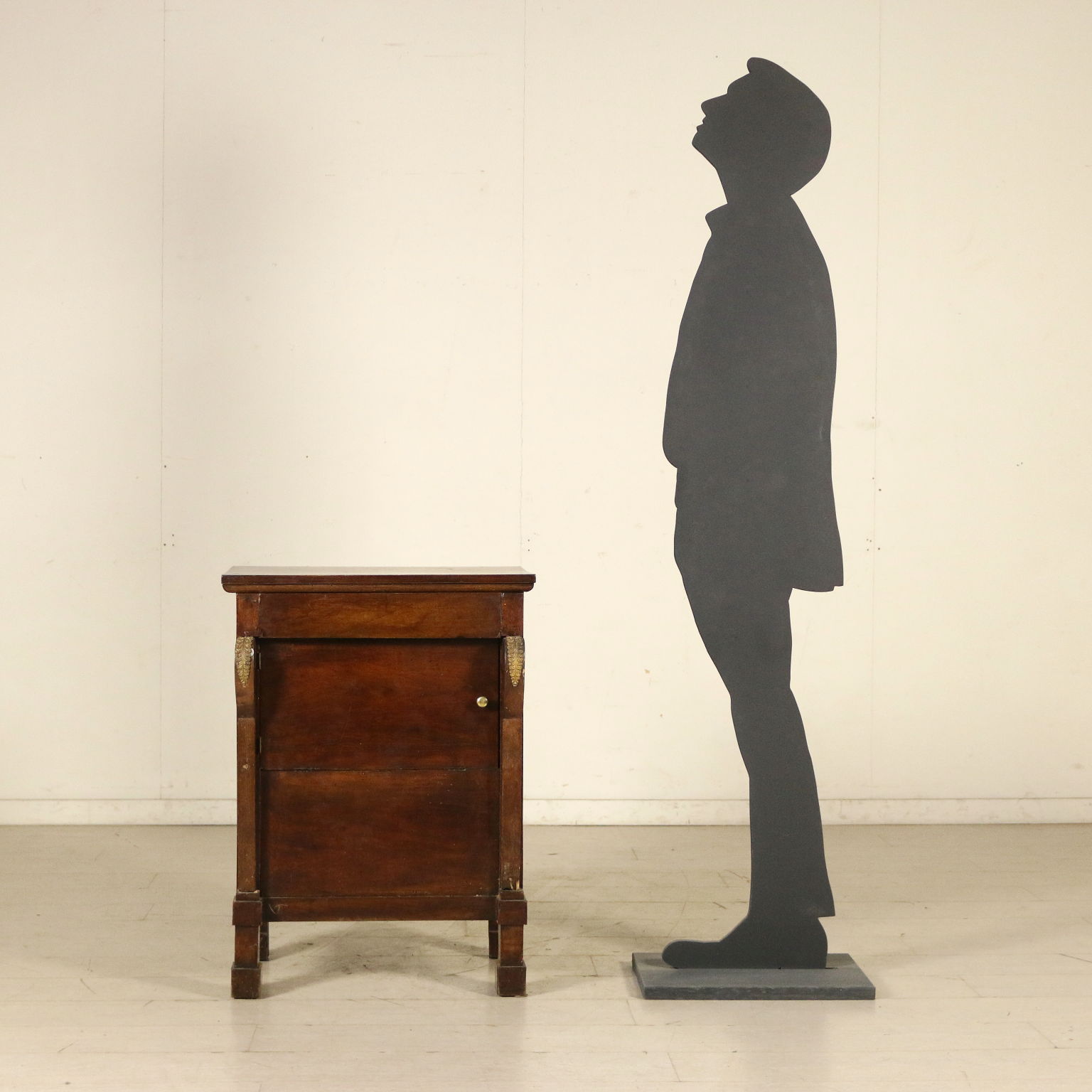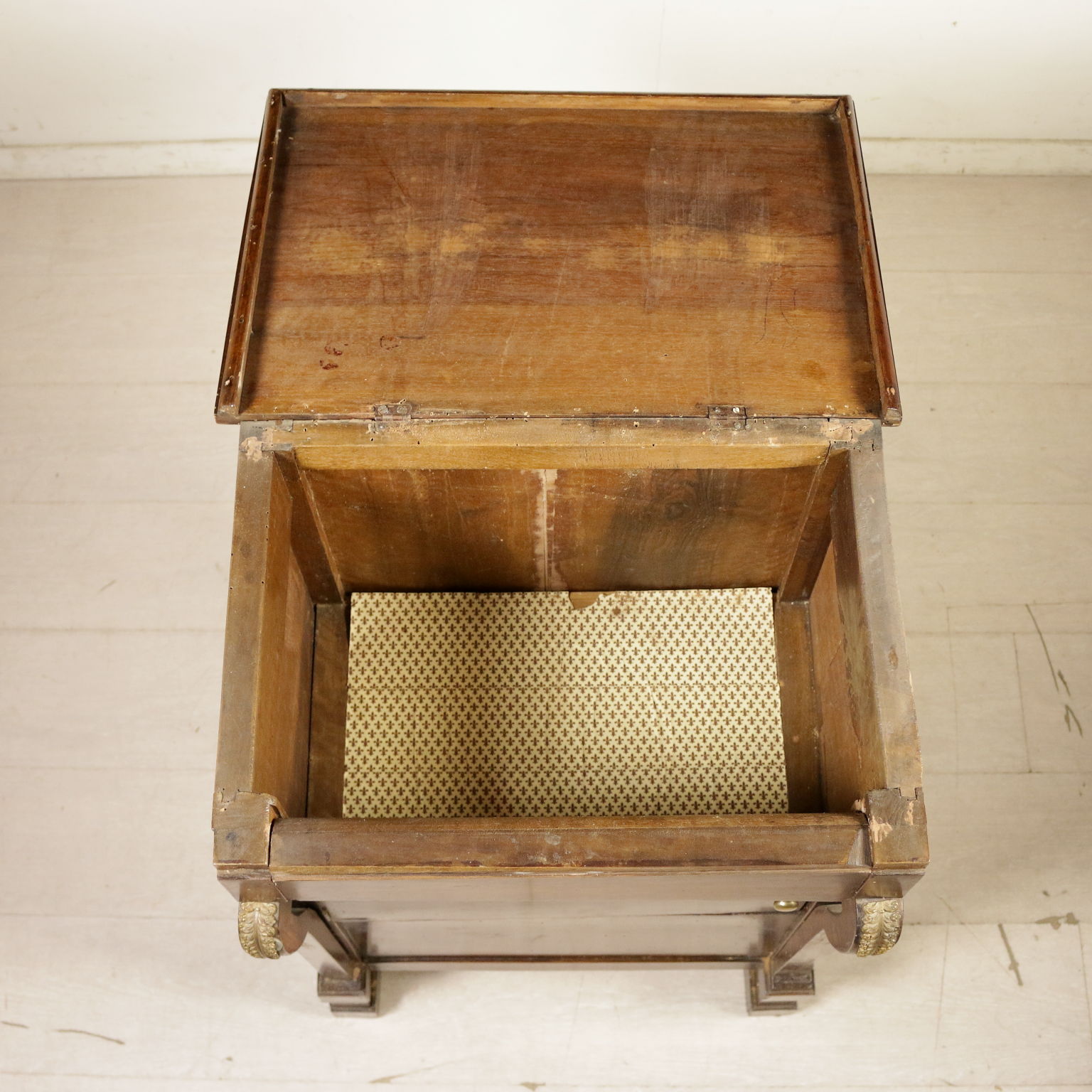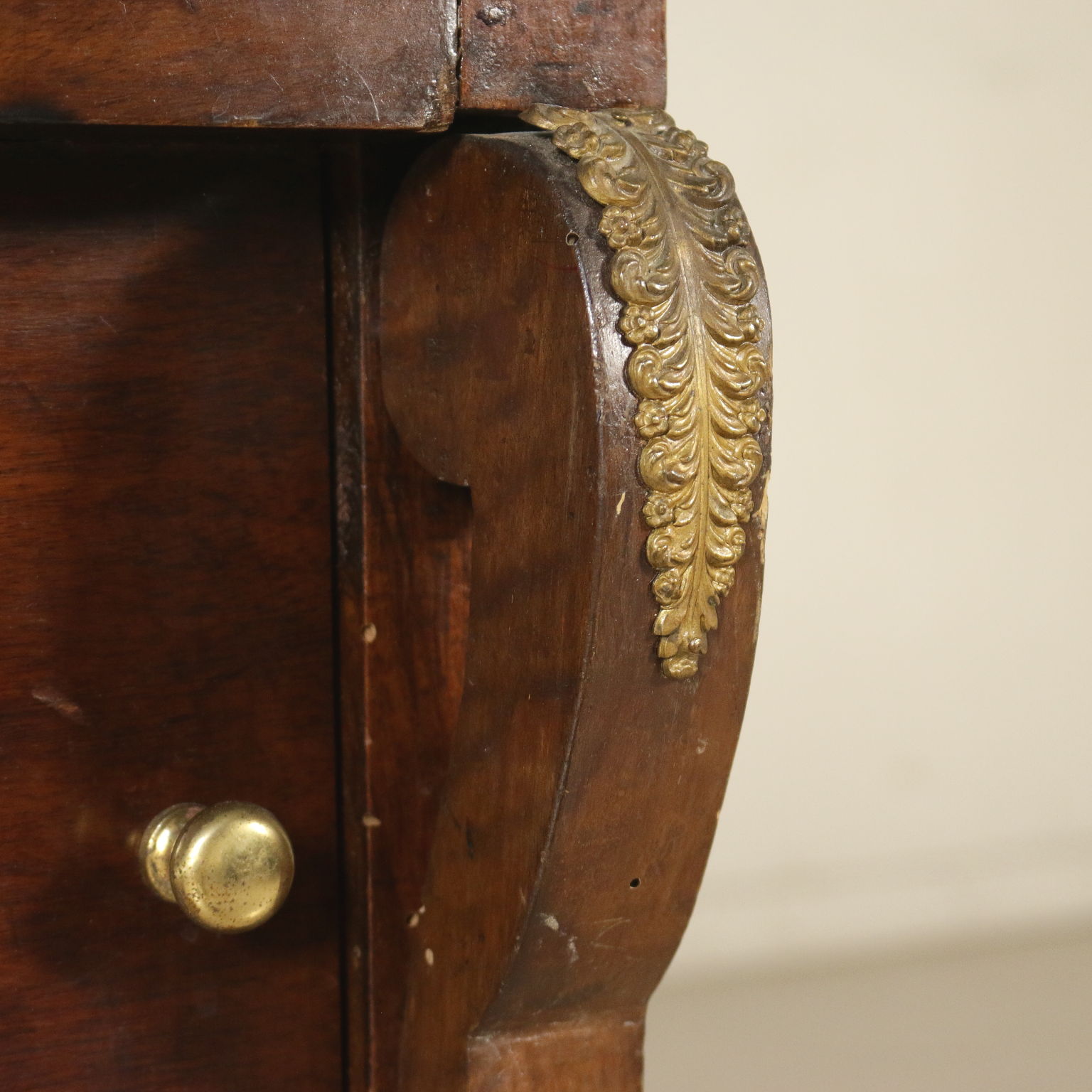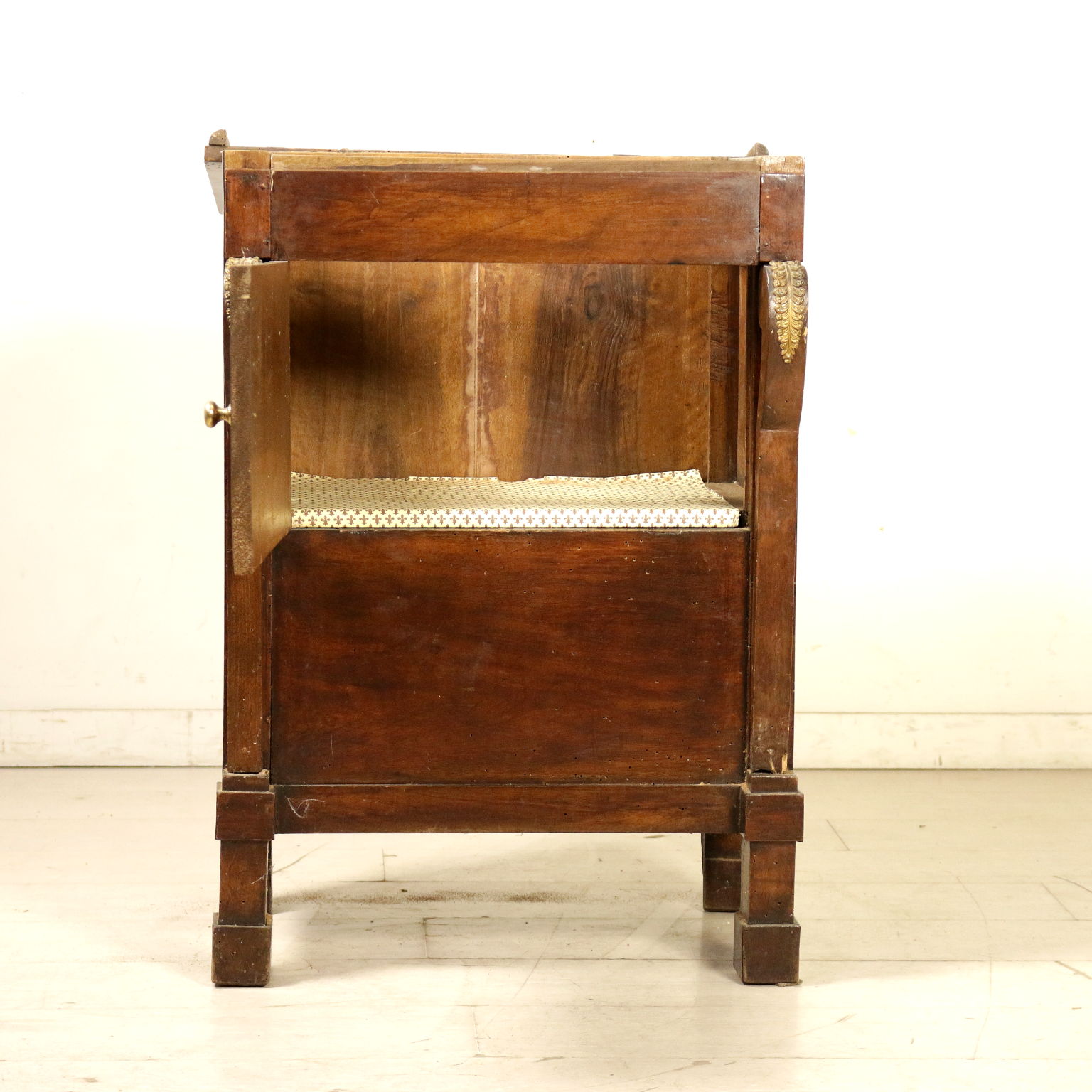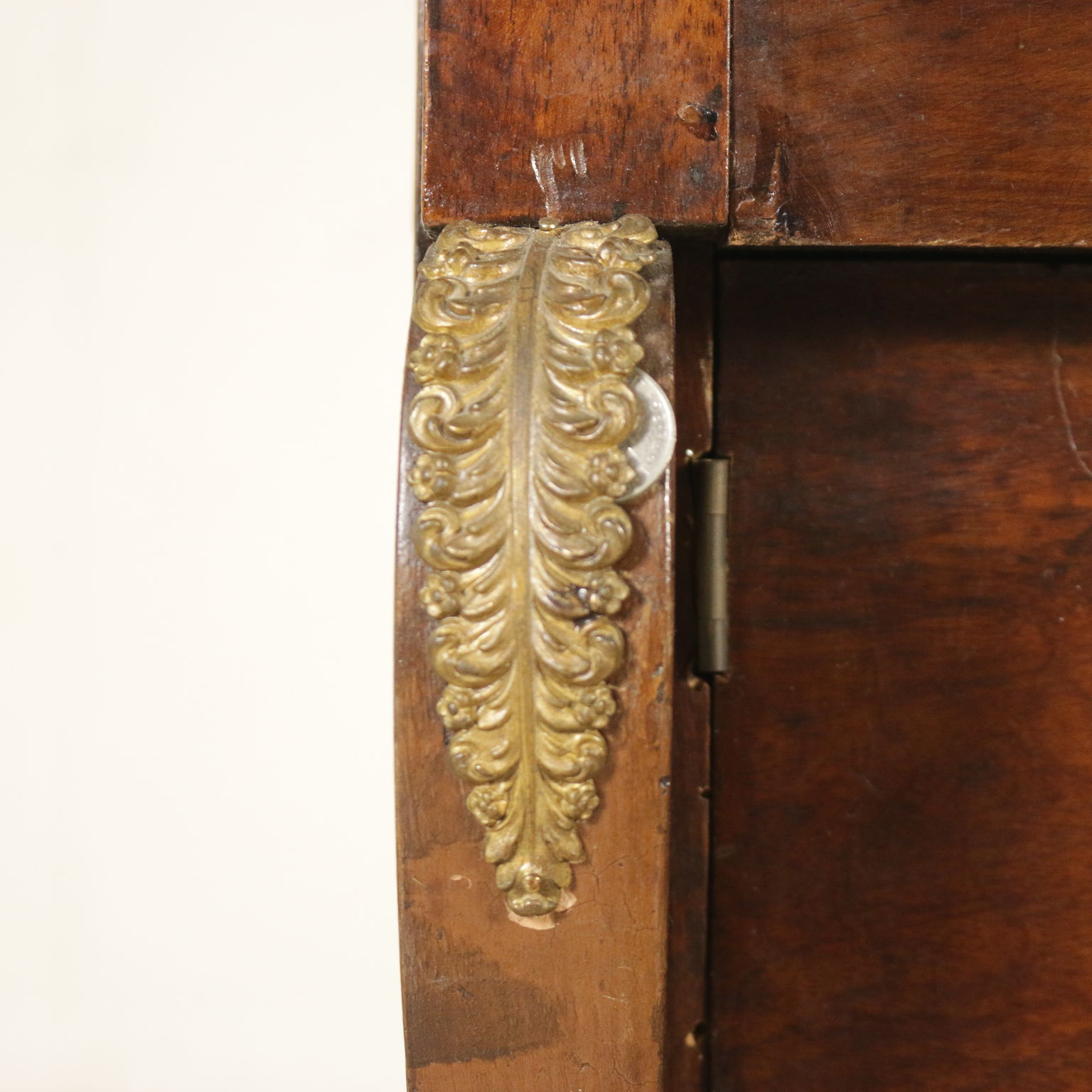 In der quelle bequem, hat eine tür und stock aufklappbare klappen. Pfosten mit pilastern und blätter aus messing gefertigt, überhang.