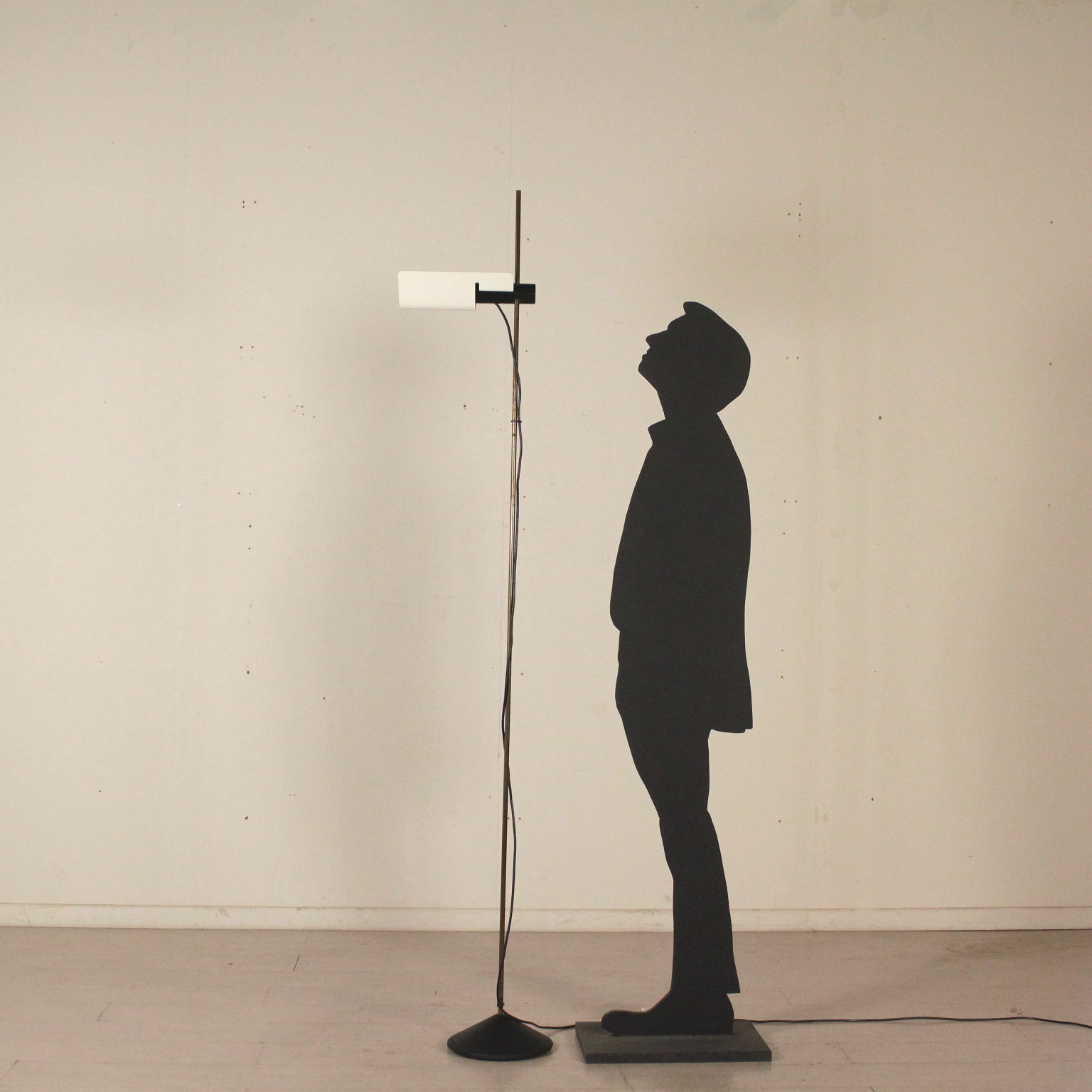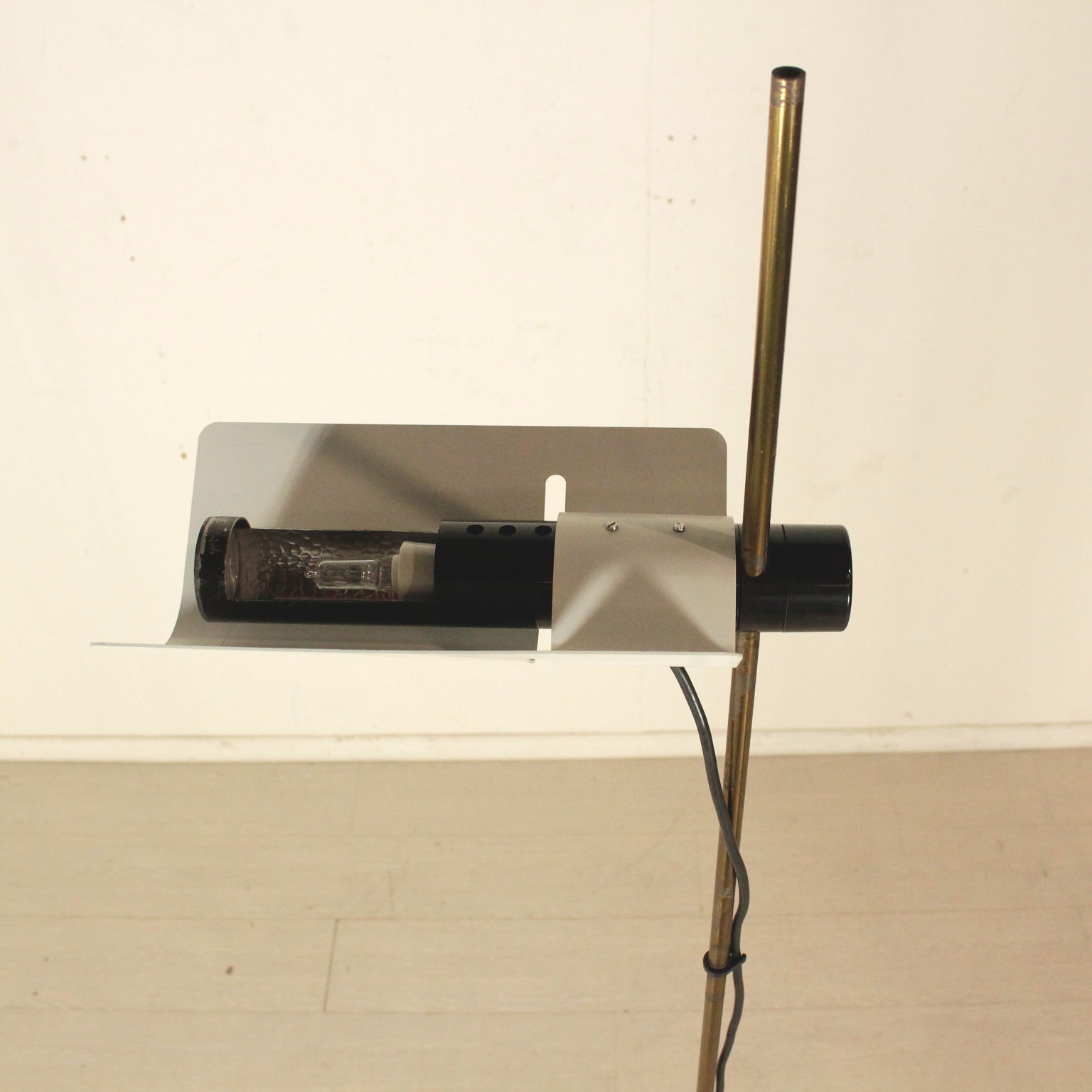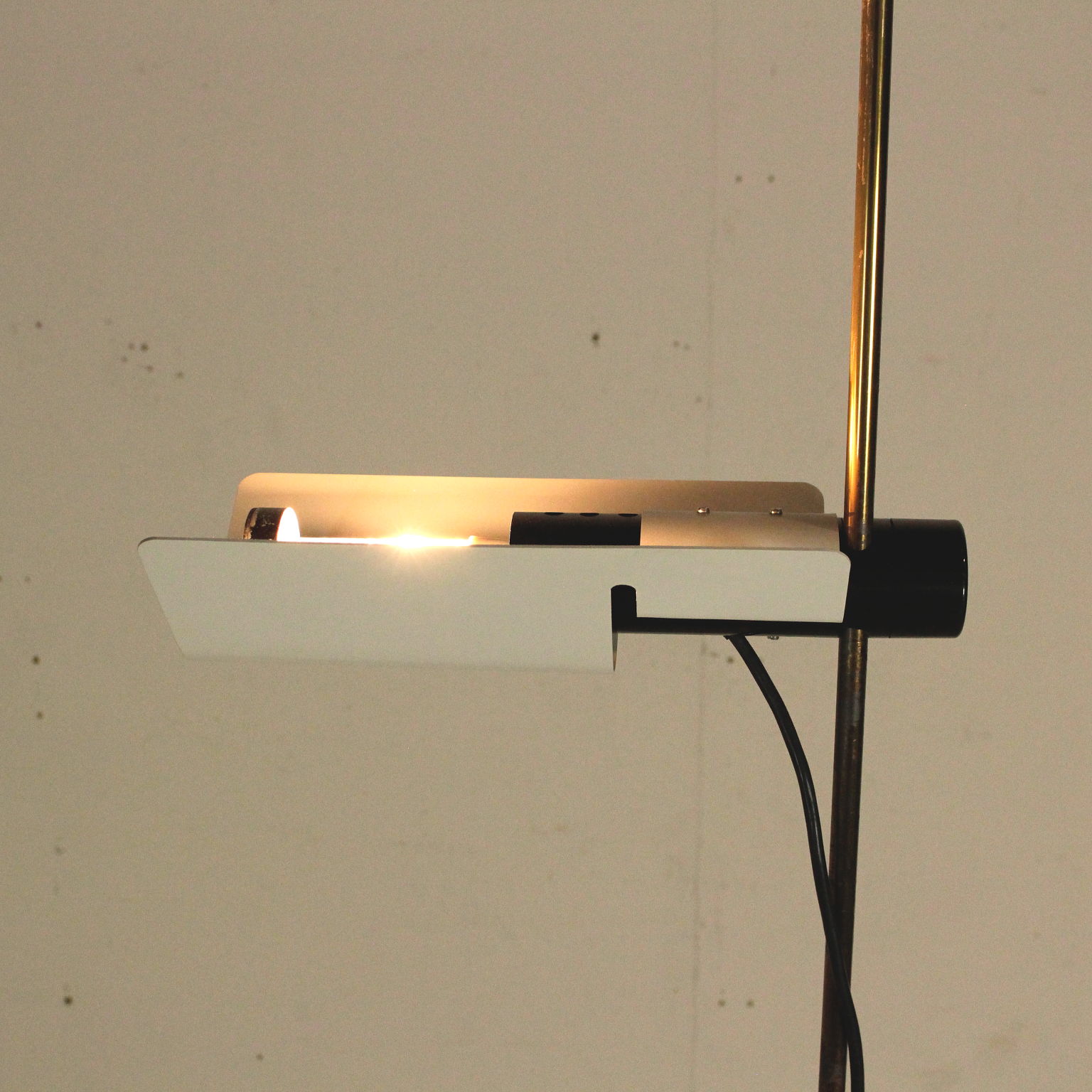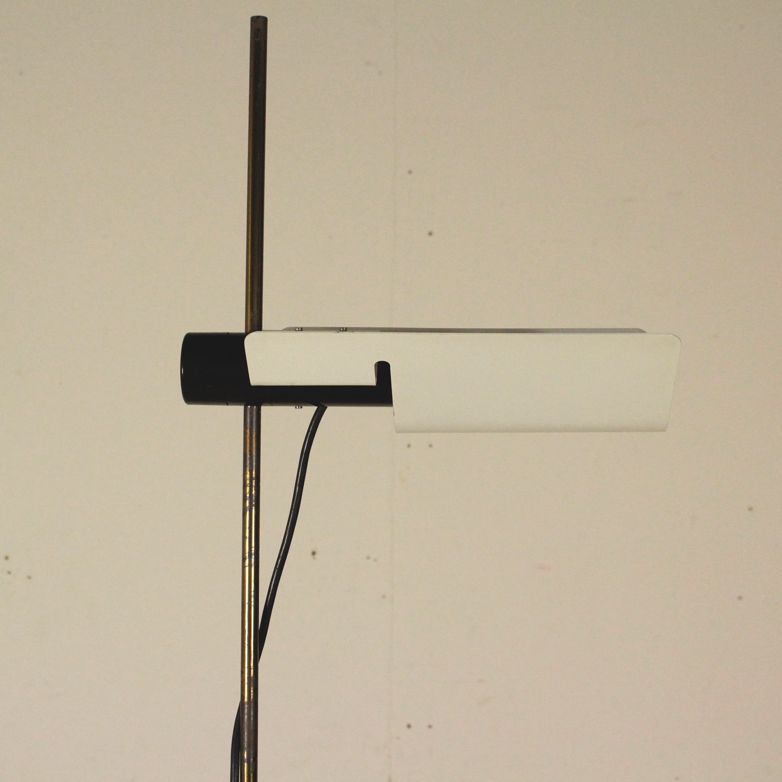 Stehleuchte mit lampe verstellbar in höhe und lautsprecher schwenkbar; messing, aluminium lackiert.