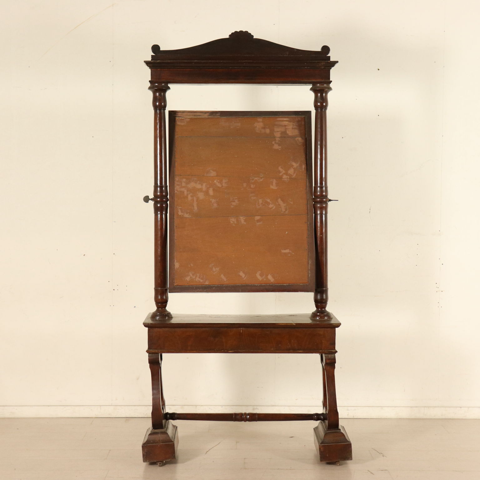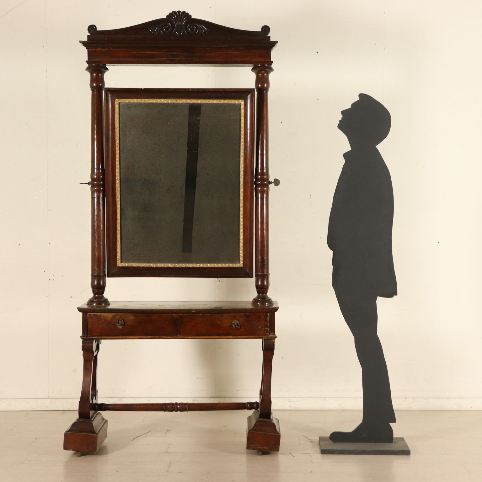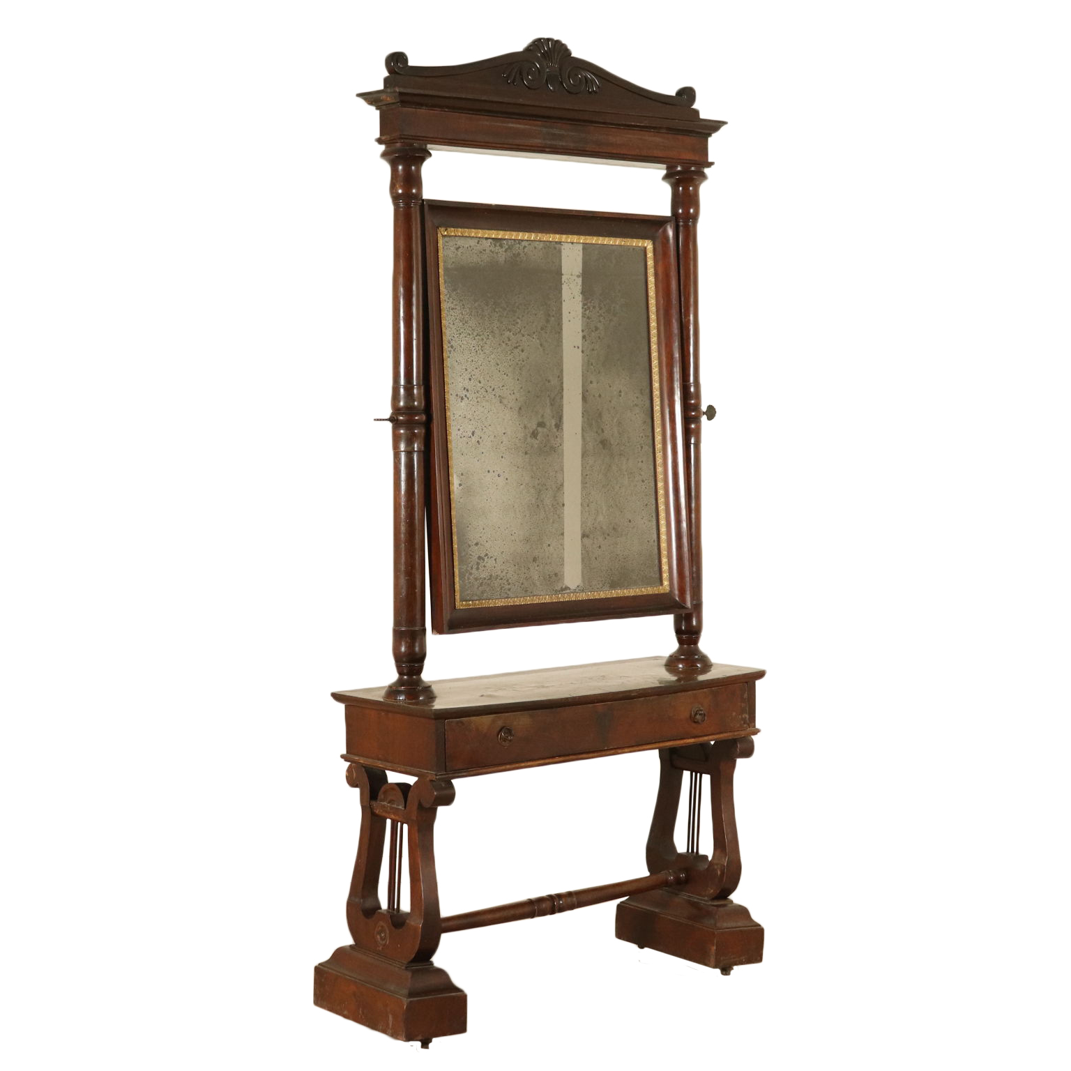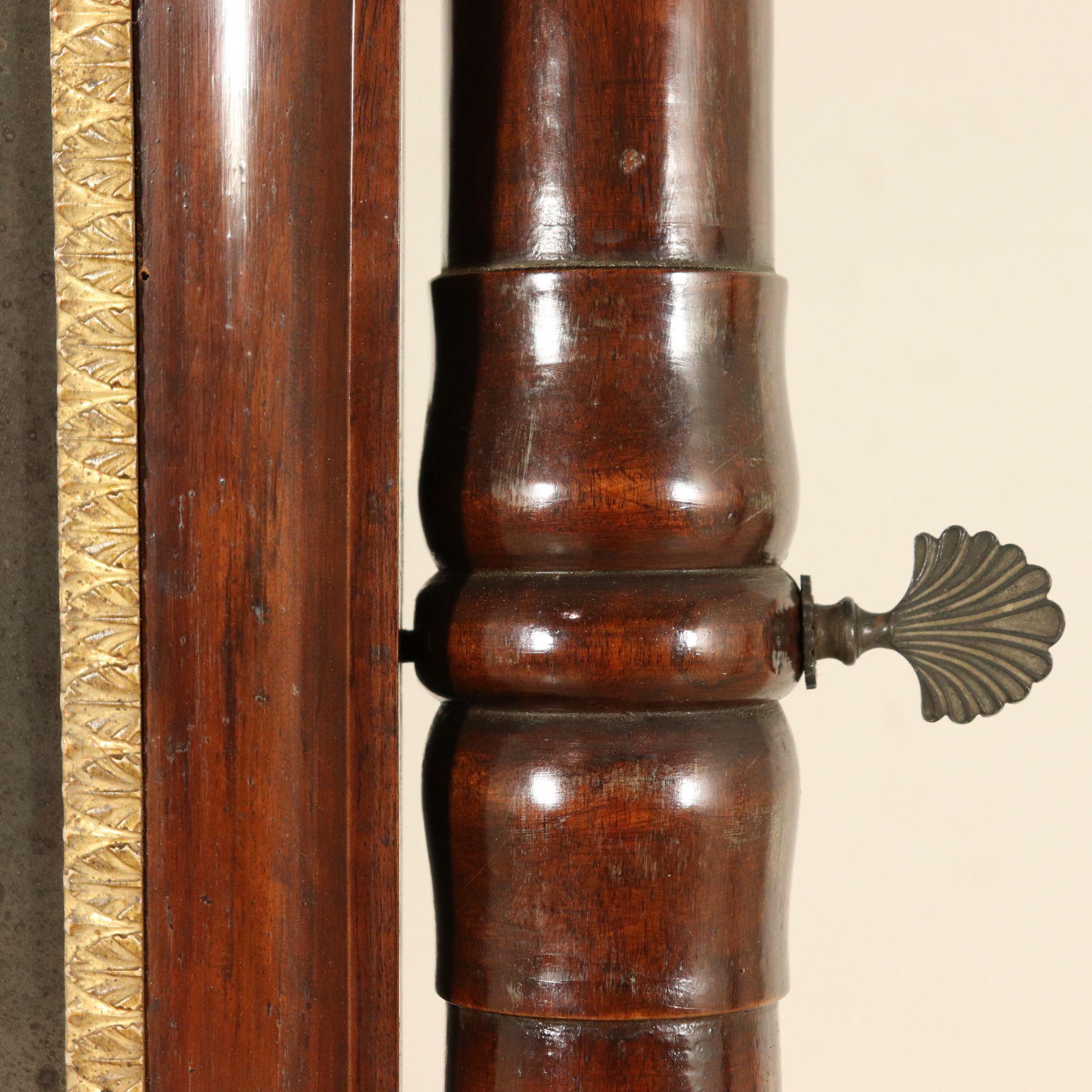 Elegante psyche geraden beinen lira führen von traverse gedreht. Stock mit schublade. Pfosten gedrechselt, mit der bewältigung geschnitzt. Spiegel, hubbett mit goldenen rahmen und geschnitzt.