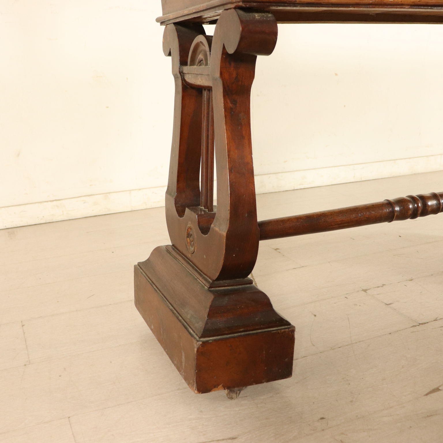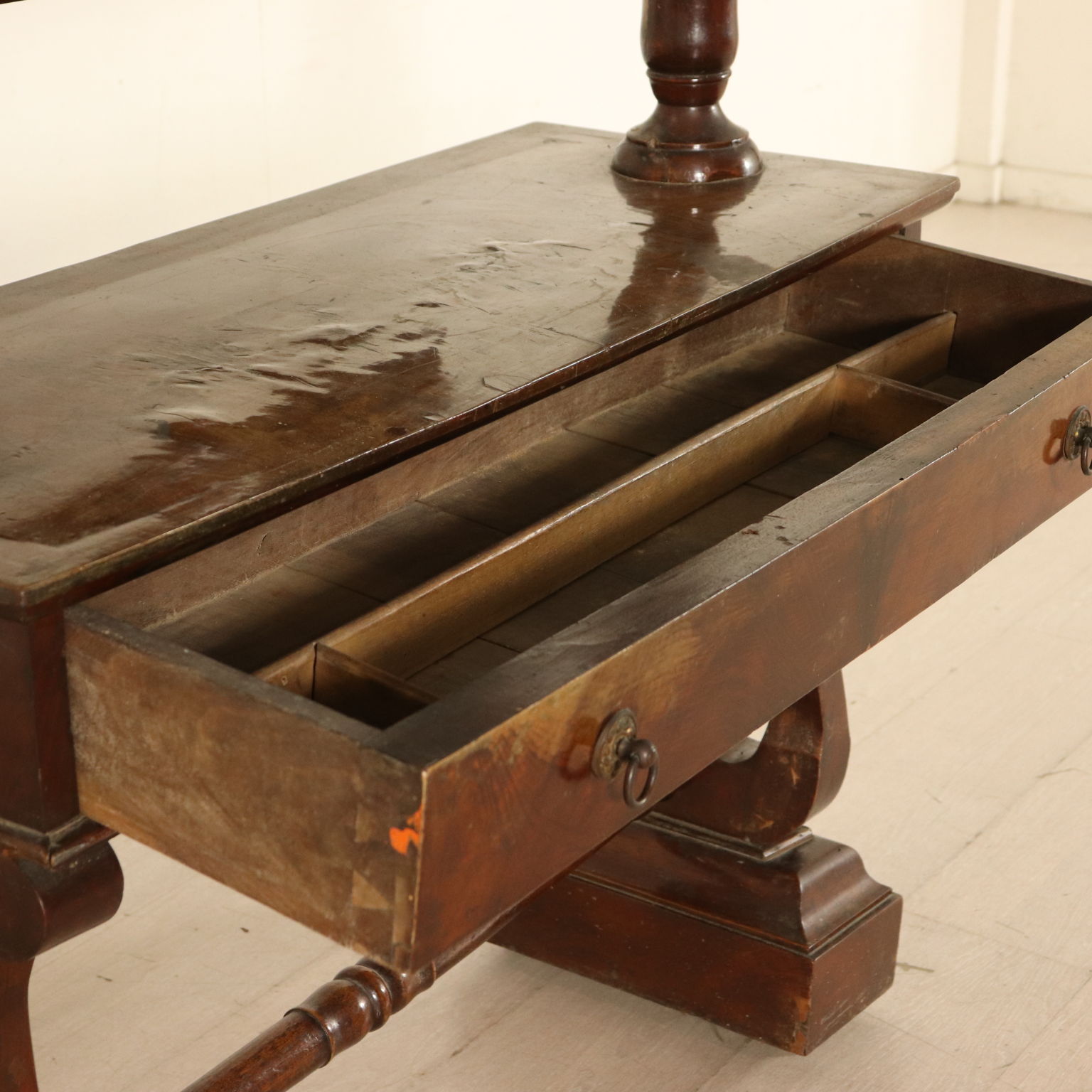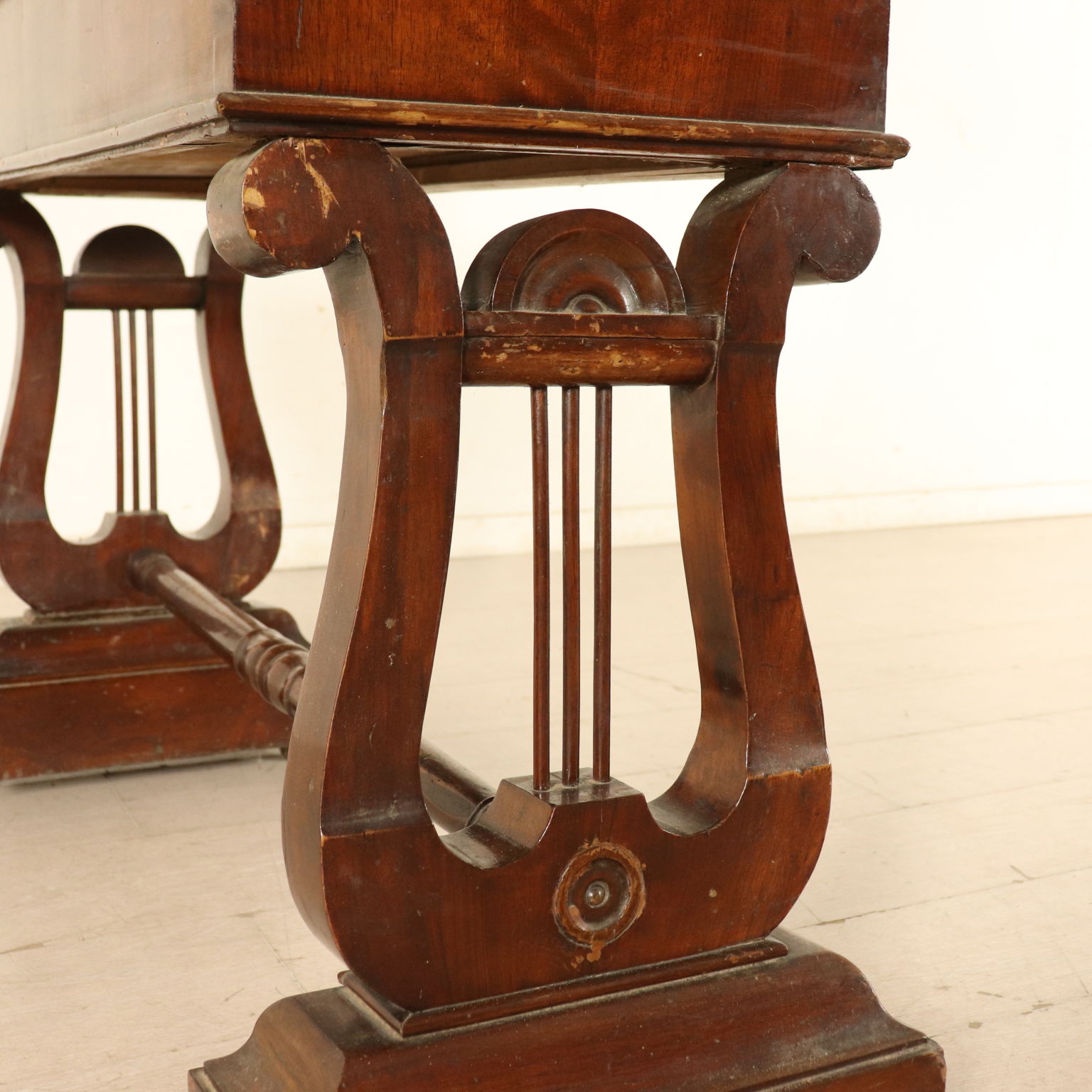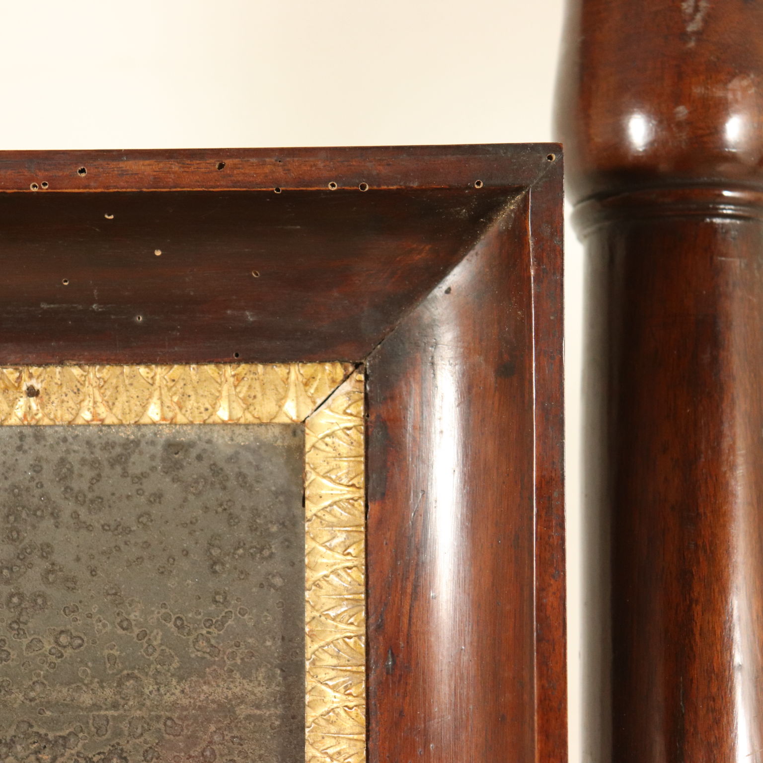 Elegante psyche geraden beinen lira führen von traverse gedreht. Stock mit schublade. Pfosten gedrechselt, mit der bewältigung geschnitzt. Spiegel, hubbett mit goldenen rahmen und geschnitzt.