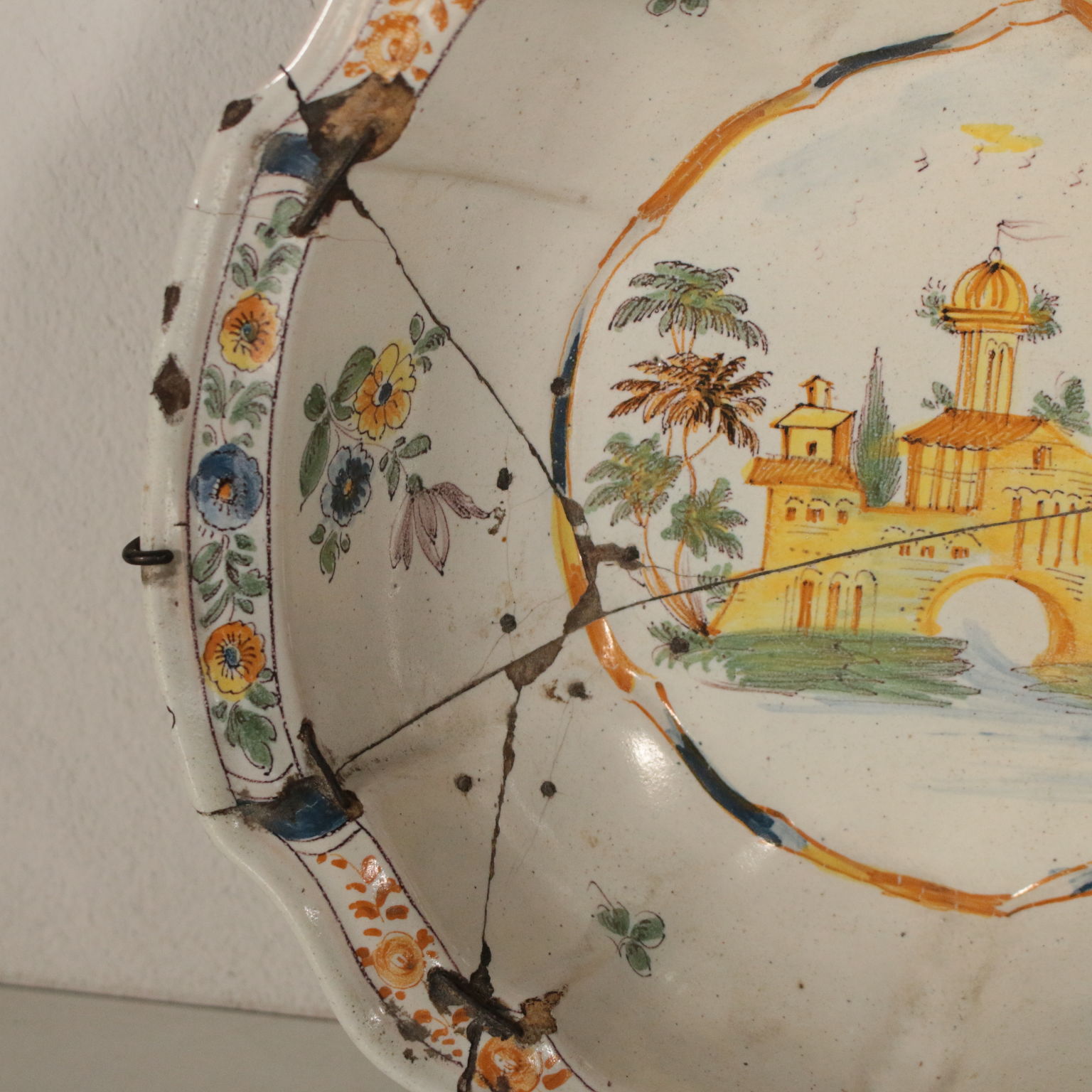 Rasiertablett mit mehrfarbigen Pflanzendekor. Landschaft in der Reserve. Hergestellt in Lombardei, Italien, 18.-19. Jahrhundert.