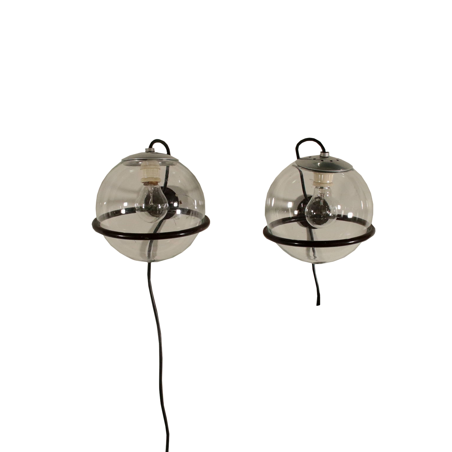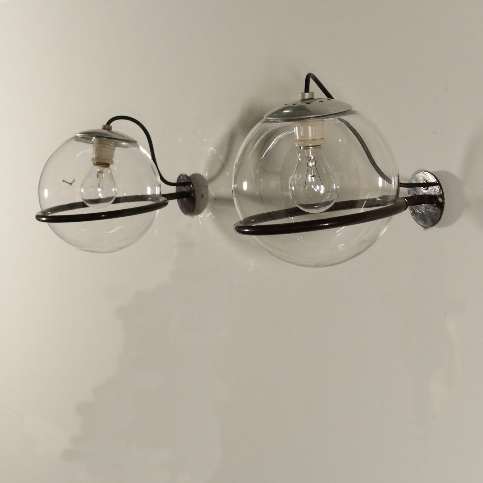 Paar Wandleuchten Gino Sarfatti Metall Glas Italien 60er Jahre.