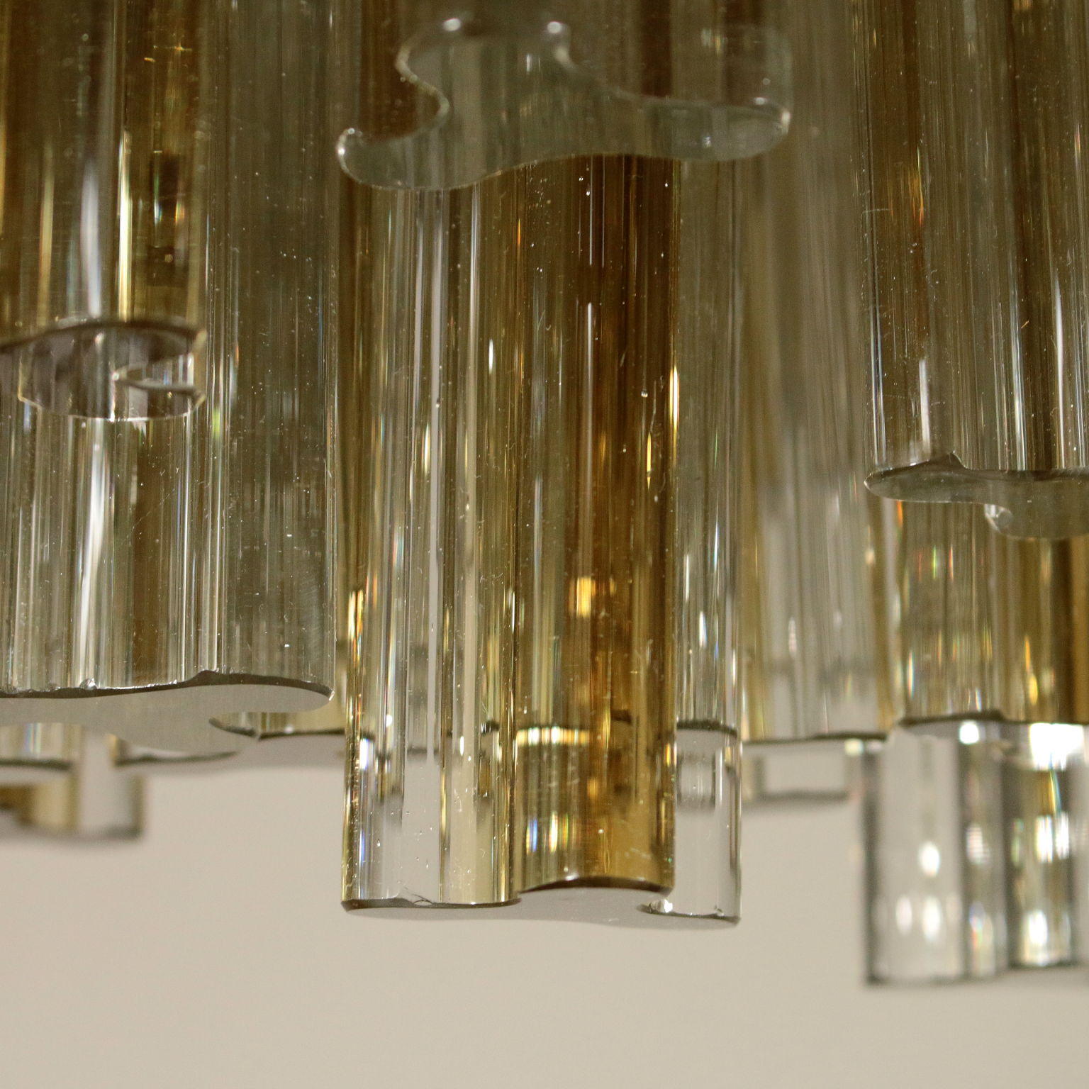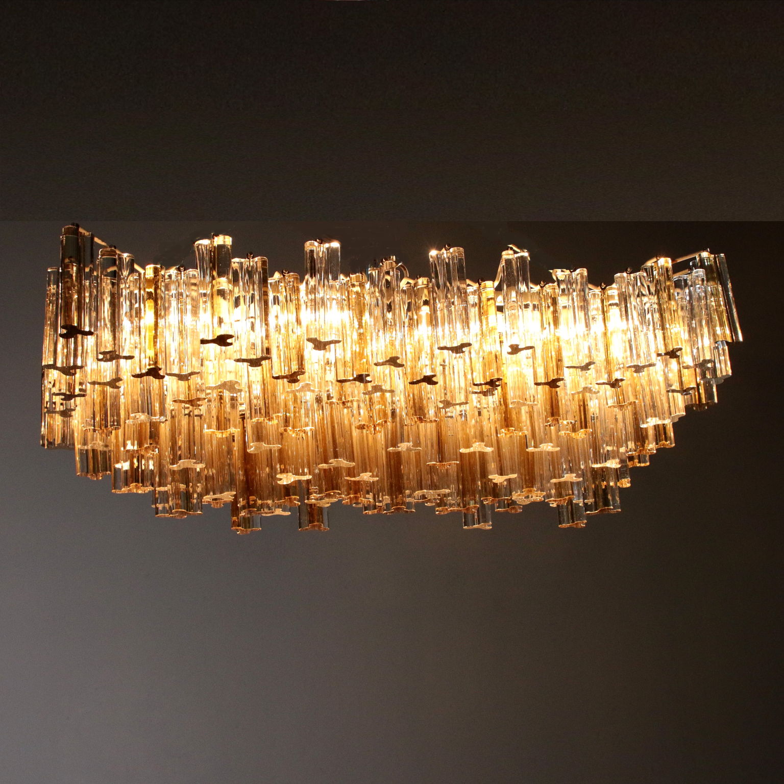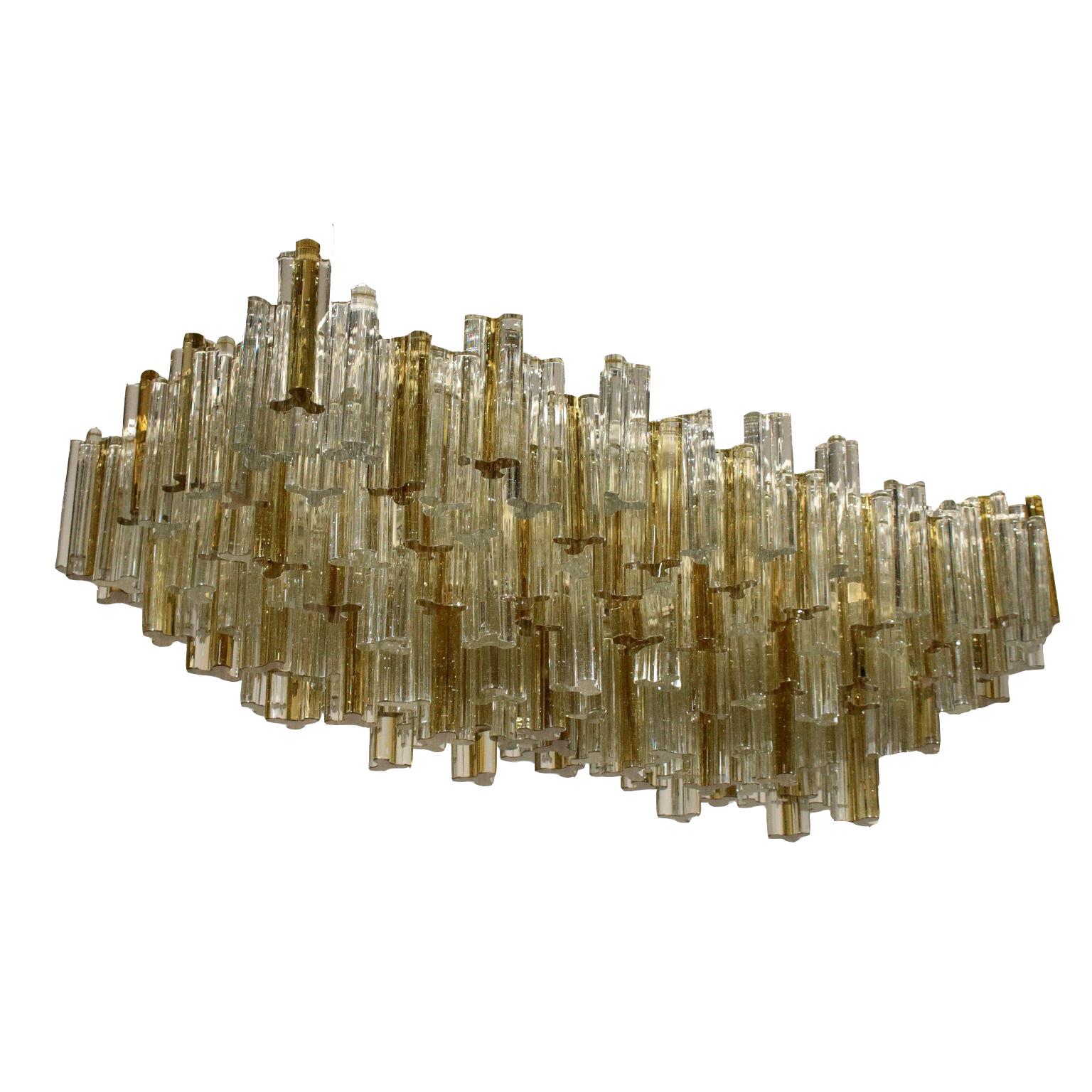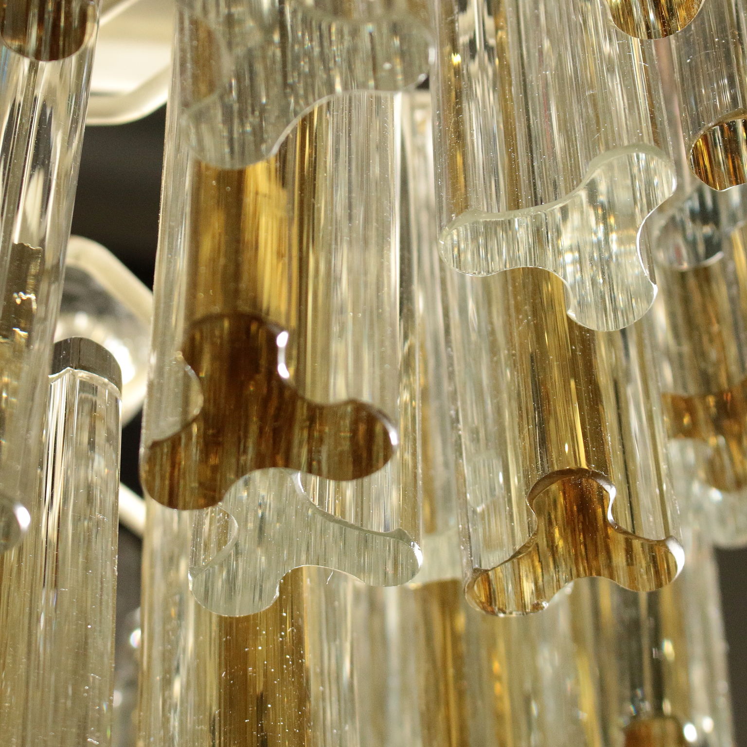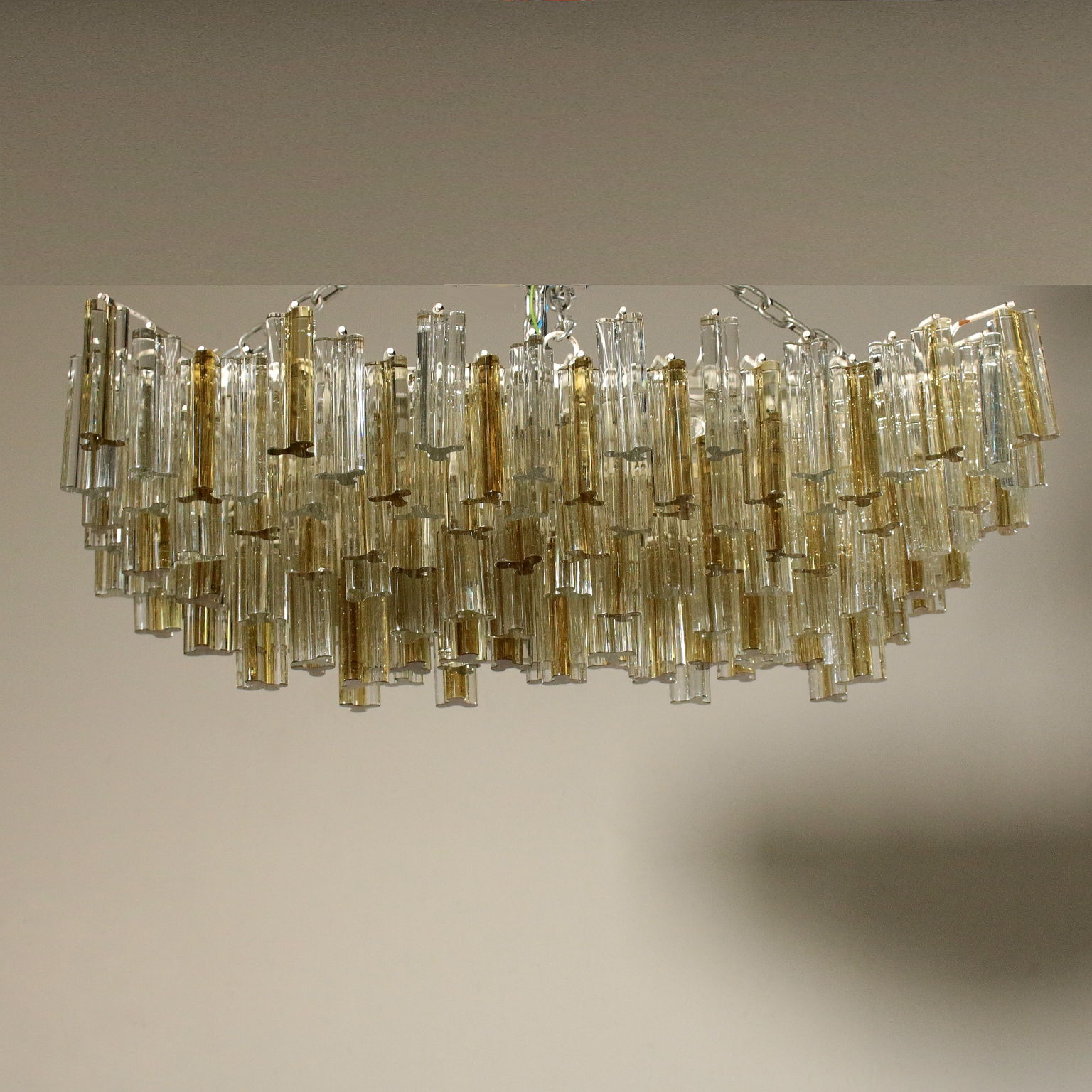 Kronleuchter, Metallstruktur. Behänge aus Kristall. Hergestellt in Italien, 60er-70er Jahre.