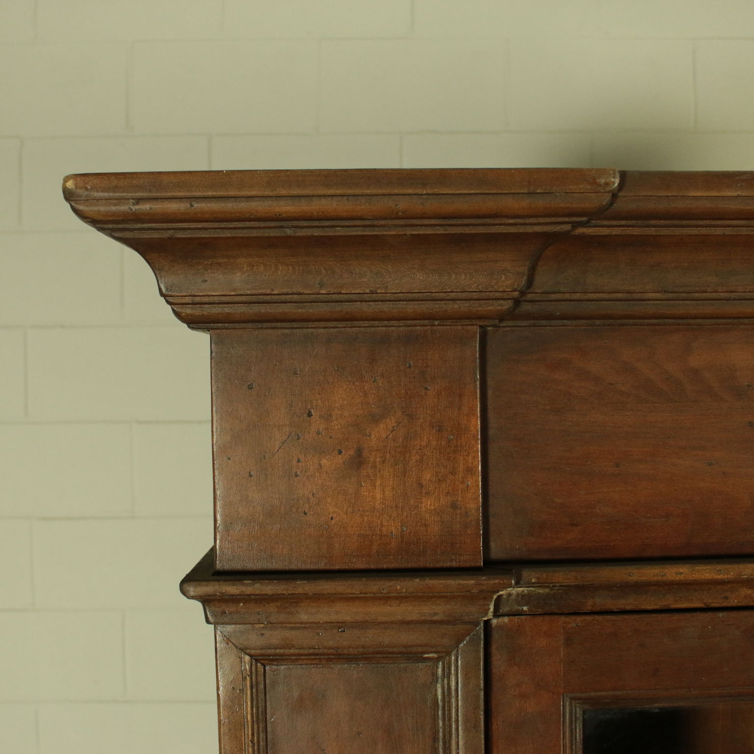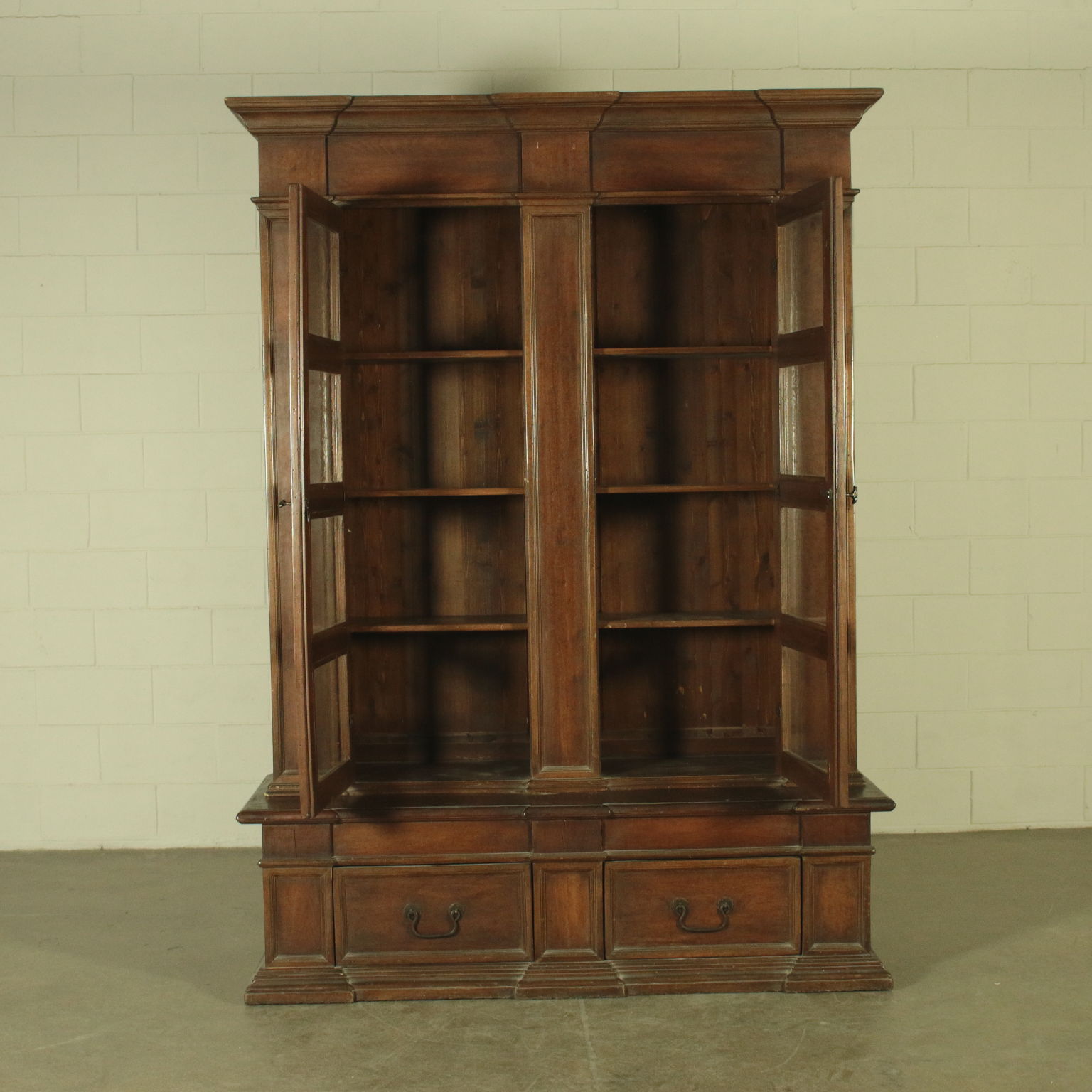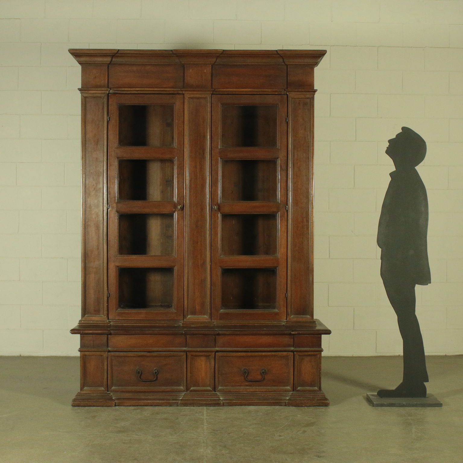 Bibliothek zwei körper, verfügt über zwei große schubladen und zwei türen mit glas im antiken stil.