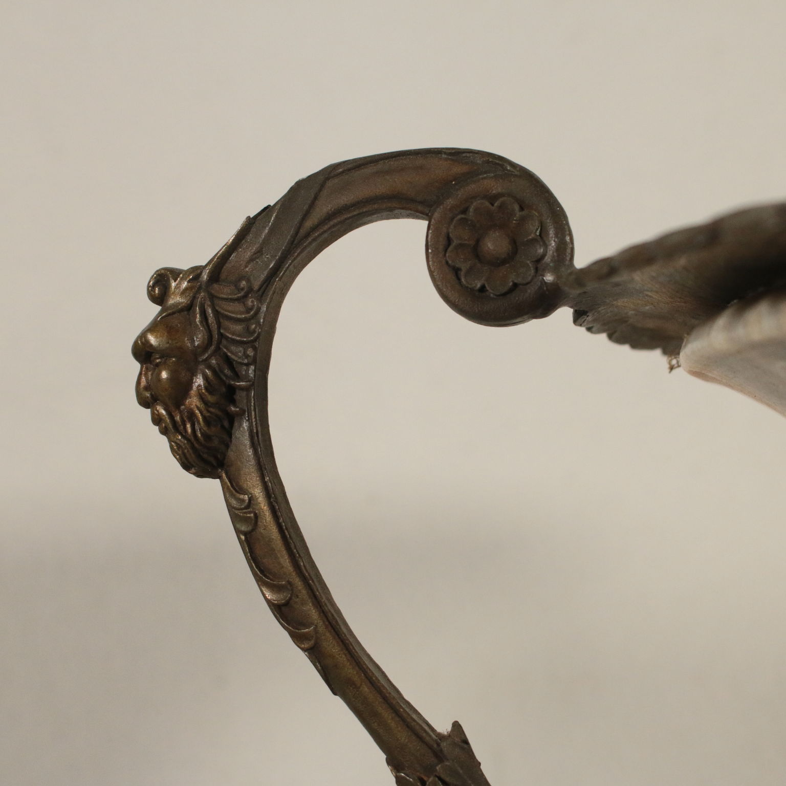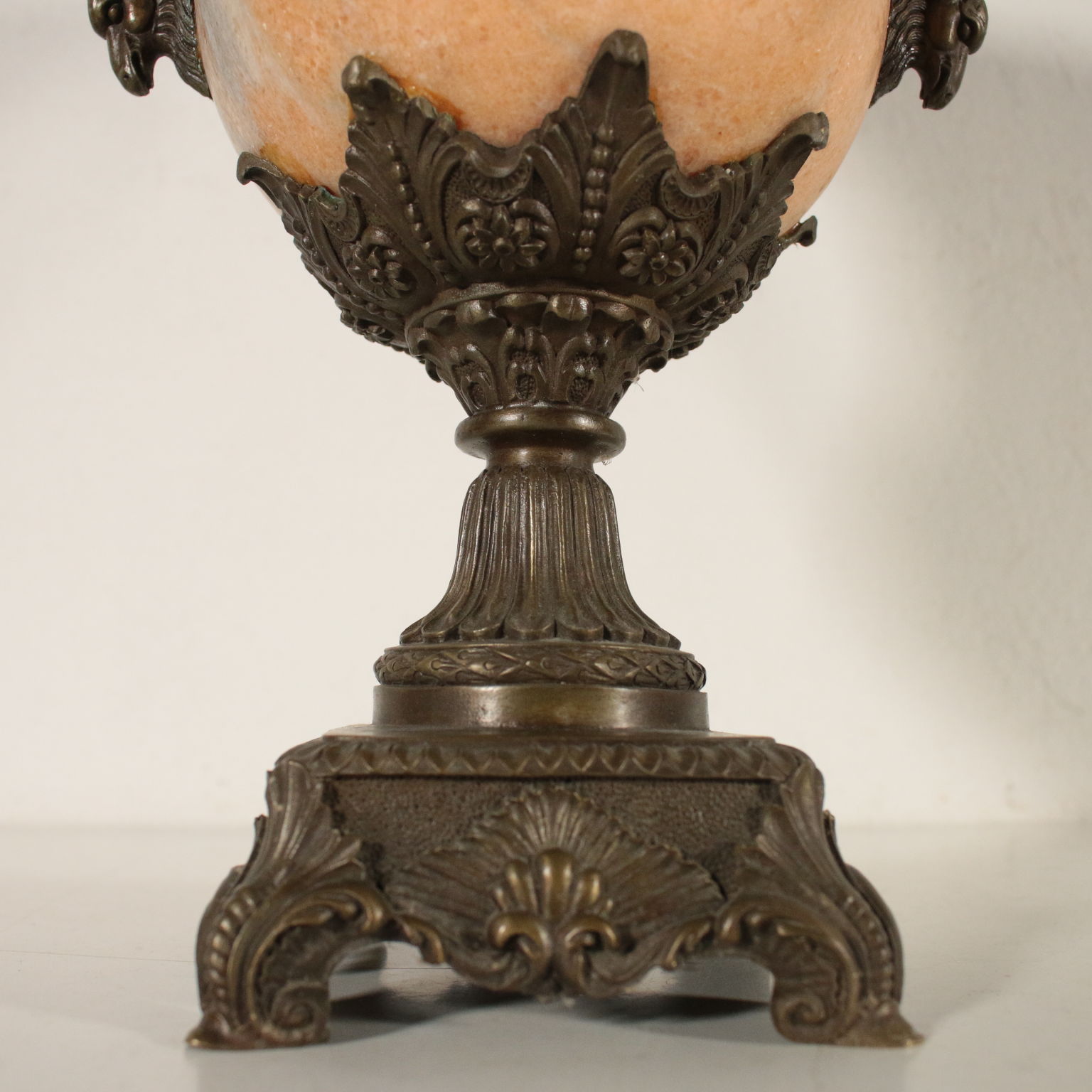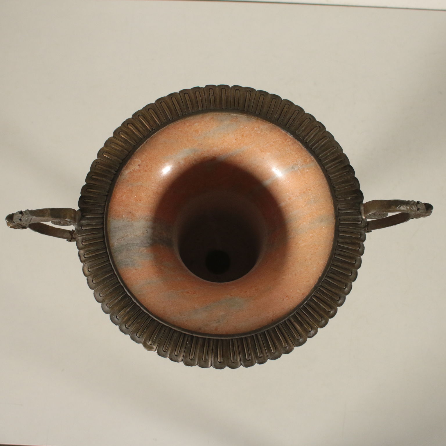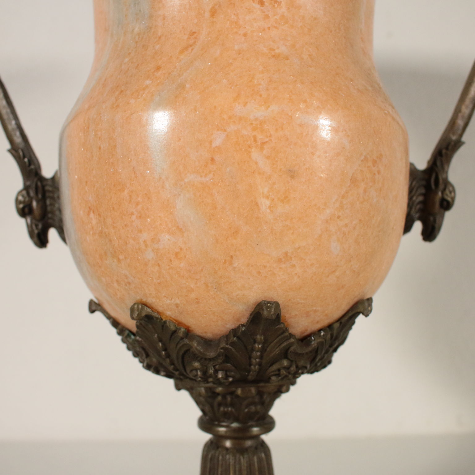 Paar Marmor- und Bronzevasen. Griff mit Voluten und Gesichter mythologischer Figuren.
