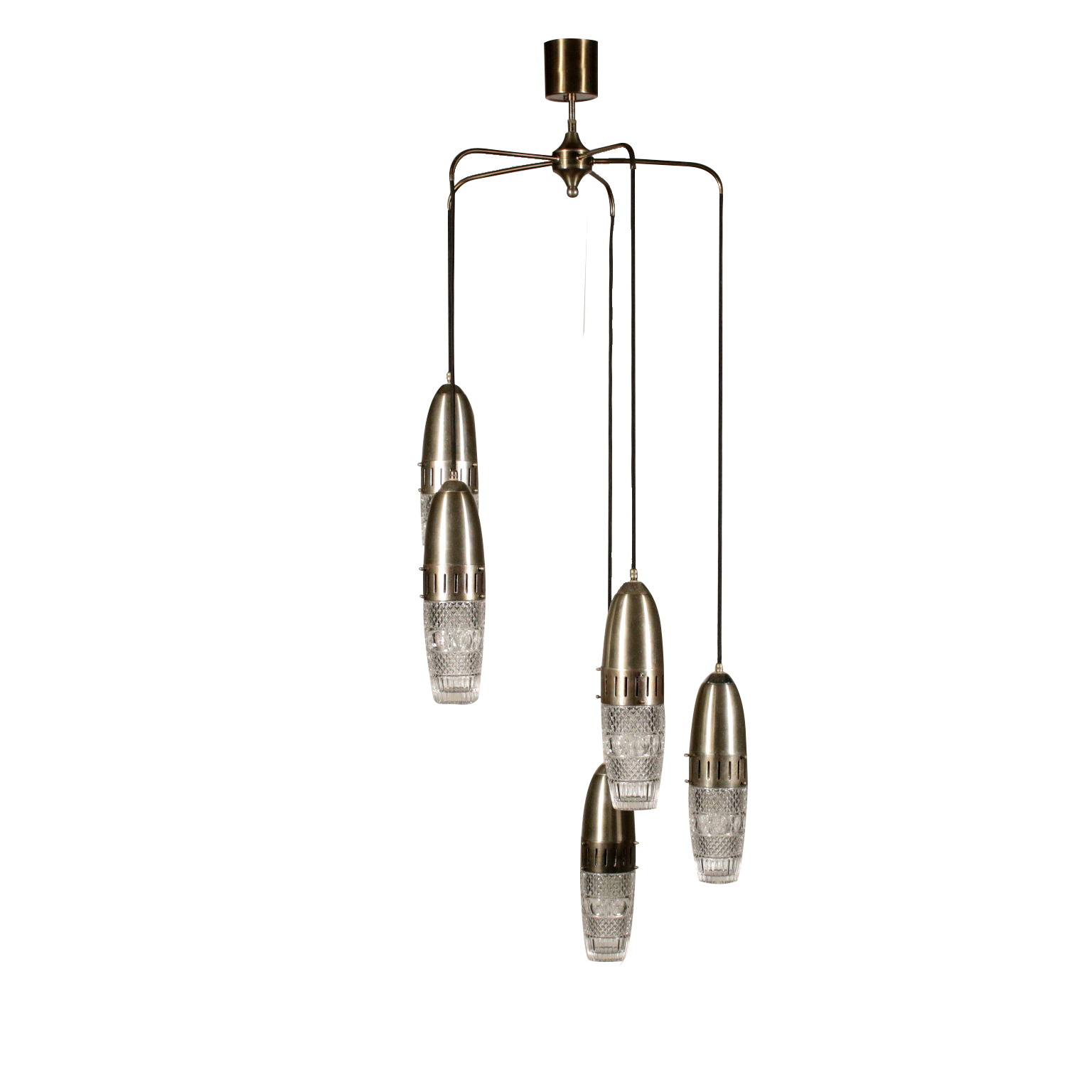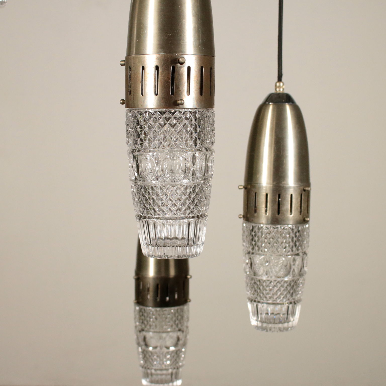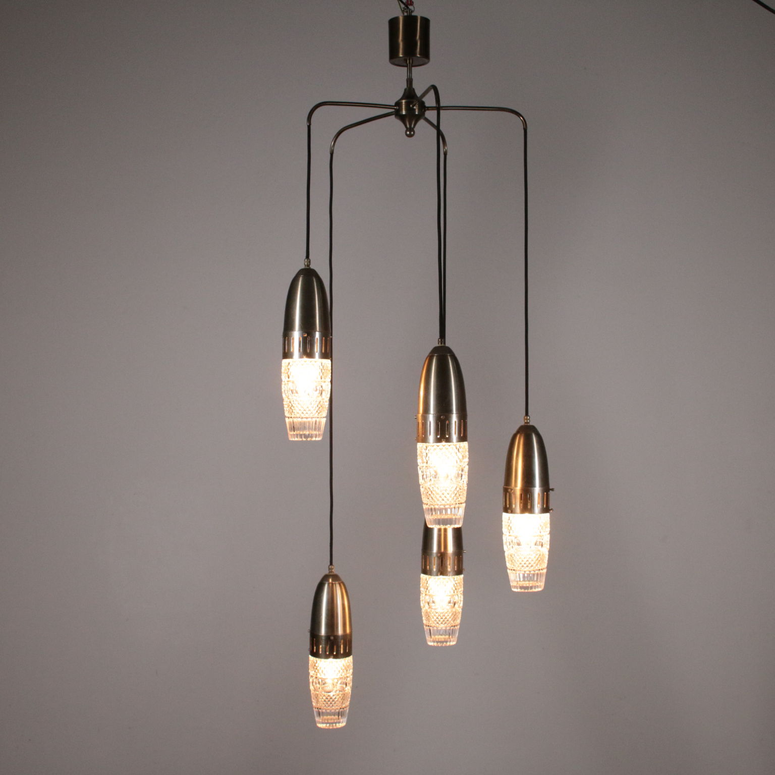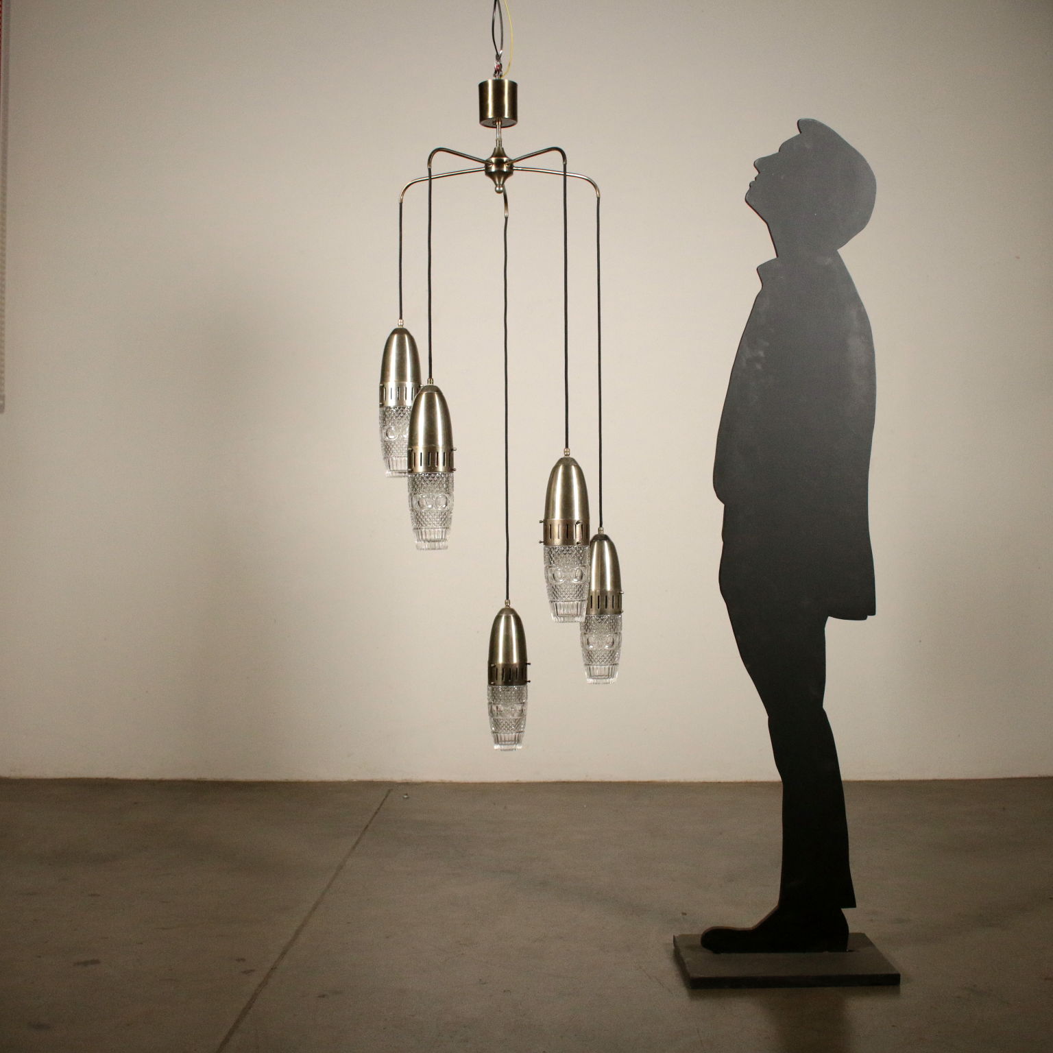 Deckenleuchte mit fünf Lichter. Metall und verchromtes Aluminium, Glas. Hergestellt in Italien, 60er-70er Jahre.
