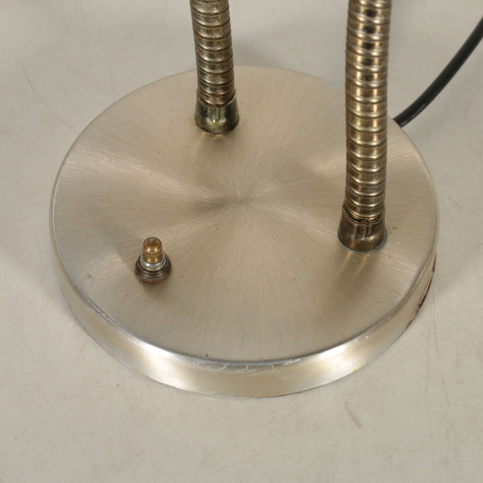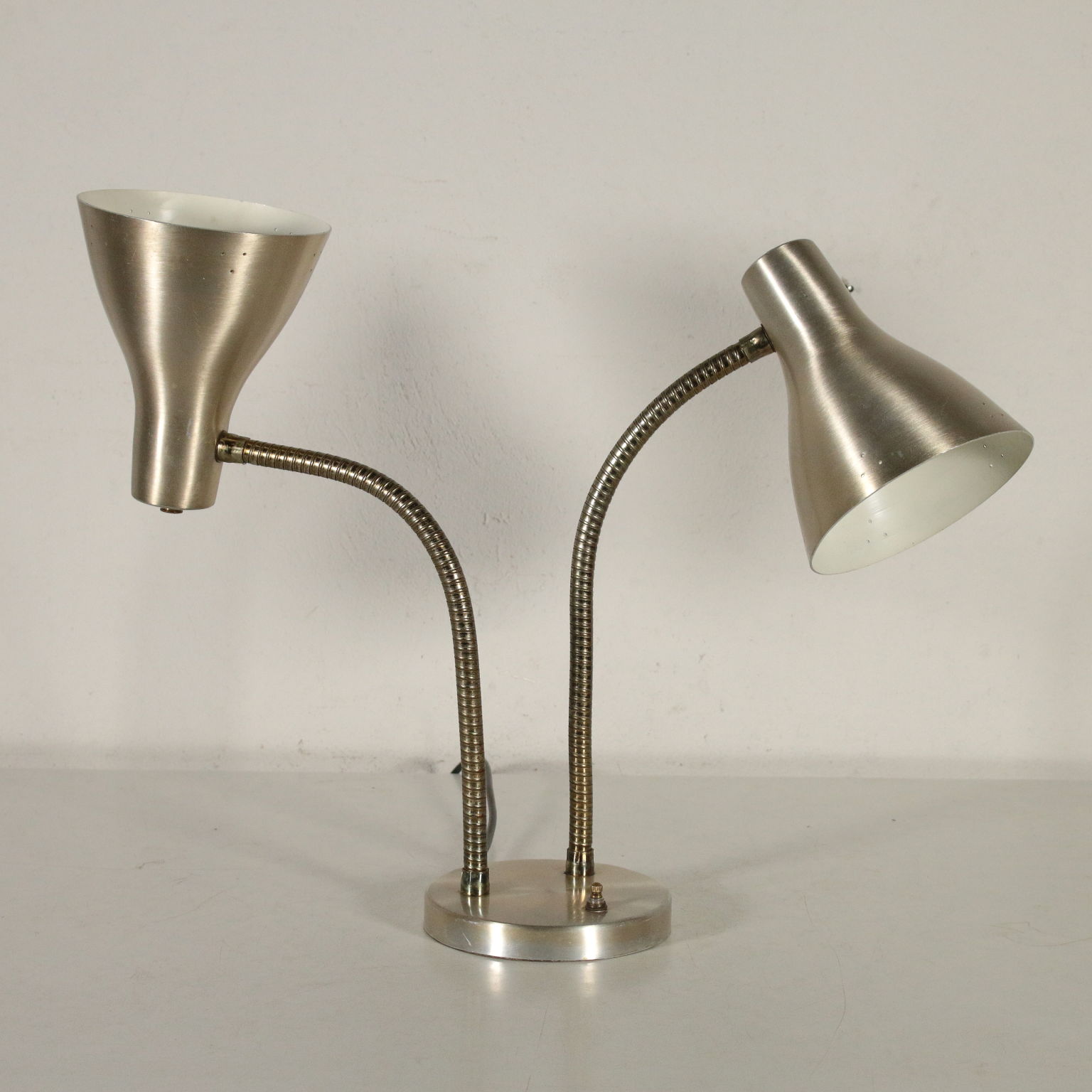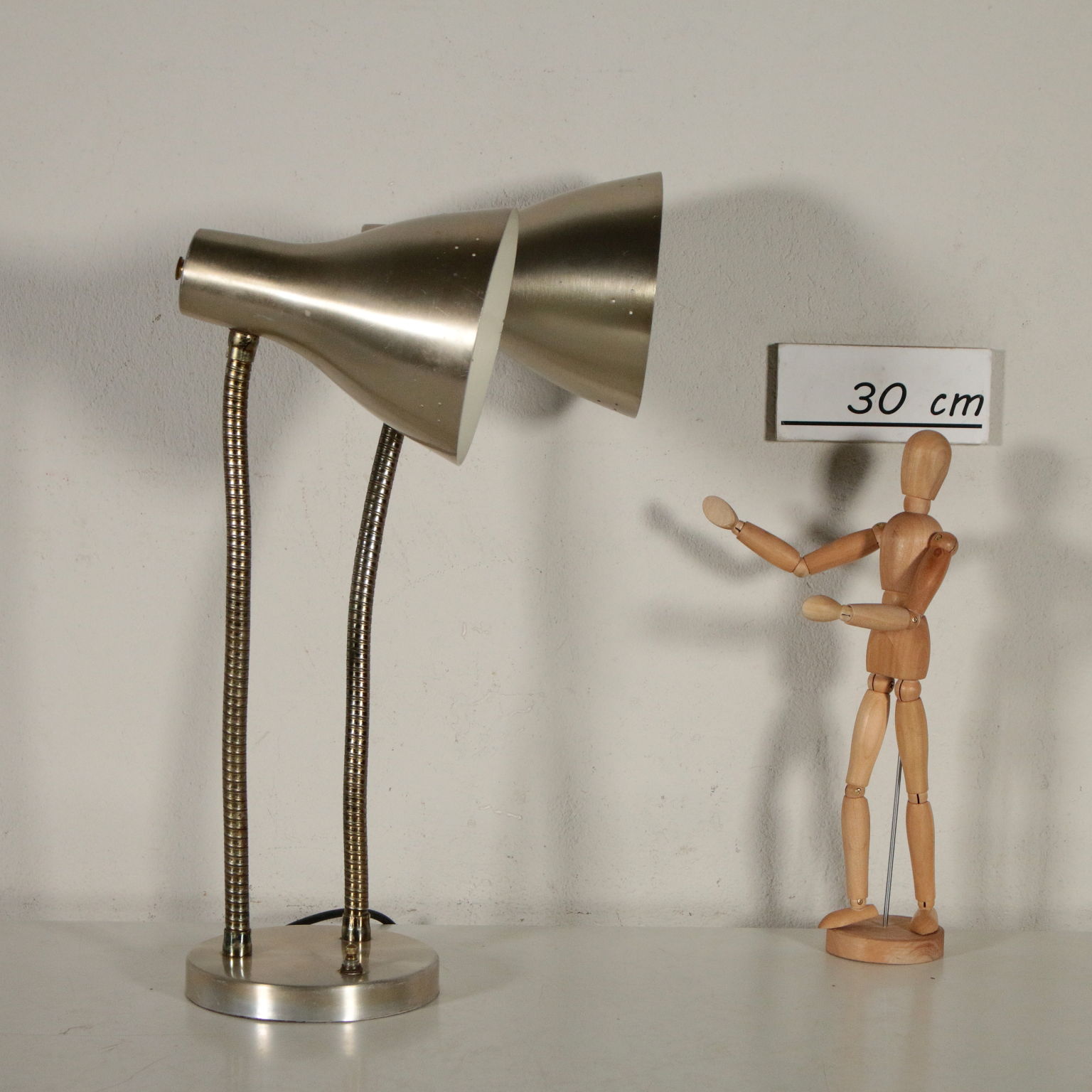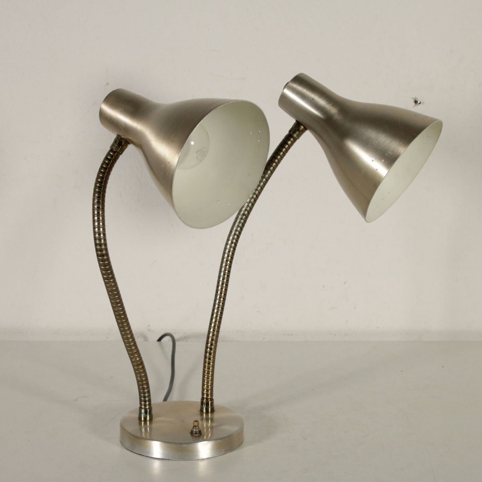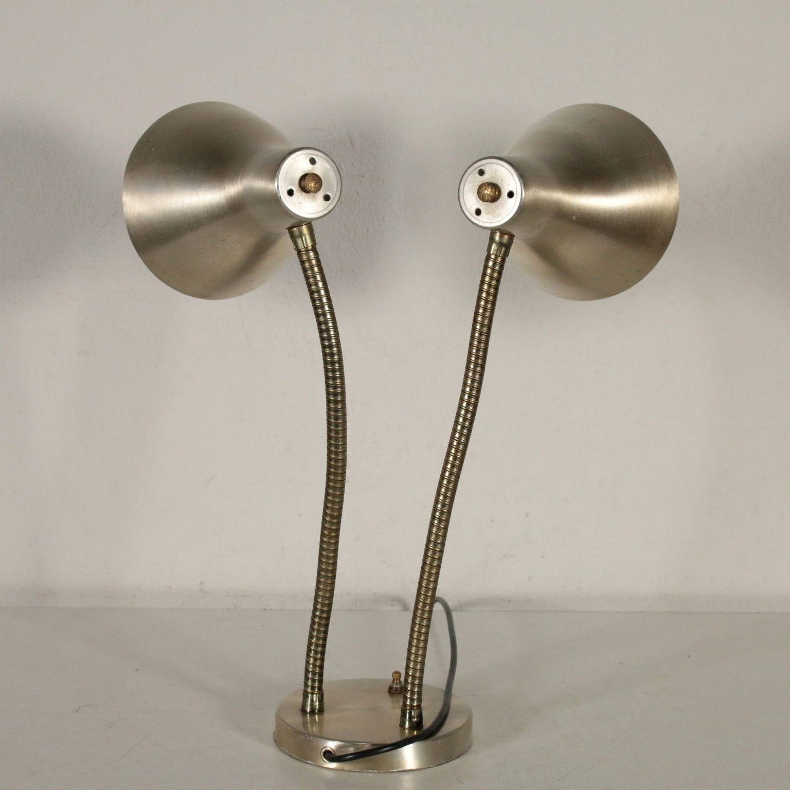 Tischlampe mit zwei flexiblen Lichter, verchromtes Aluminium. Hergestellt in Italien, 70er Jahre.