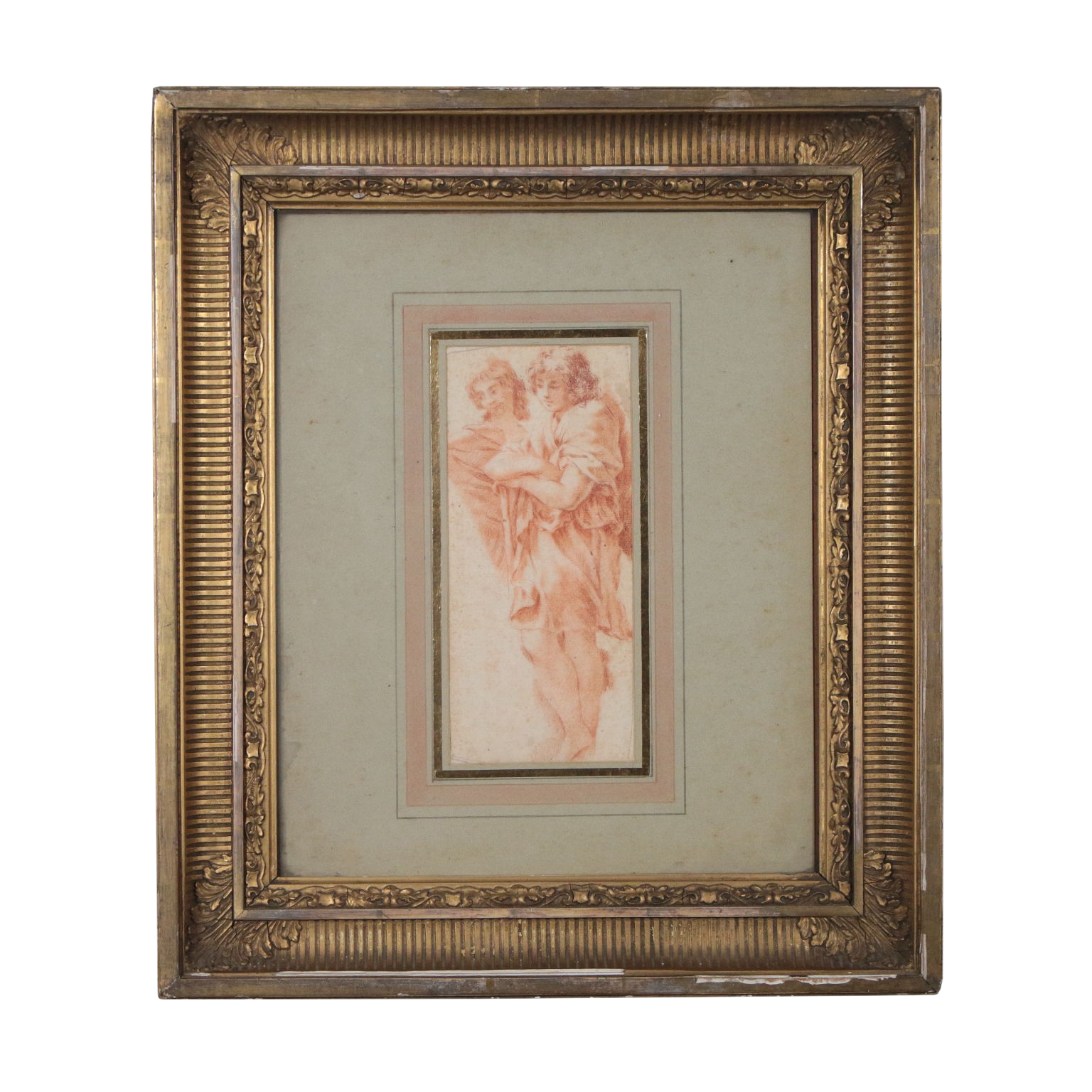 Sanguine auf Papier. Im unteren Teil des hinteren Rahmens befindet sich ein Etikett aus den späten 1800er und frühen 1900er Jahren mit Namensnennung. Präsentiert in einem gleichaltrigen vergoldeten Rahmen. 17. Jahrhundert.