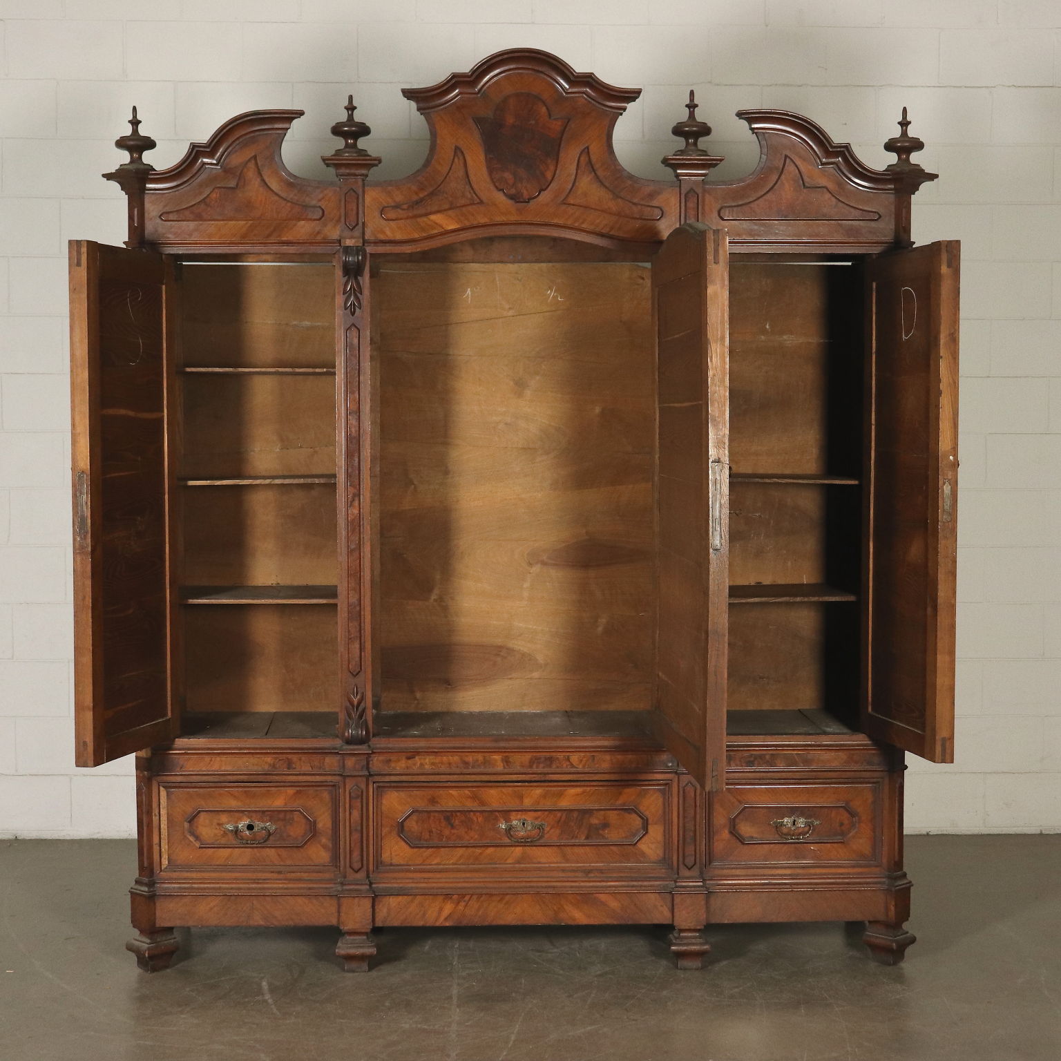 Dreitüriger Kleiderschrank Nussbaum Italien letzes Quartal '800.