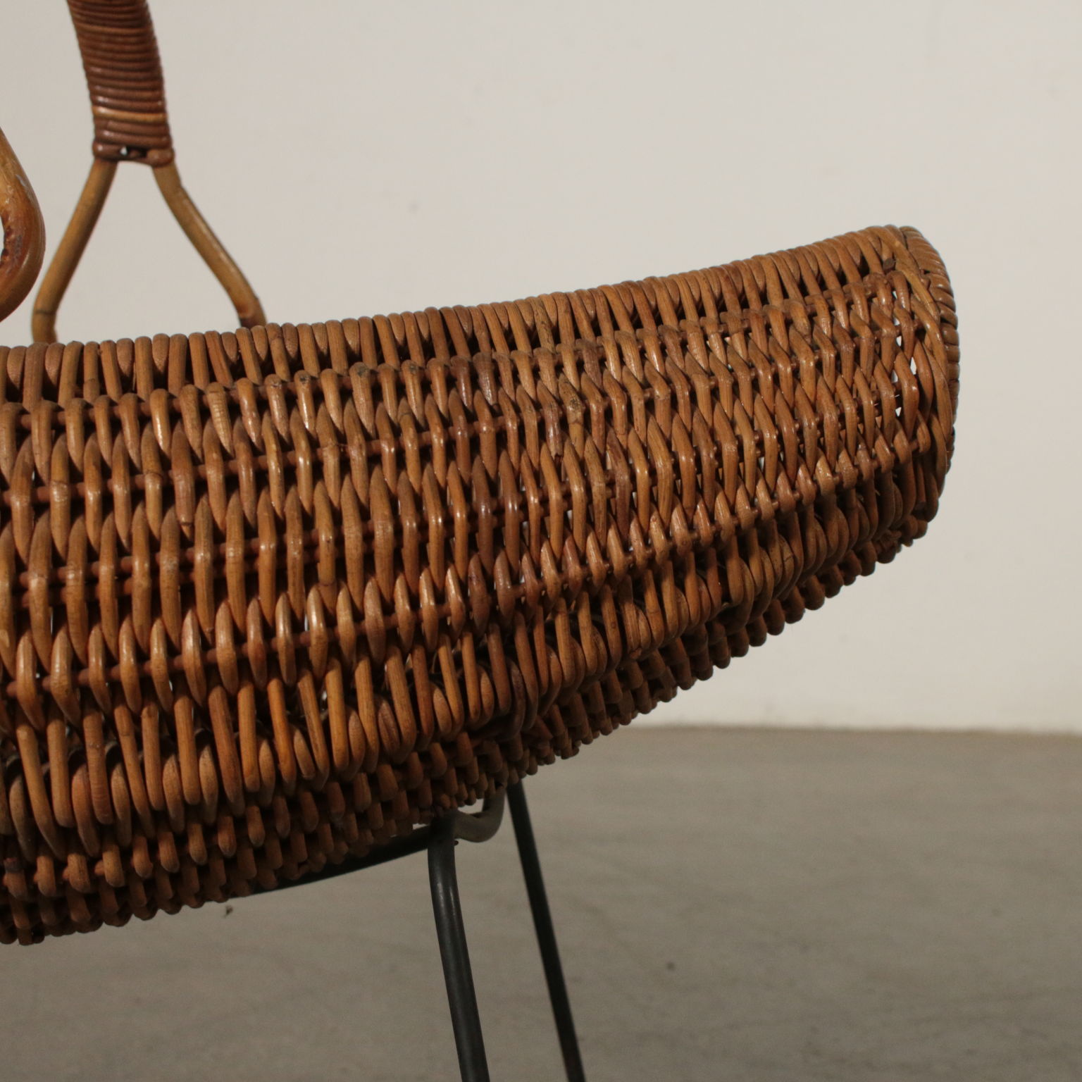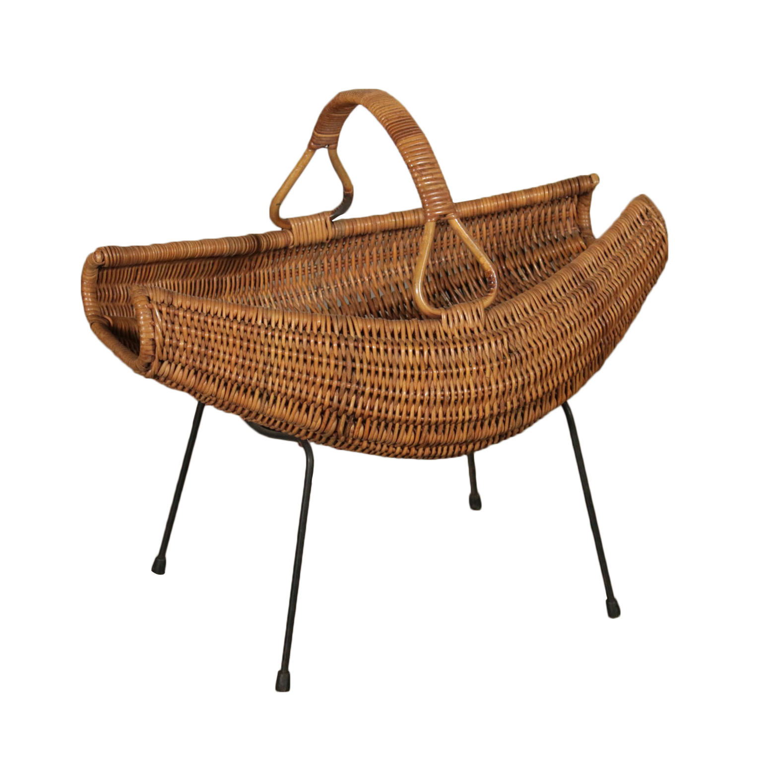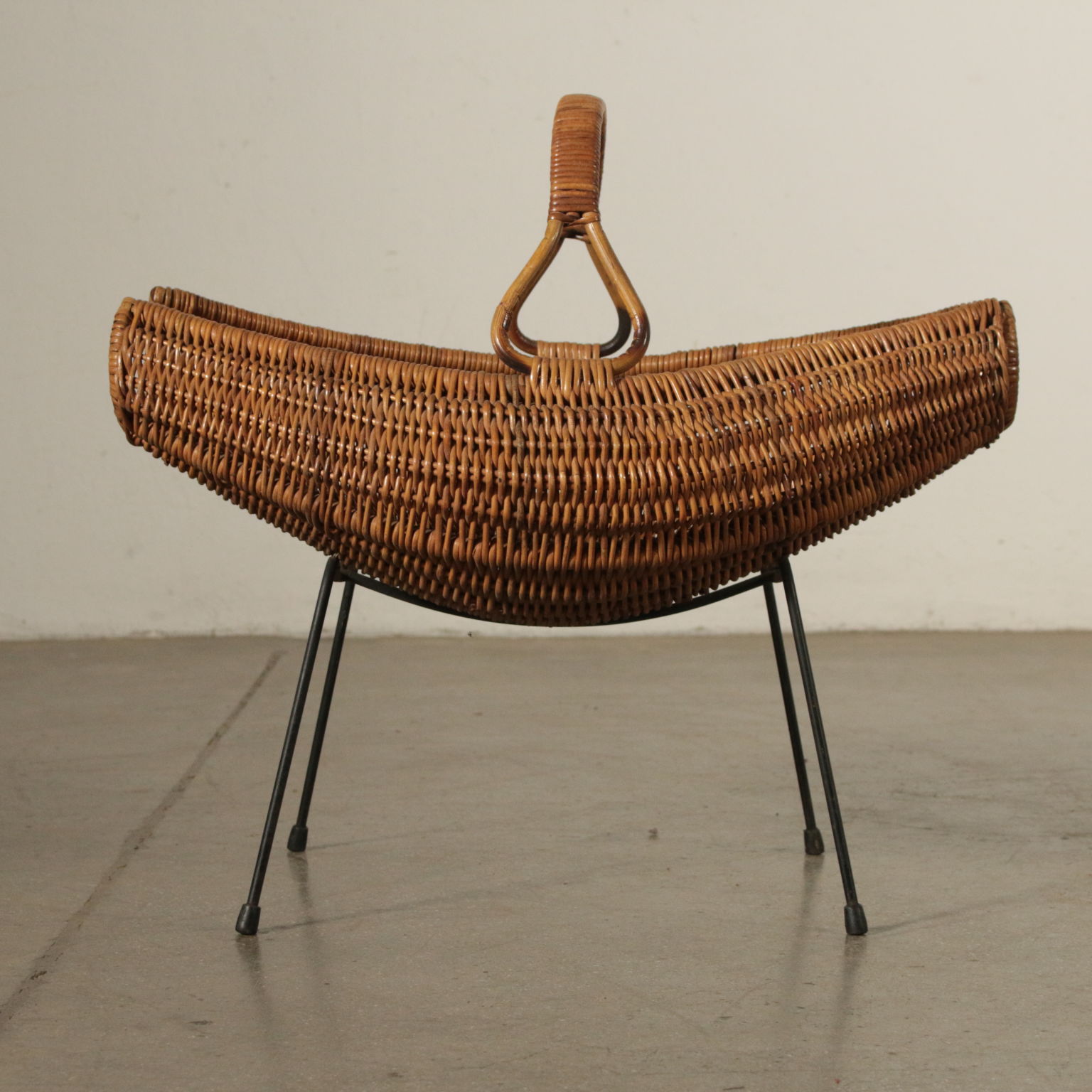 Zeitschriftenständer, Rattan und Metall. Hergstellt in Italien, 60er Jahre.